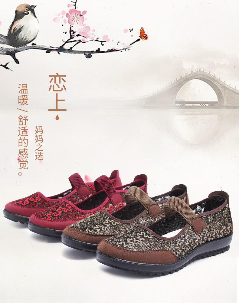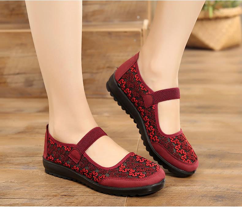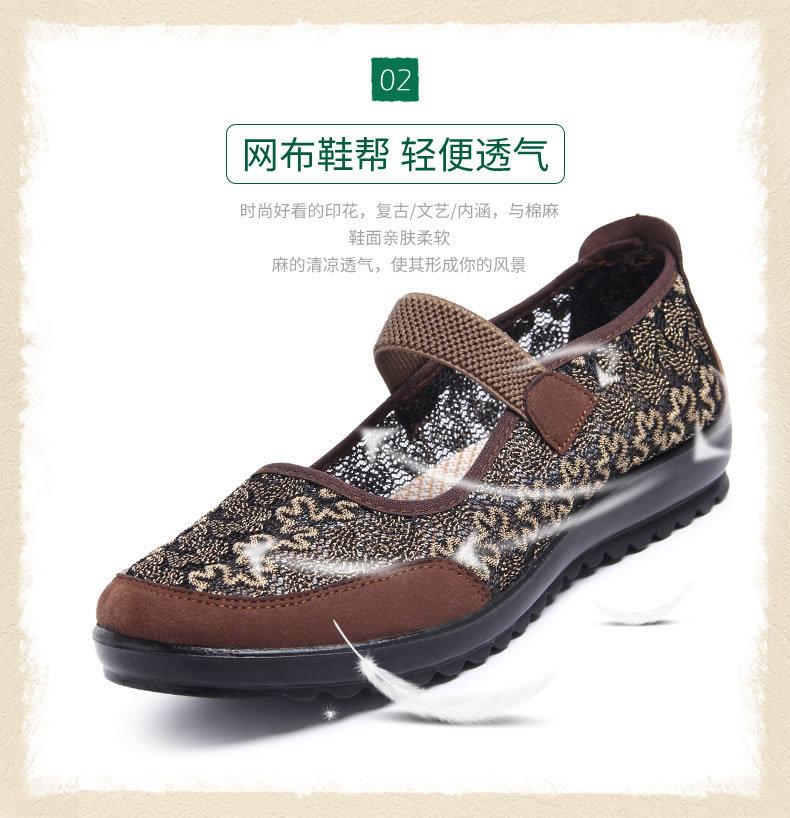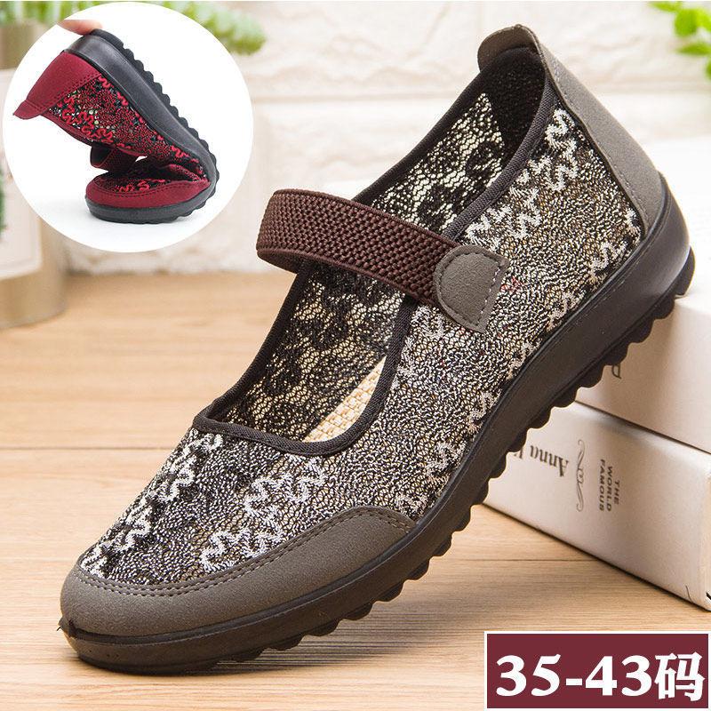 Zapatos de tela de Pekín antiguos para mujer, Zapatos planos de verano para damas, Zapatos de mamá, Zapatos de malla transpirable antideslizante de verano de suela blanda para personas mayores