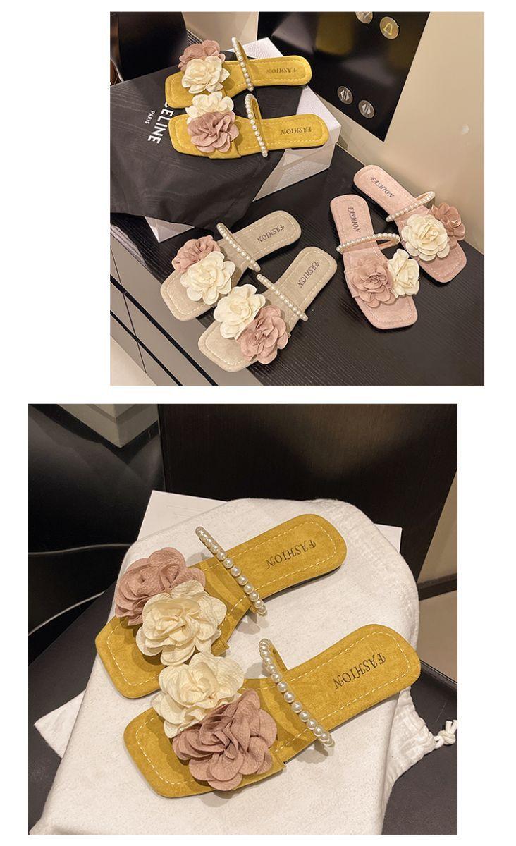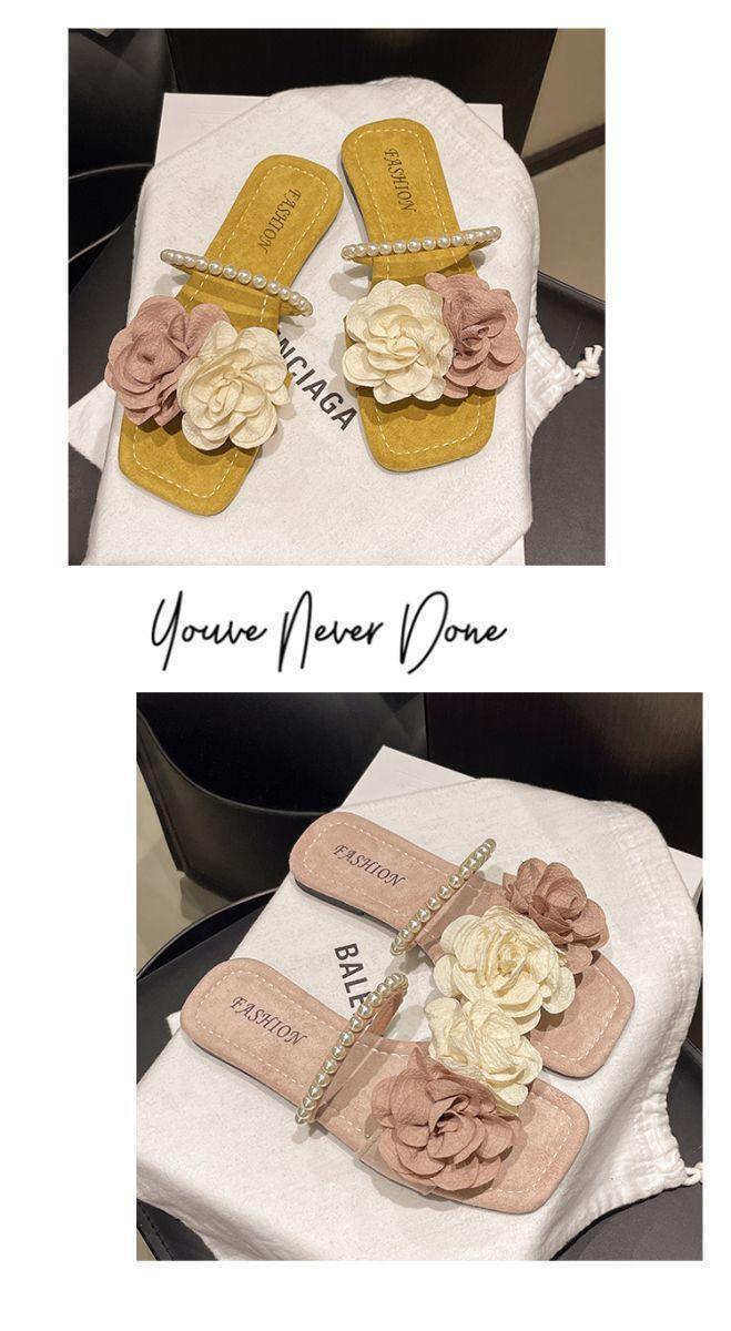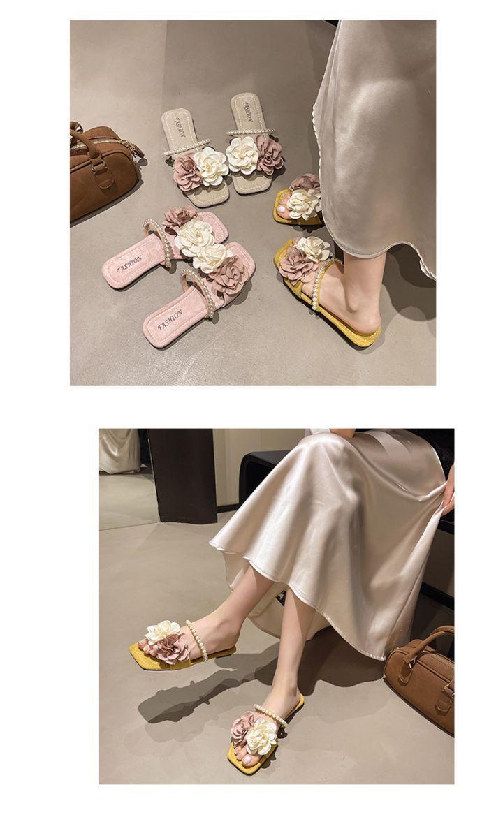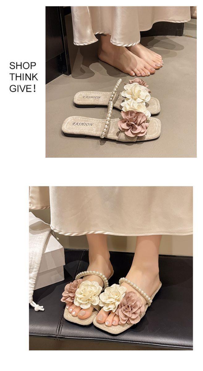 Pantuflas de Flores Estilo Hada para Mujer Verano para Exterior 2025 Nueva Moda Flats Versátiles Antideslizantes Playa Sandalias Francesas