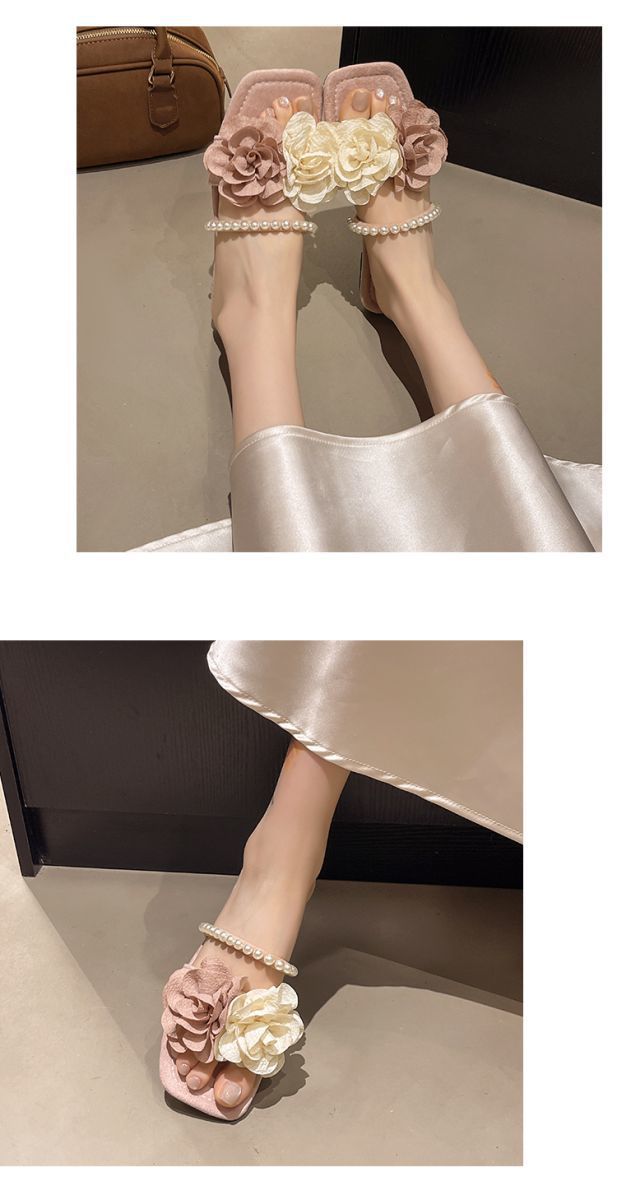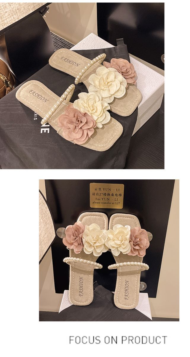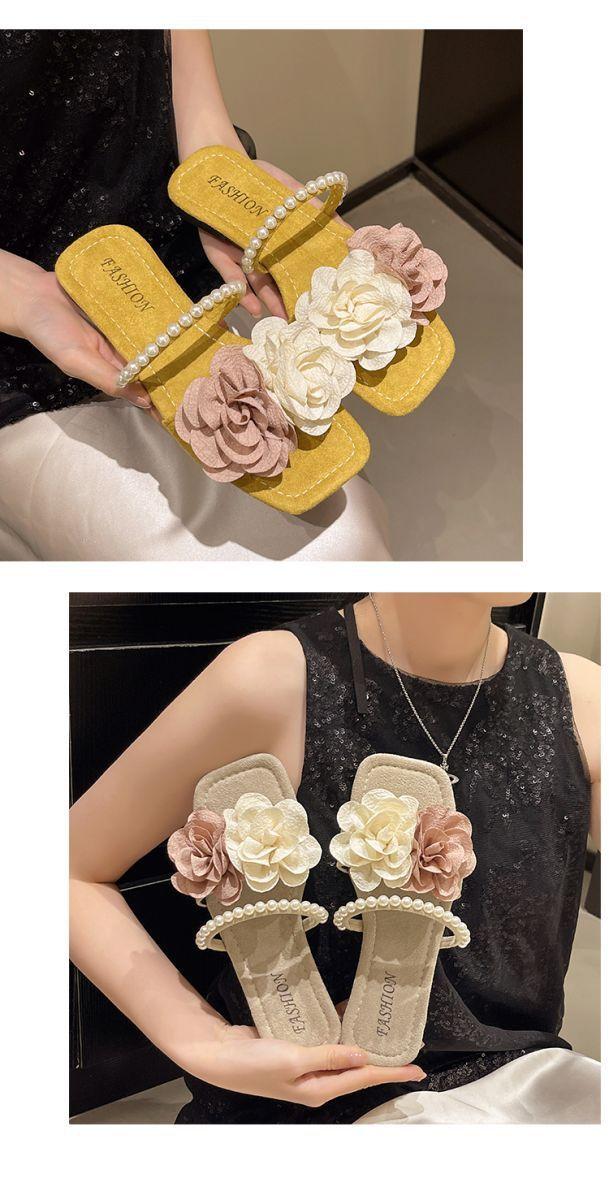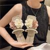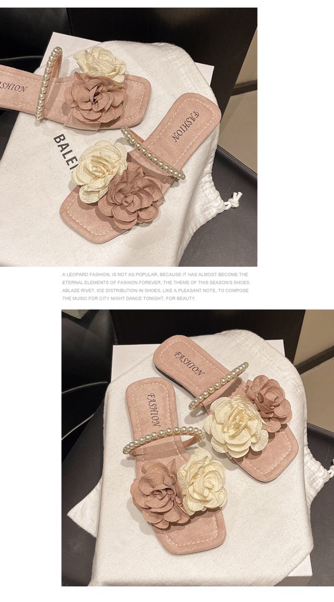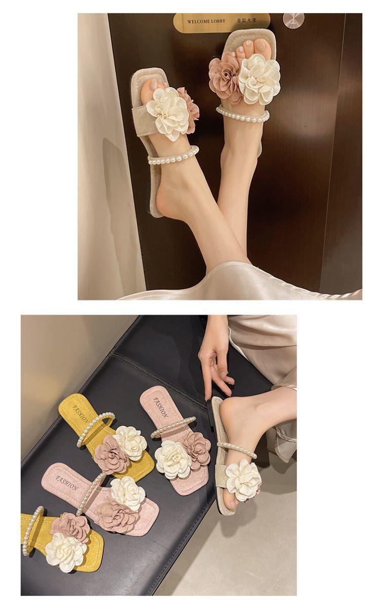 Pantuflas de Flores Estilo Hada para Mujer Verano para Exterior 2025 Nueva Moda Flats Versátiles Antideslizantes Playa Sandalias Francesas