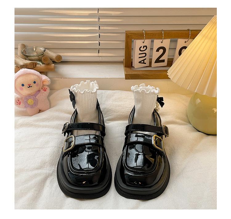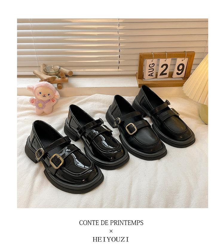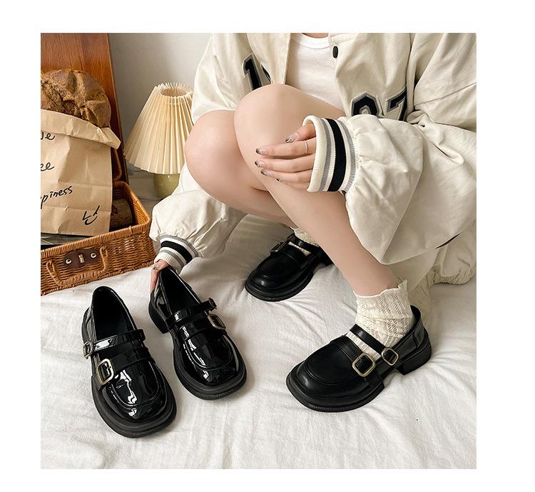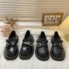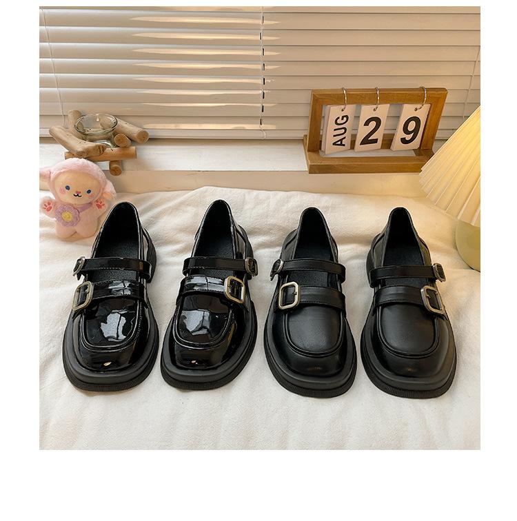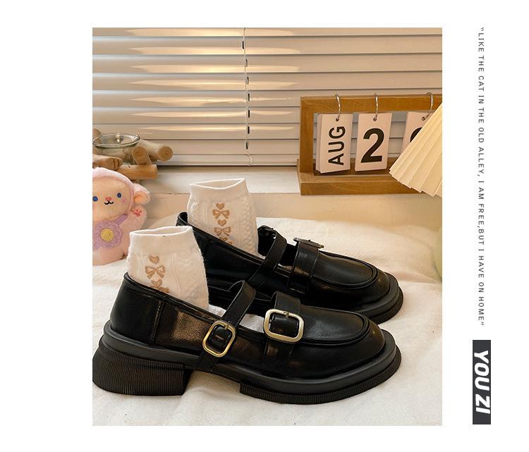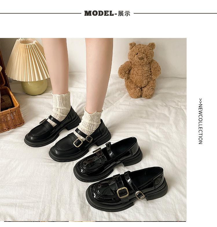 Zapatos de Mujer Mary Jane de Punta Redonda y Suela Gruesa Primavera 2025 Nuevo Estilo Británico Retro Mocasines Material Pu Flats de Verano