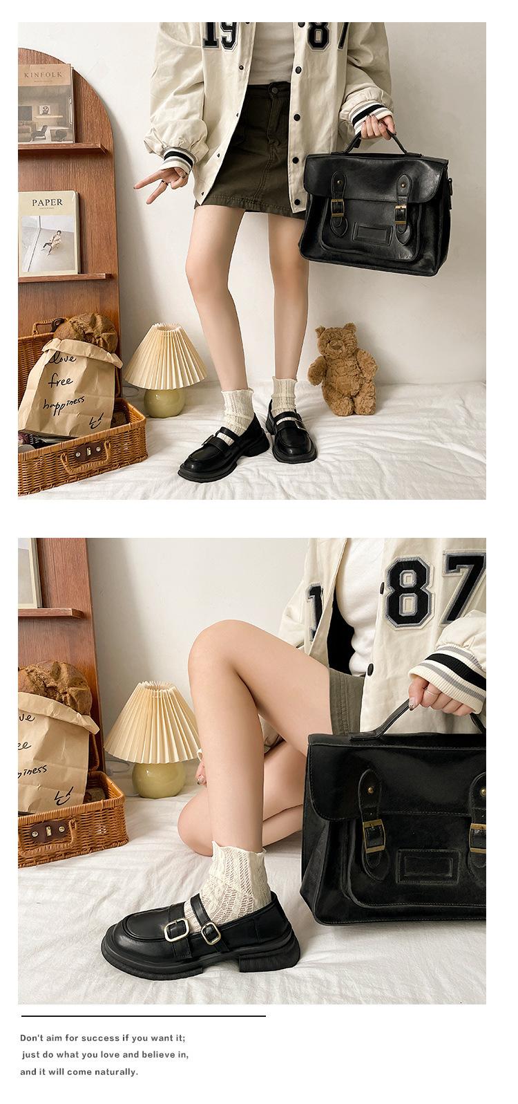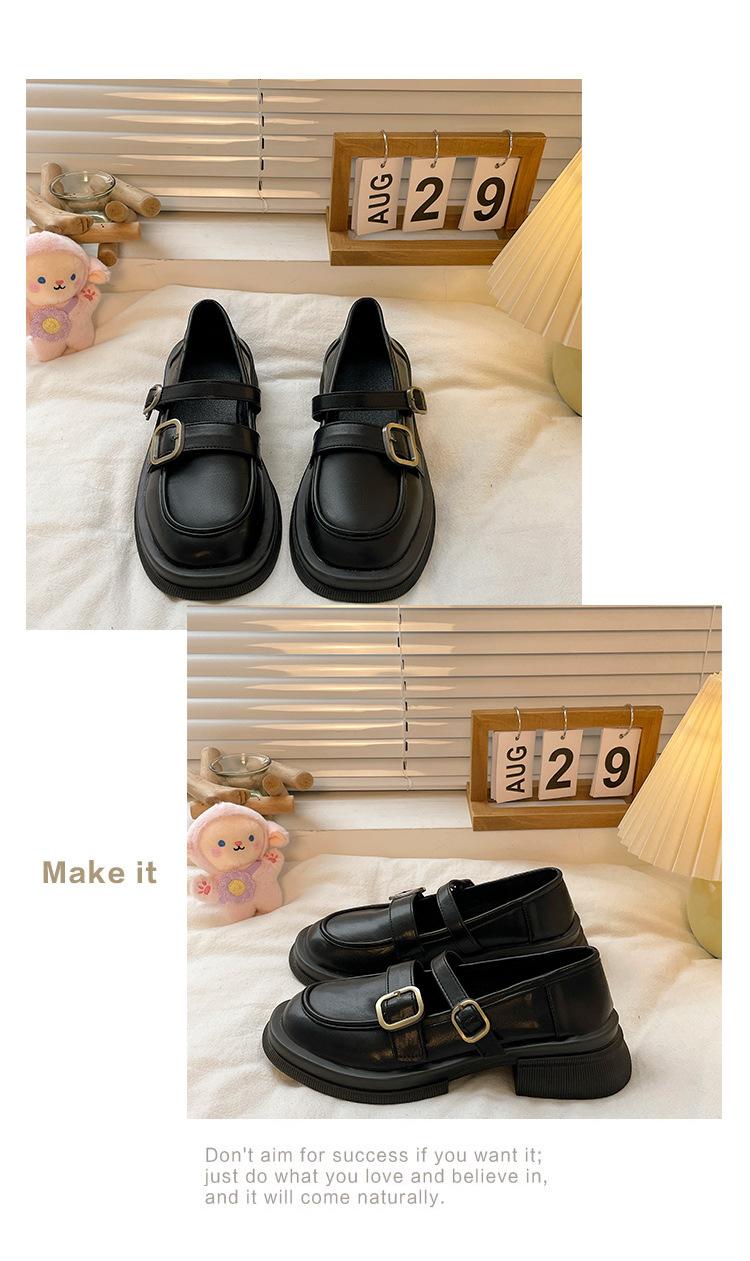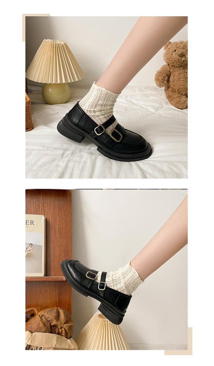 Zapatos de Mujer Mary Jane de Punta Redonda y Suela Gruesa Primavera 2025 Nuevo Estilo Británico Retro Mocasines Material Pu Flats de Verano