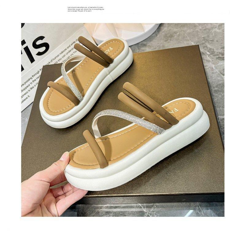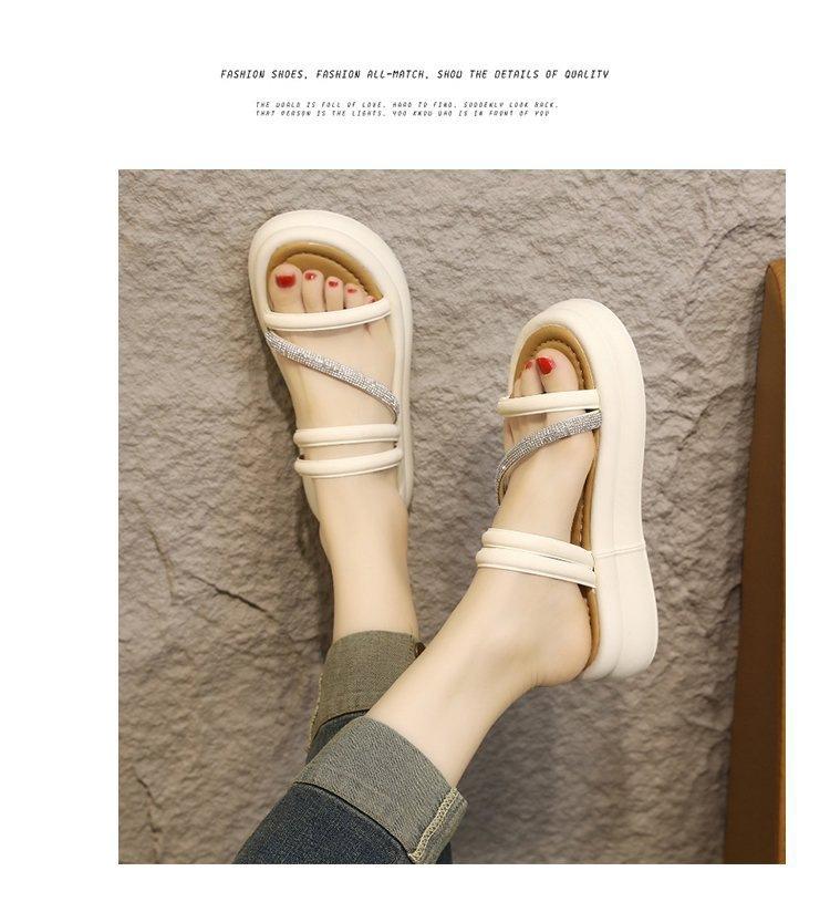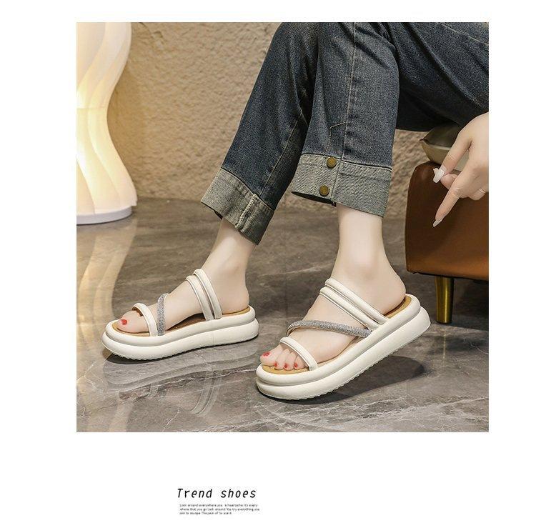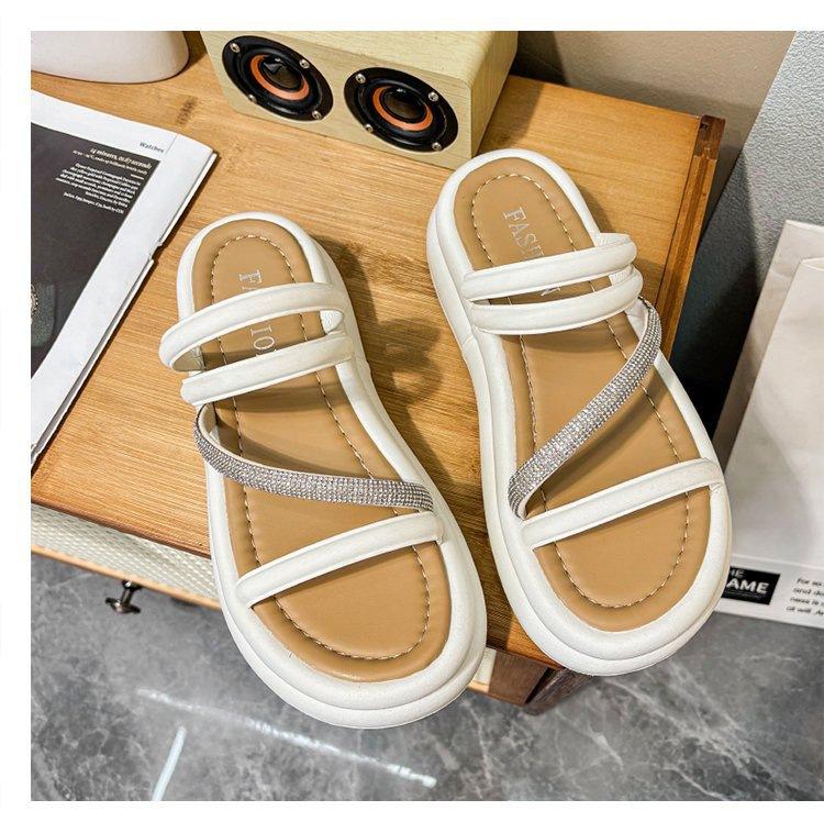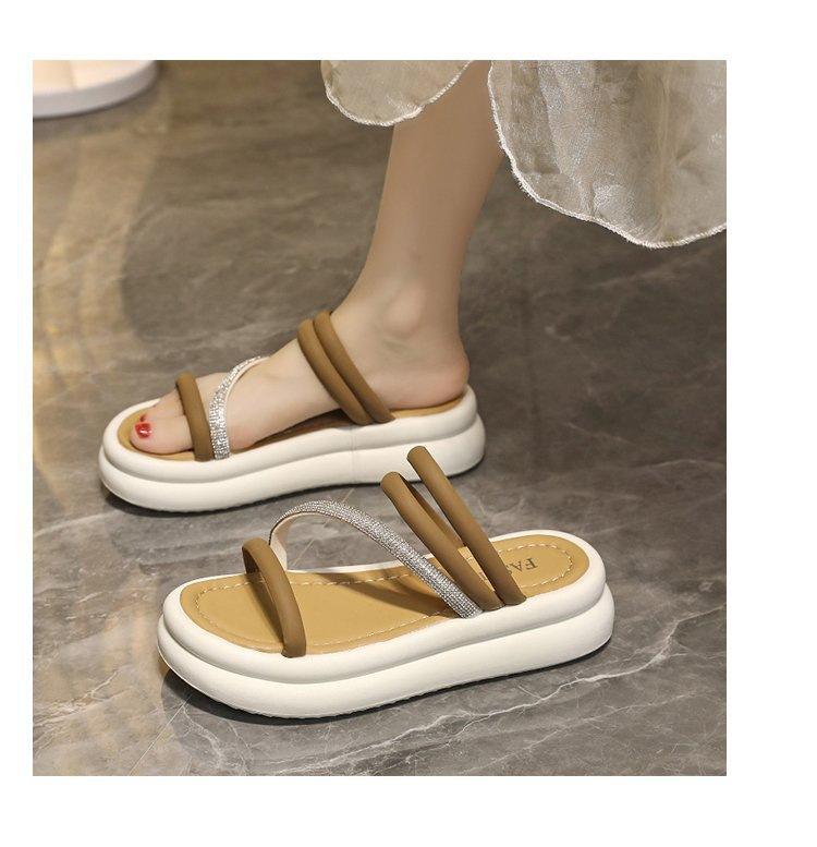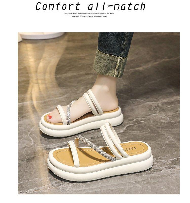 Pantuflas estilo hada para mujer para usar en exteriores, 2025 Nuevas Sandalias de playa de verano con suela gruesa, antideslizantes, modernas, con pedrería