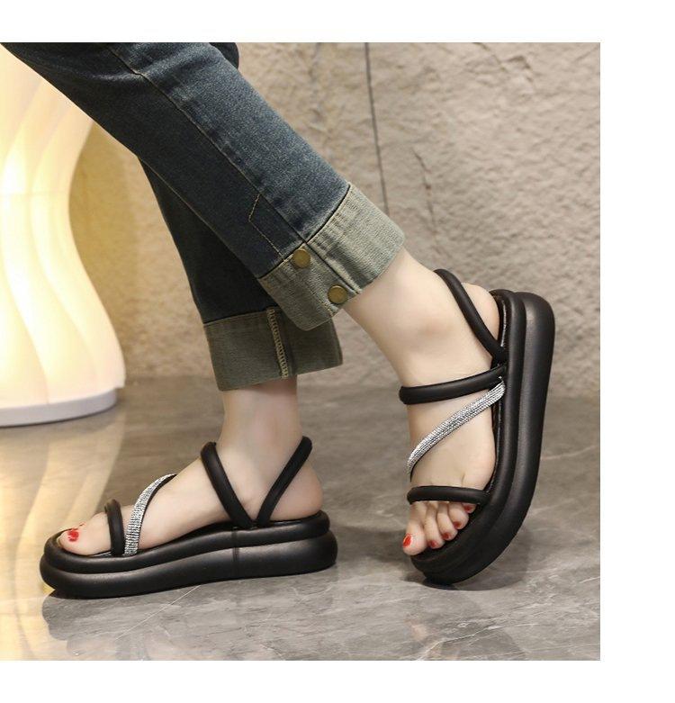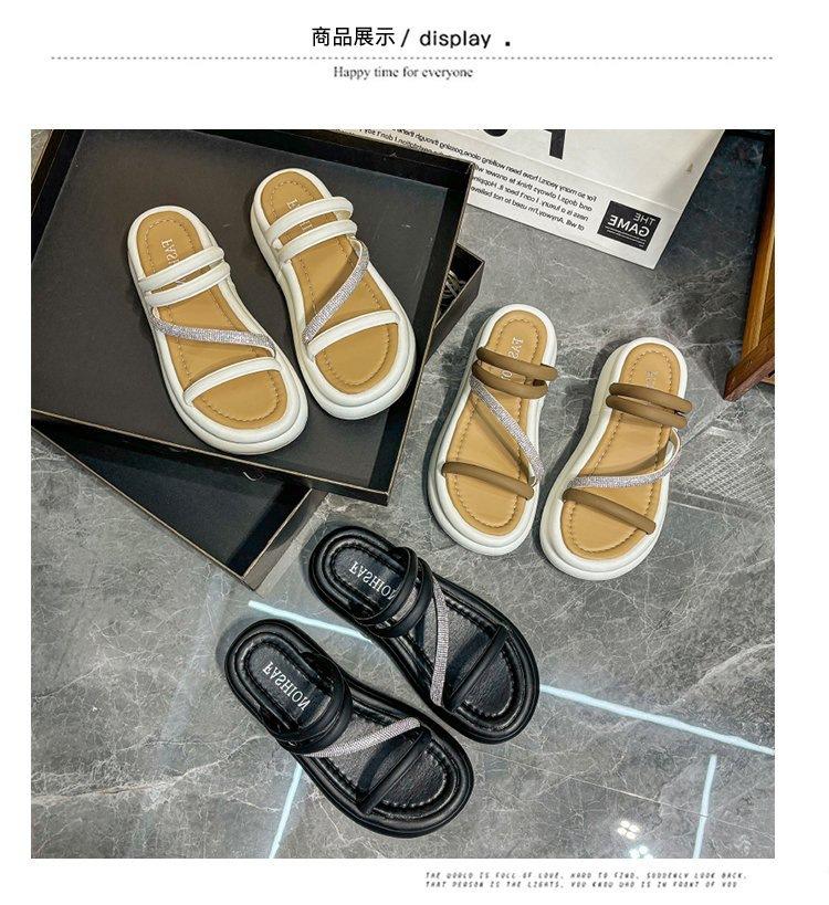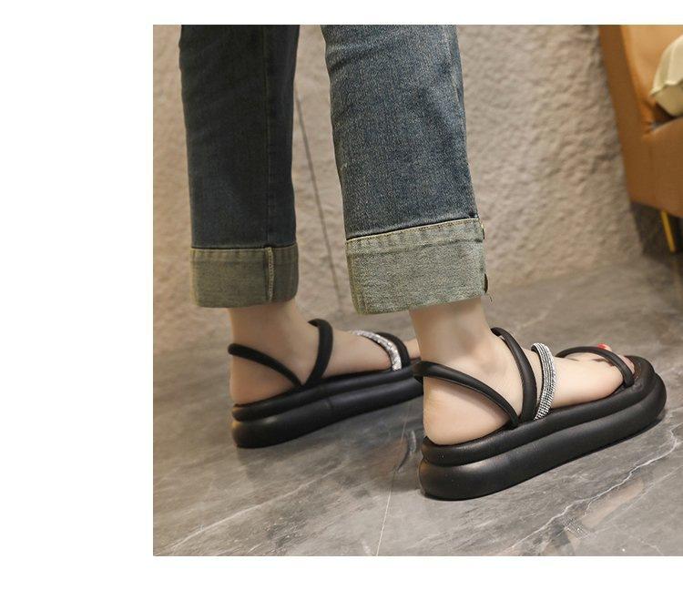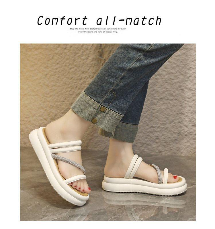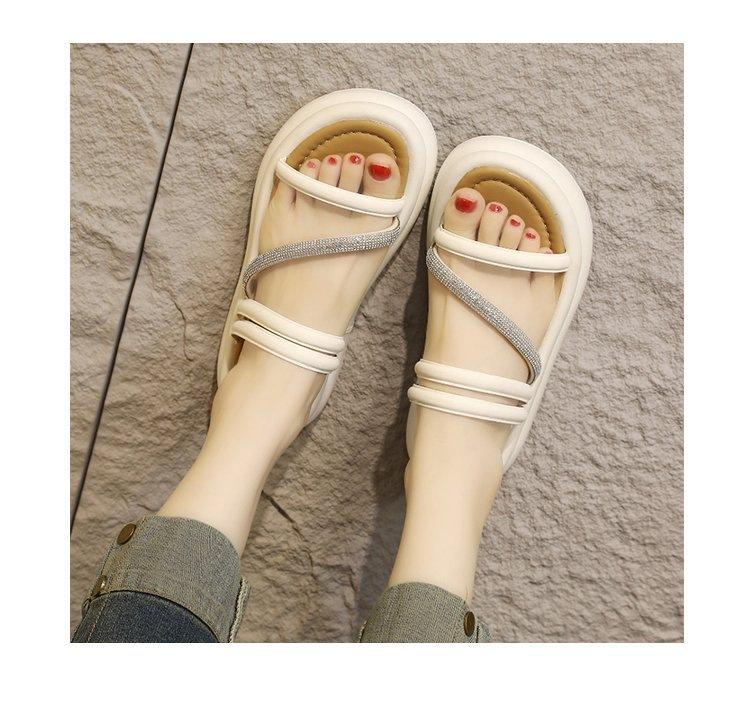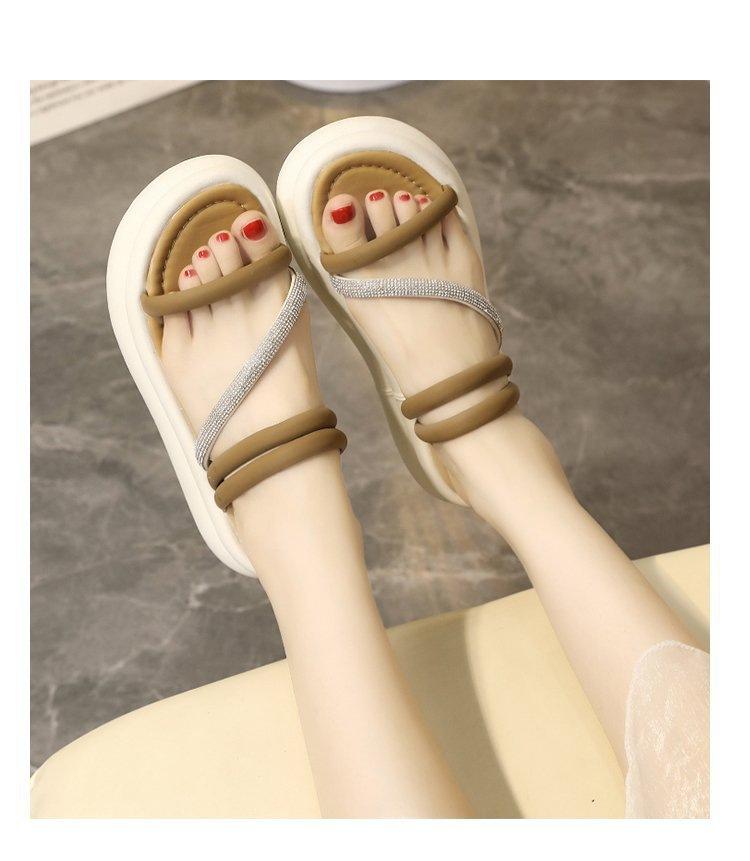 Pantuflas estilo hada para mujer para usar en exteriores, 2025 Nuevas Sandalias de playa de verano con suela gruesa, antideslizantes, modernas, con pedrería