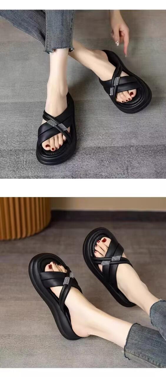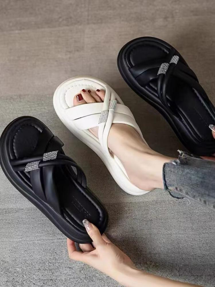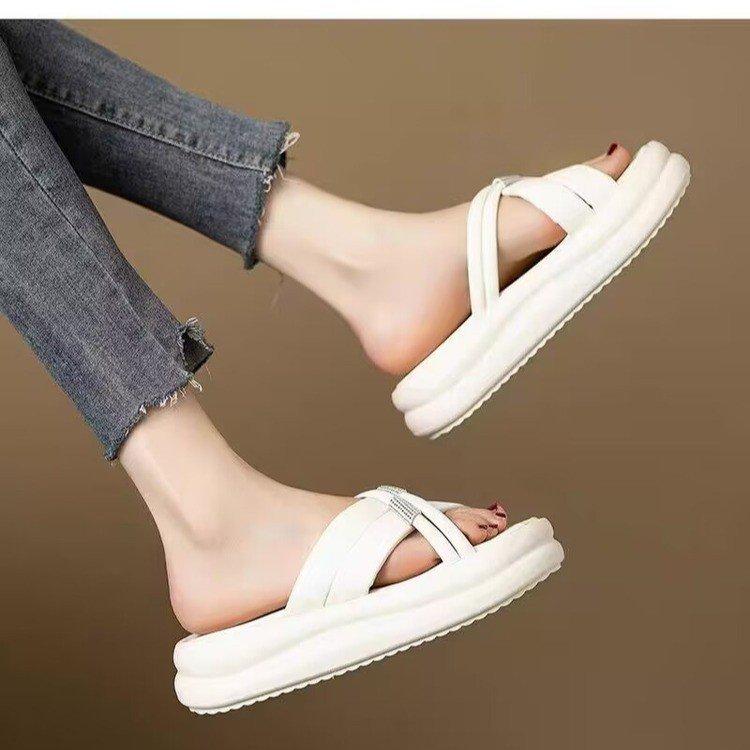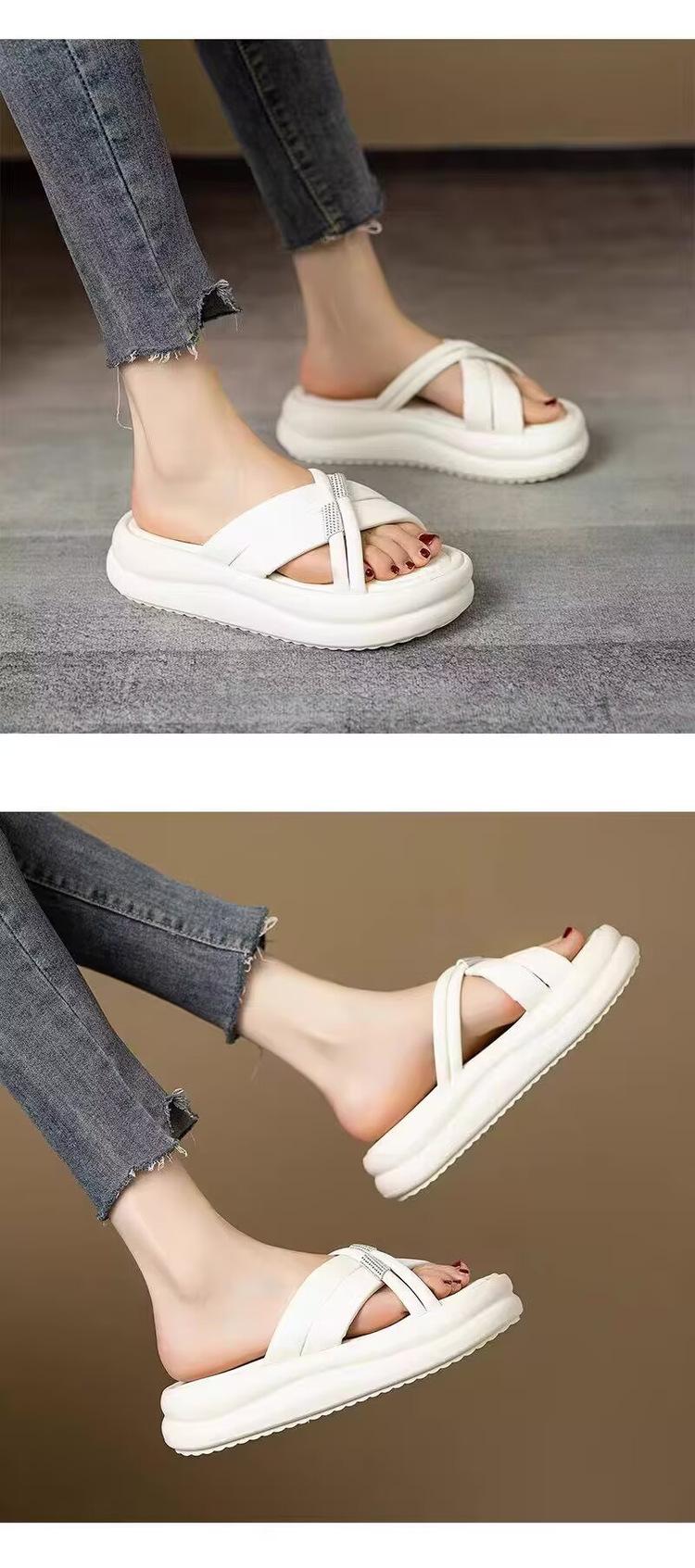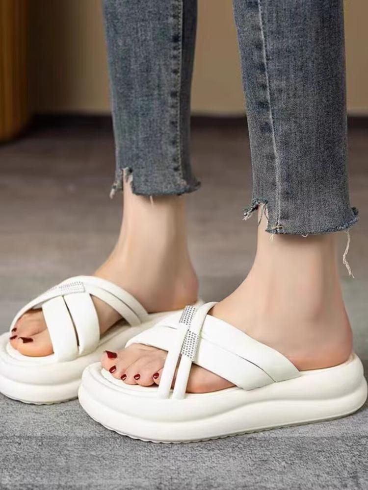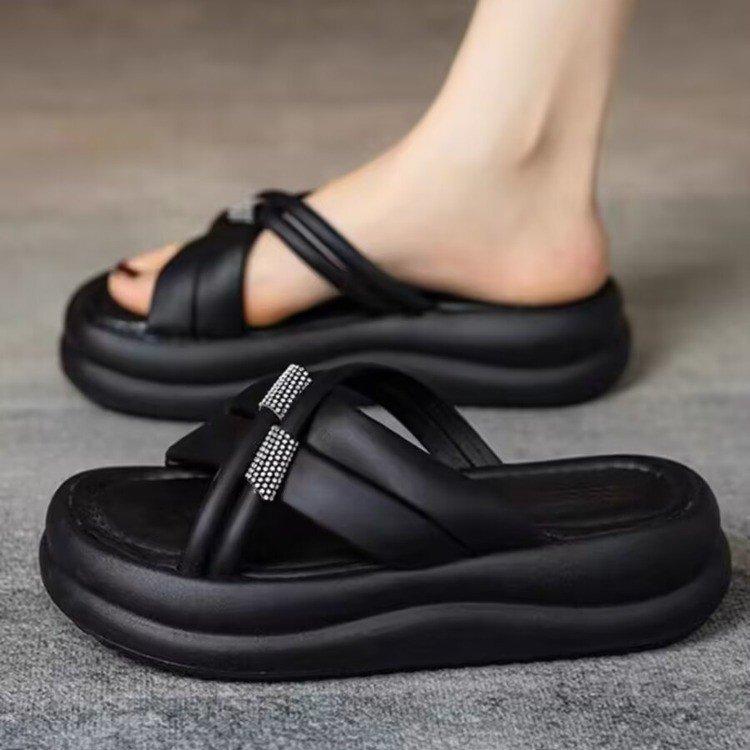 Sandalias para Mujer, Moda de Verano para Exterior 2024 Nuevo Estilo Pedrería Suela Gruesa Sandalias de Playa para Mujeres Embarazadas, Chanclas de Plataforma Alta