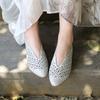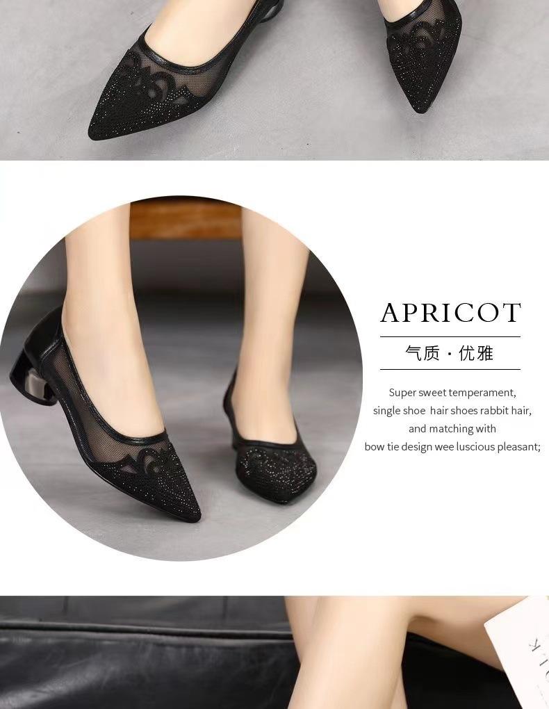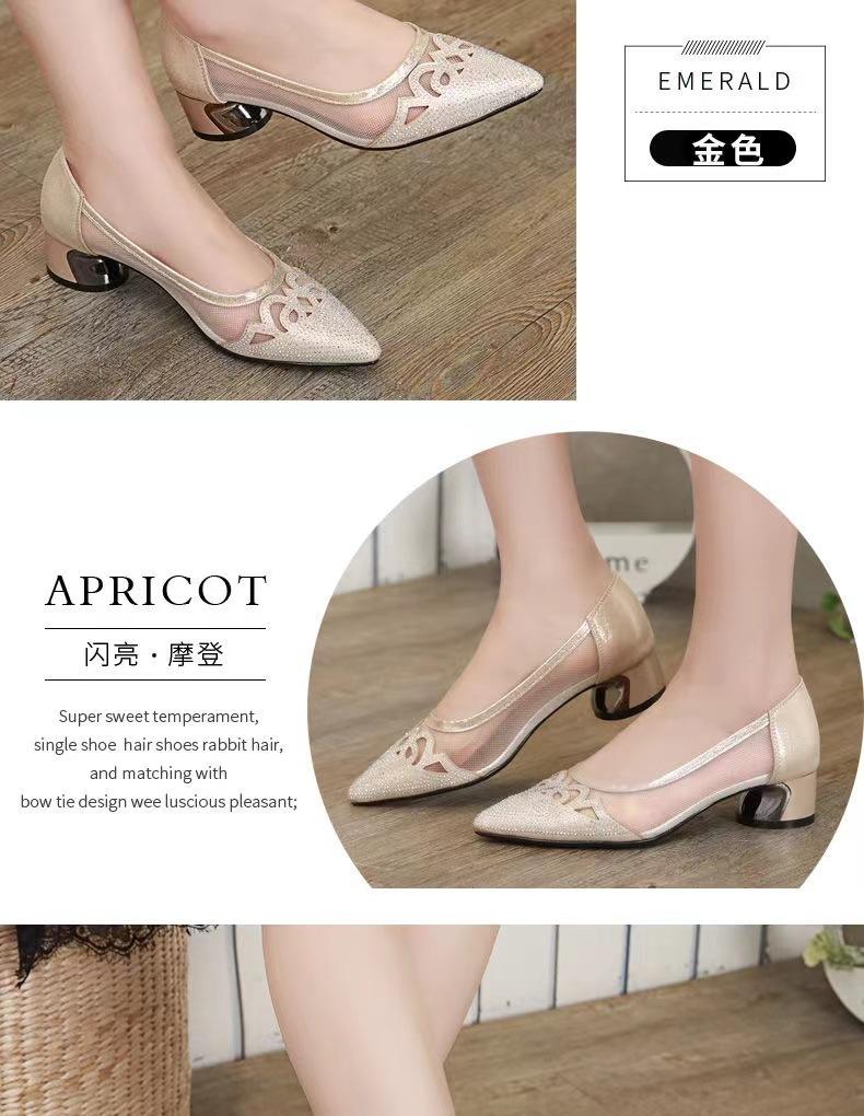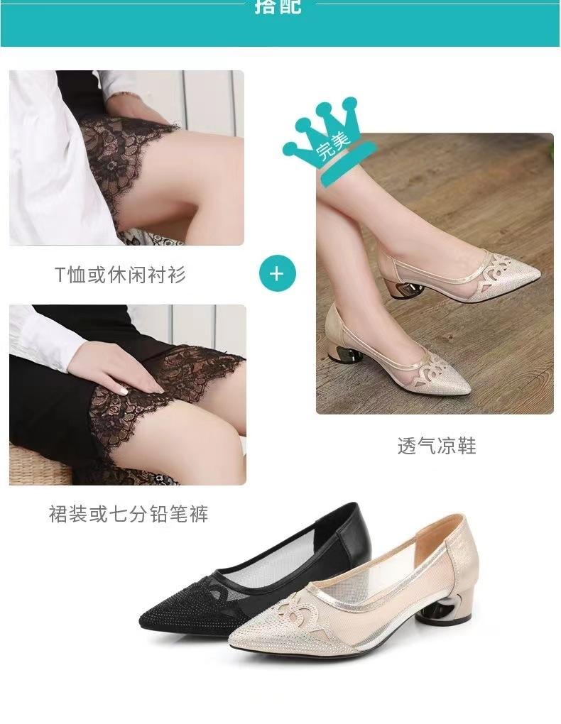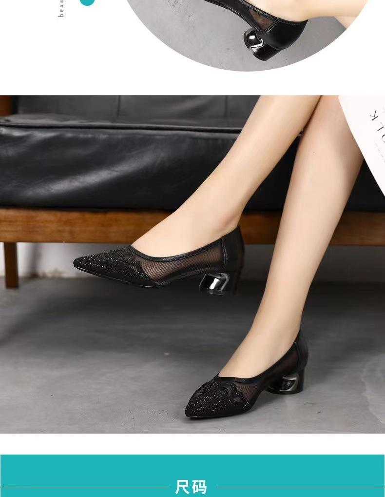 Sandalias de Malla Nuevas de Verano Slip-on Tacón Grueso Zapatos de Mujer Zapatos de Cuero Boca Baja Sandalias Casuales de Moda Mujer