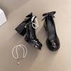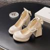 Zapatos Mary Jane de Tacón Grueso para Niña Francesa Zapatos de Cuero con Perlas Nuevos de Verano 2025 para Mujer Sandalias Estilo Hada Gentil