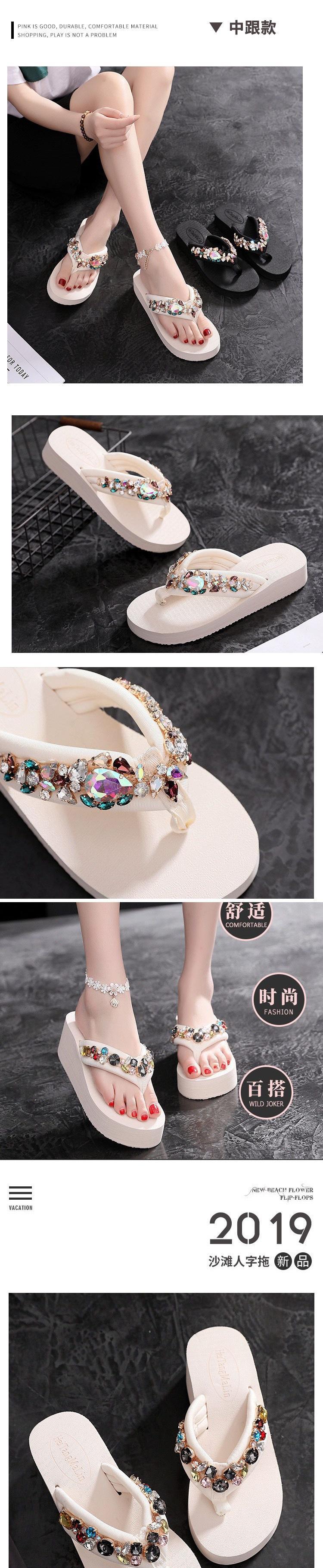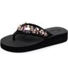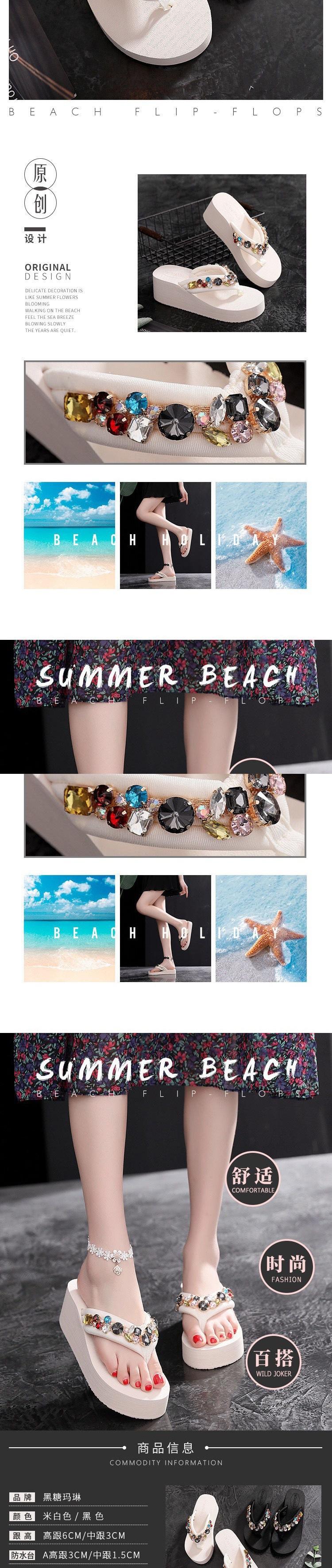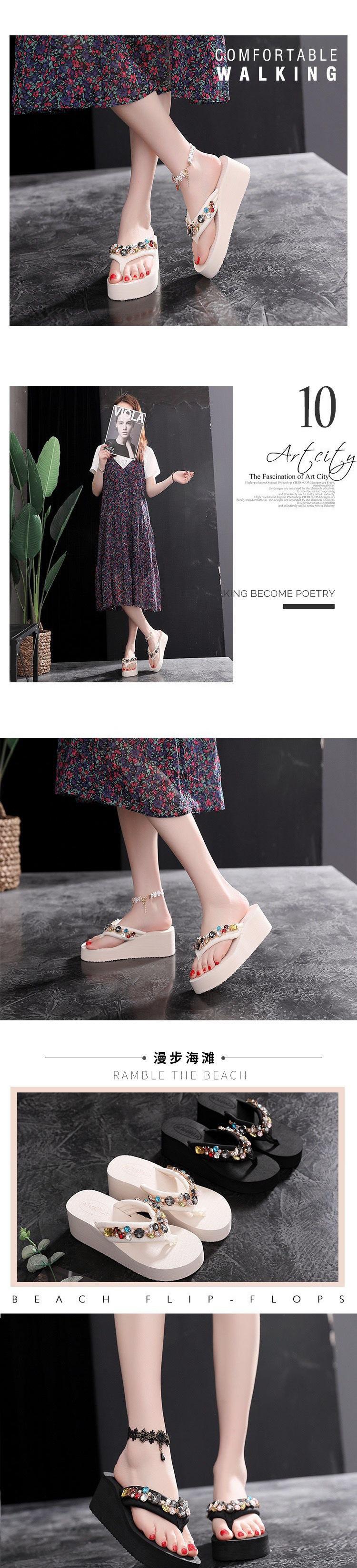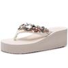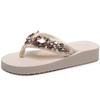 2023 Nuevas Pantuflas de Pedrería para Mujer Verano Plataforma Suela Gruesa Tacón Alto Chanclas Suela Blanda Moda Celebridad de Internet Zapatos de Playa Marítima