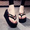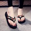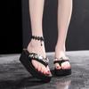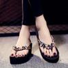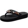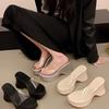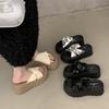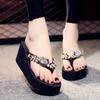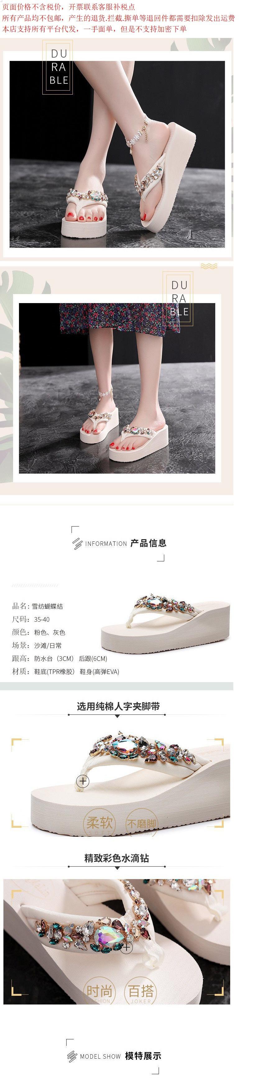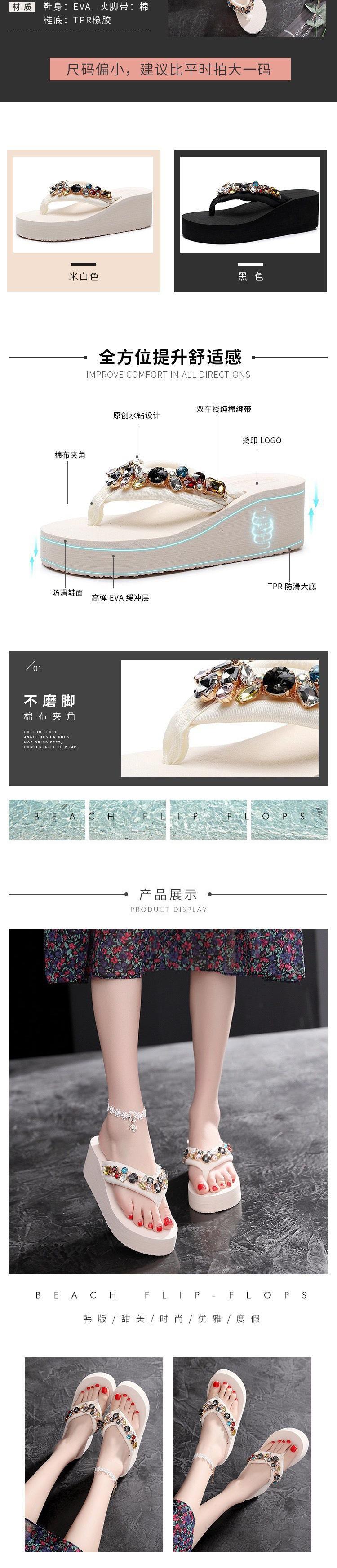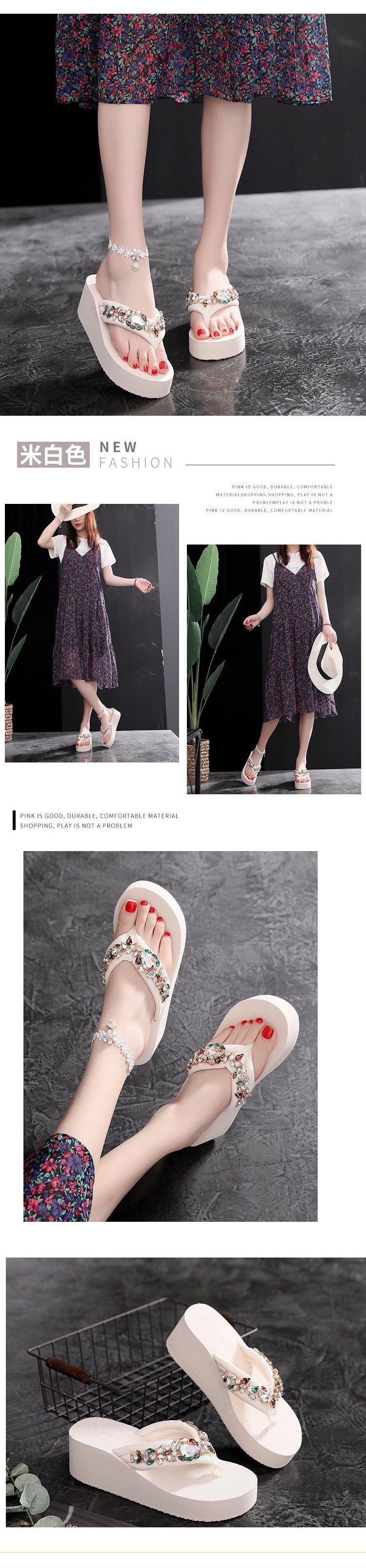 2023 Nuevas Pantuflas de Pedrería para Mujer Verano Plataforma Suela Gruesa Tacón Alto Chanclas Suela Blanda Moda Celebridad de Internet Zapatos de Playa Marítima