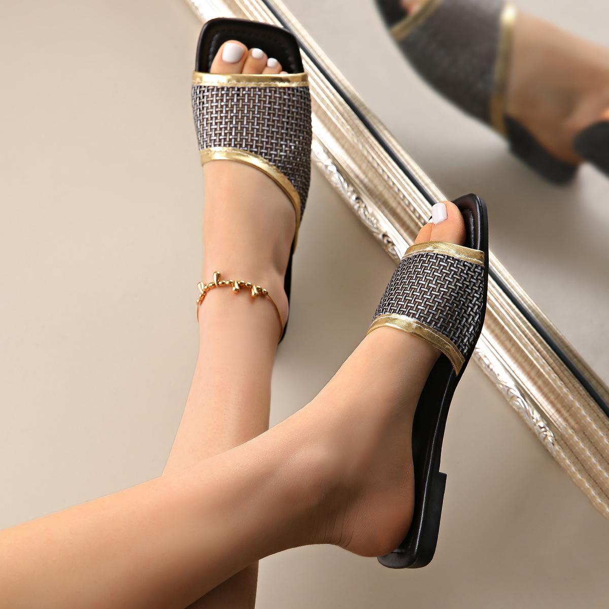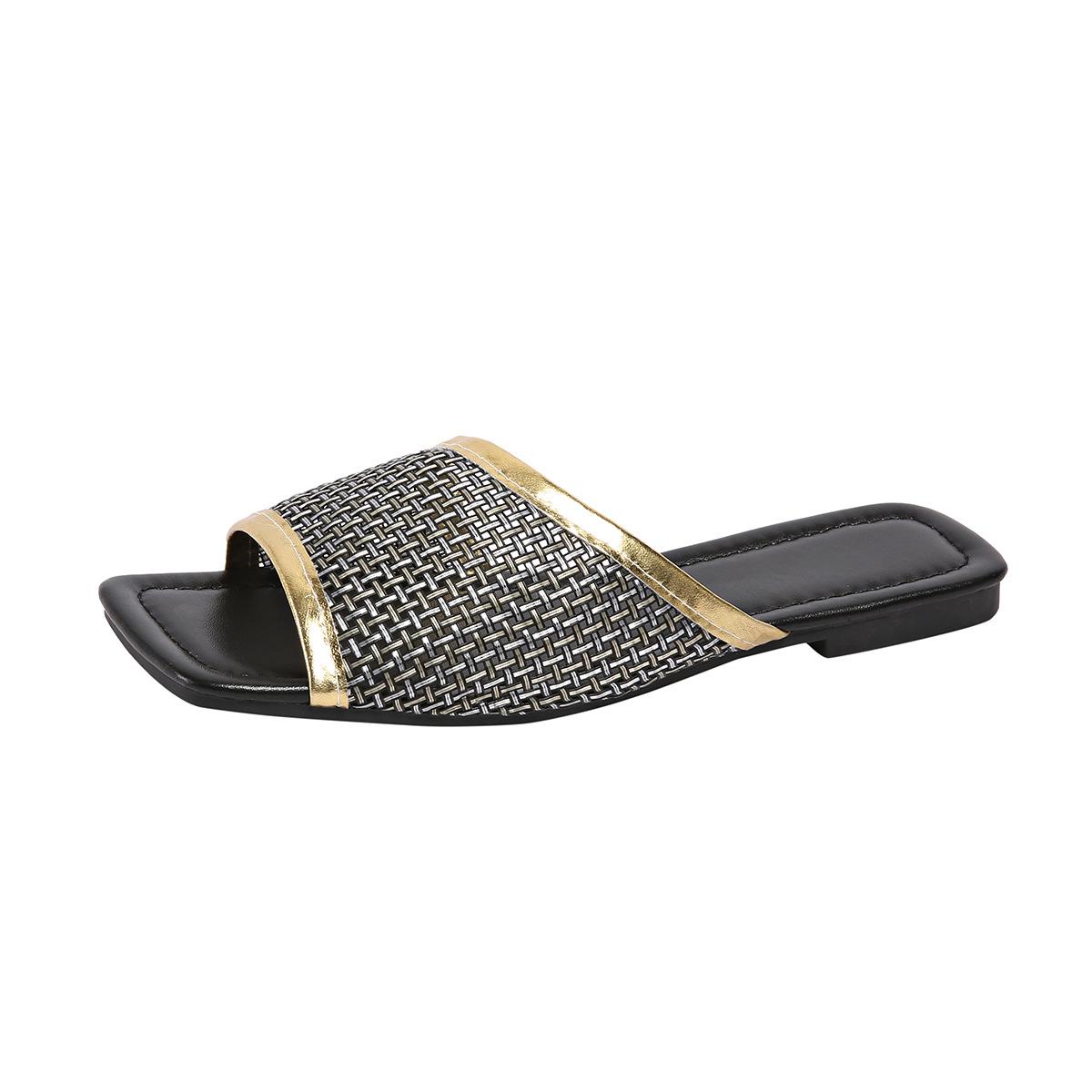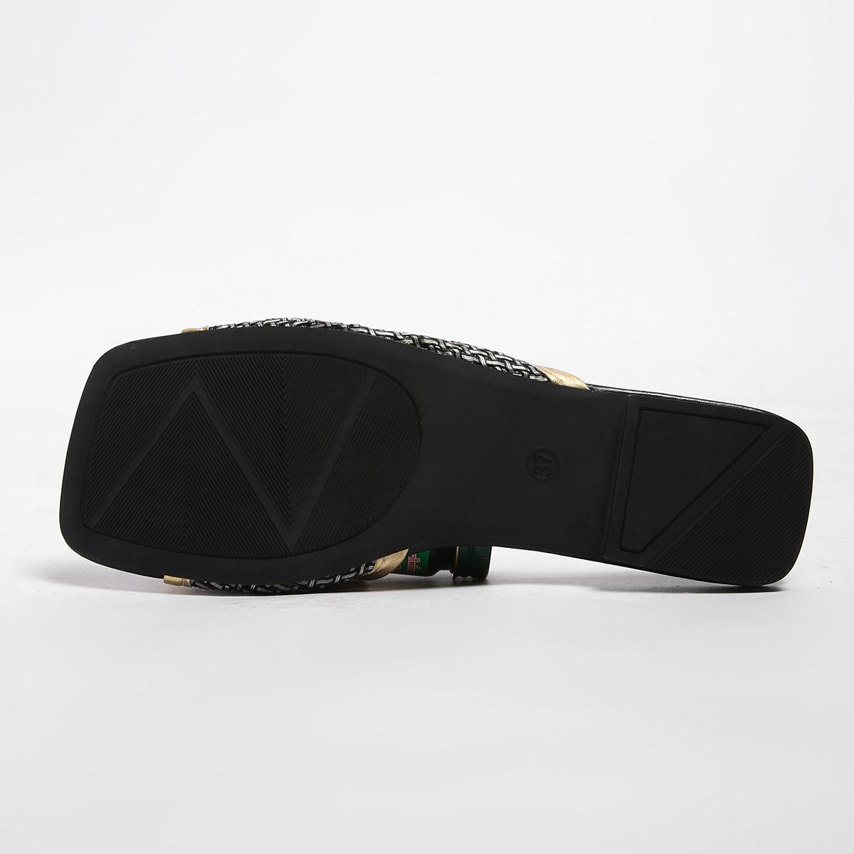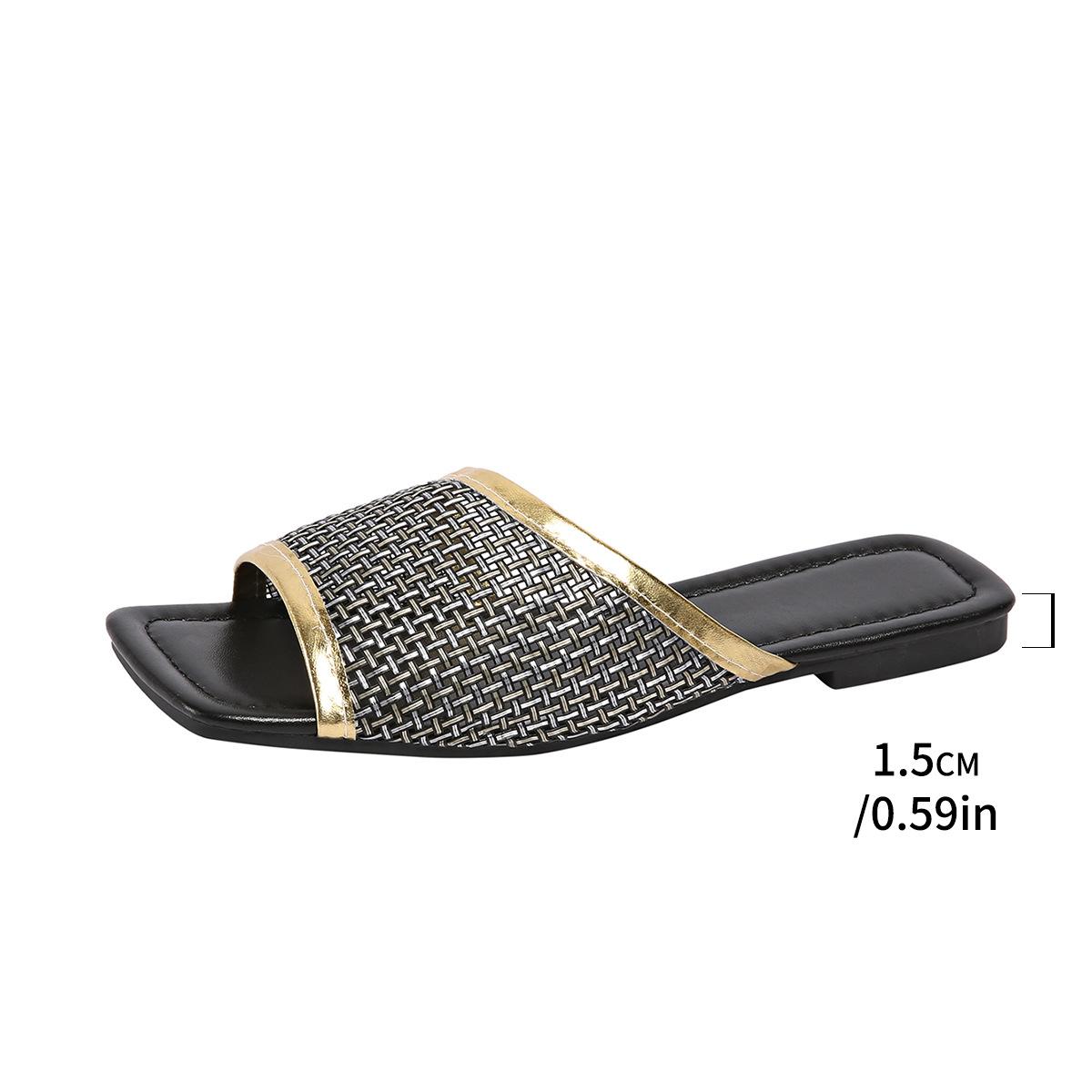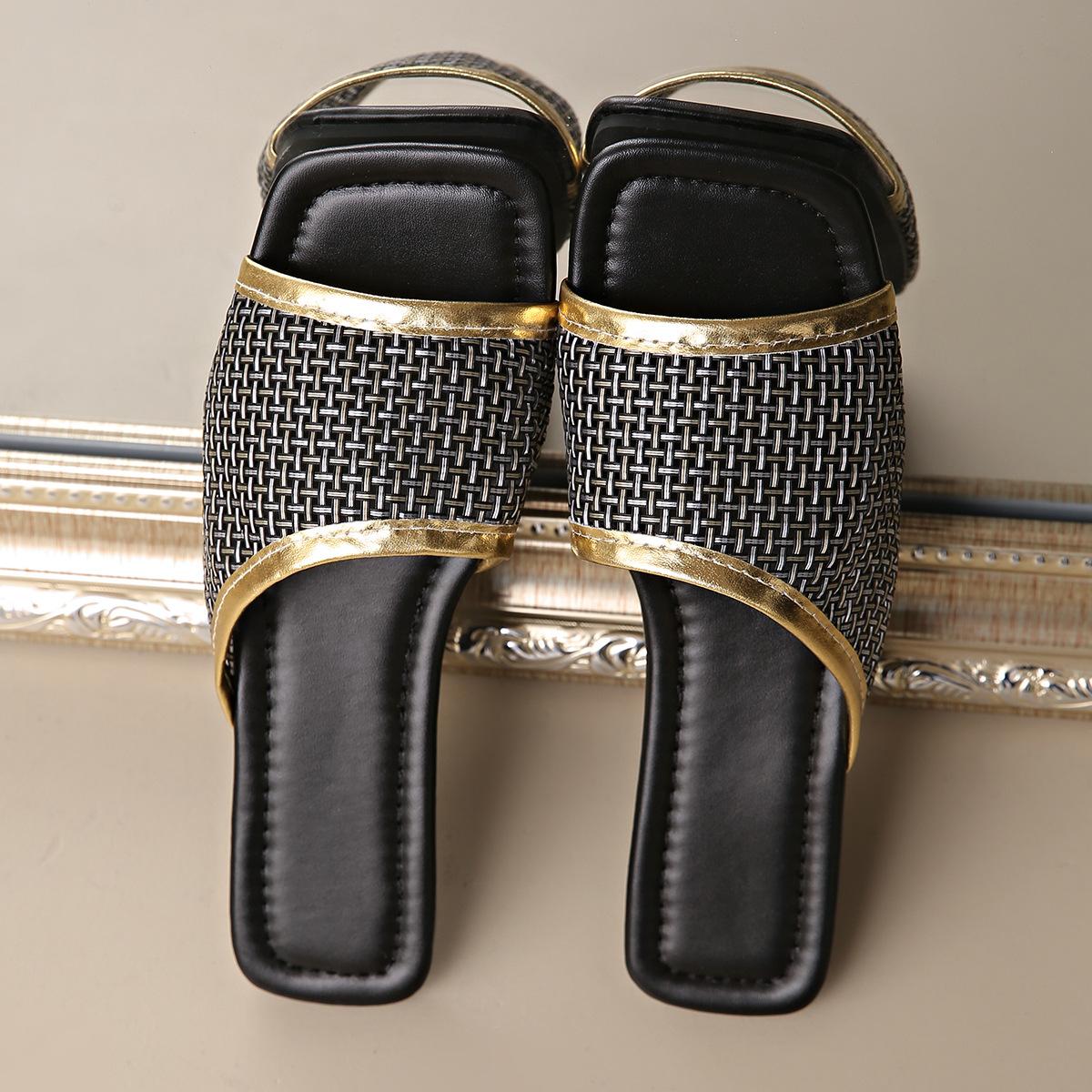 2025 Nuevas Sandalias Negras de Verano para Mujer para Usar Malla Dorada Chanclas de Playa Sandalias Planas para Mujer Talla Grande