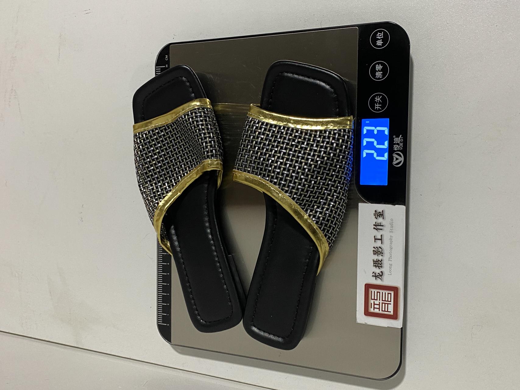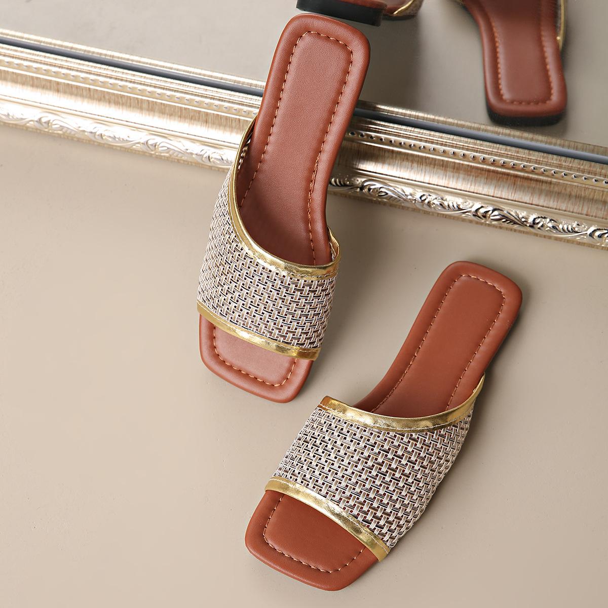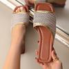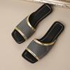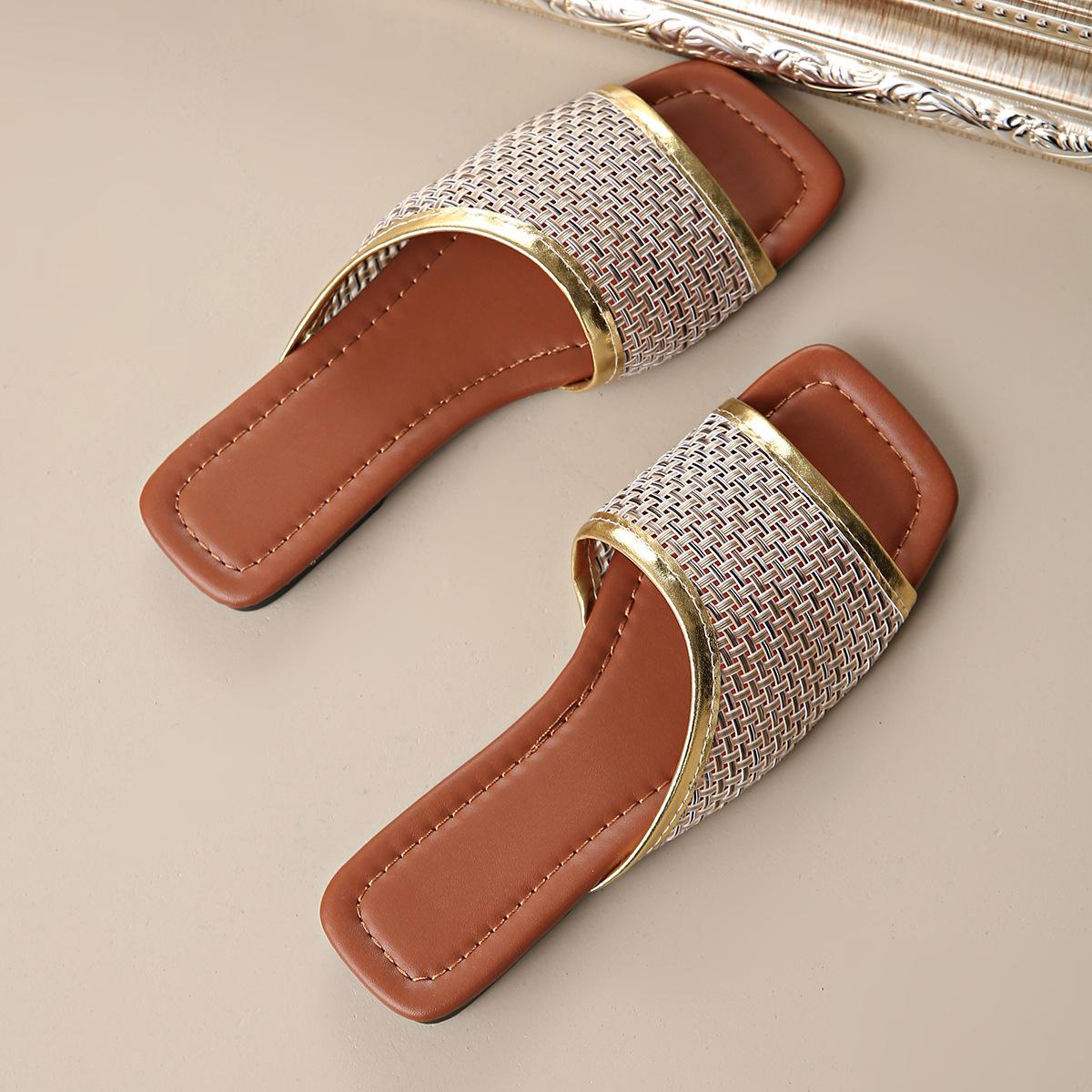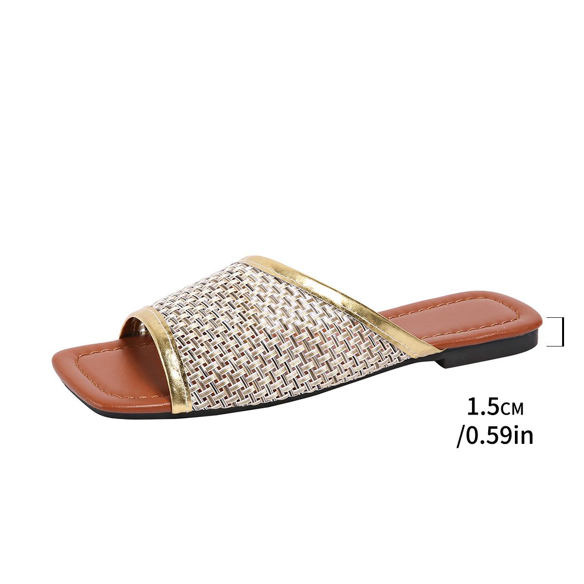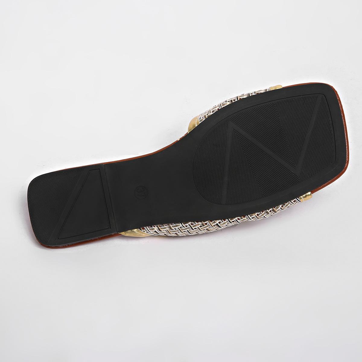 2025 Nuevas Sandalias Negras de Verano para Mujer para Usar Malla Dorada Chanclas de Playa Sandalias Planas para Mujer Talla Grande