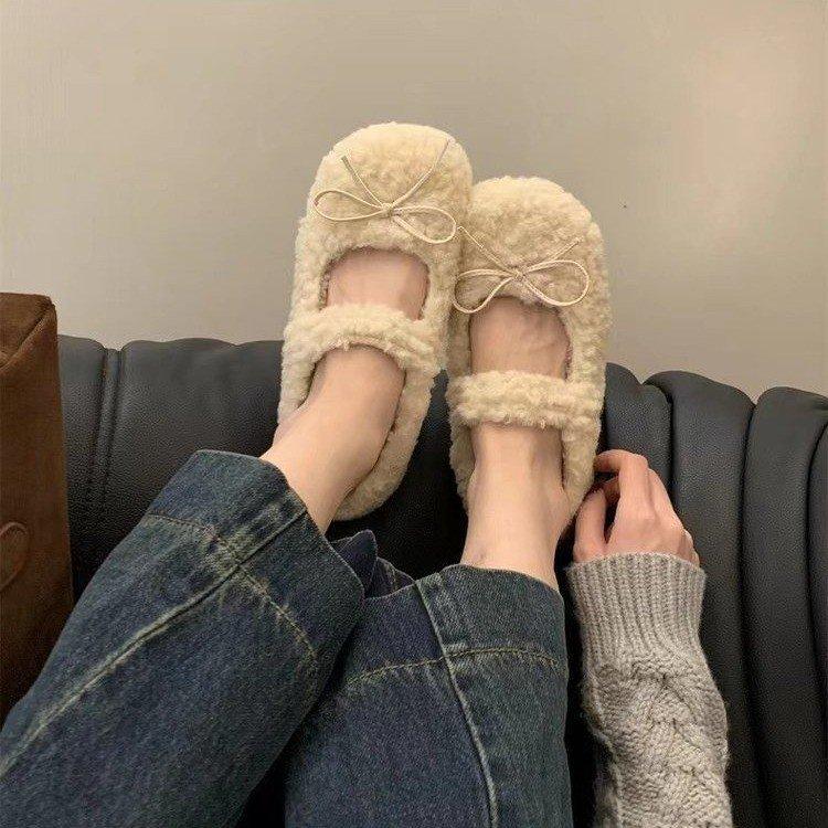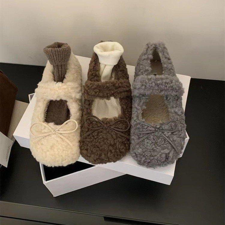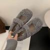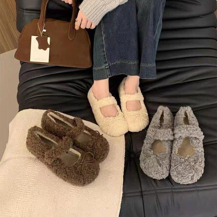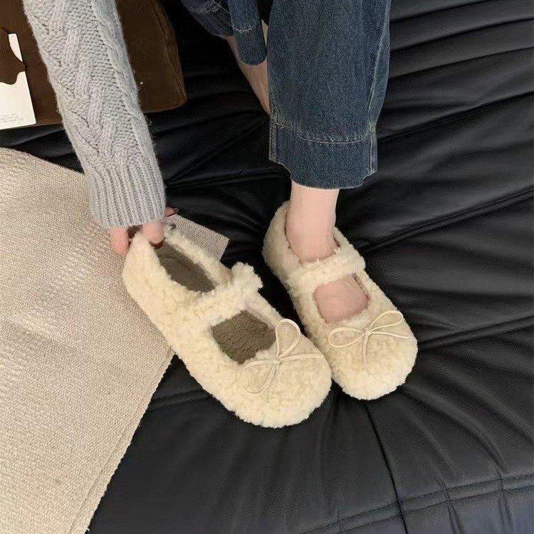 Zapatos planos de algodón para mujer 2024, mocasines, estilo Mary Jane, forrados de vellón, versátiles, estilo suave, nuevo modelo de otoño e invierno