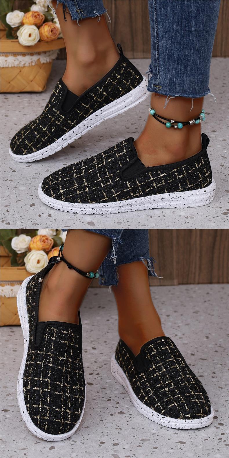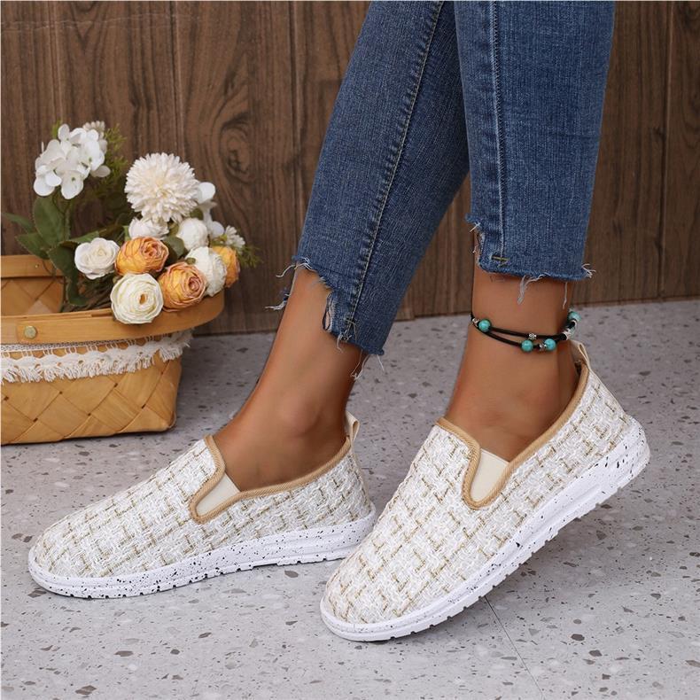 Zapatos Casuales de Moda Slip-On de Cuadros Bajos para Mamá al Por Mayor Transfronterizos Talla Grande Zapatos de Tela de Corte Bajo Transpirables Zapatos Individuales