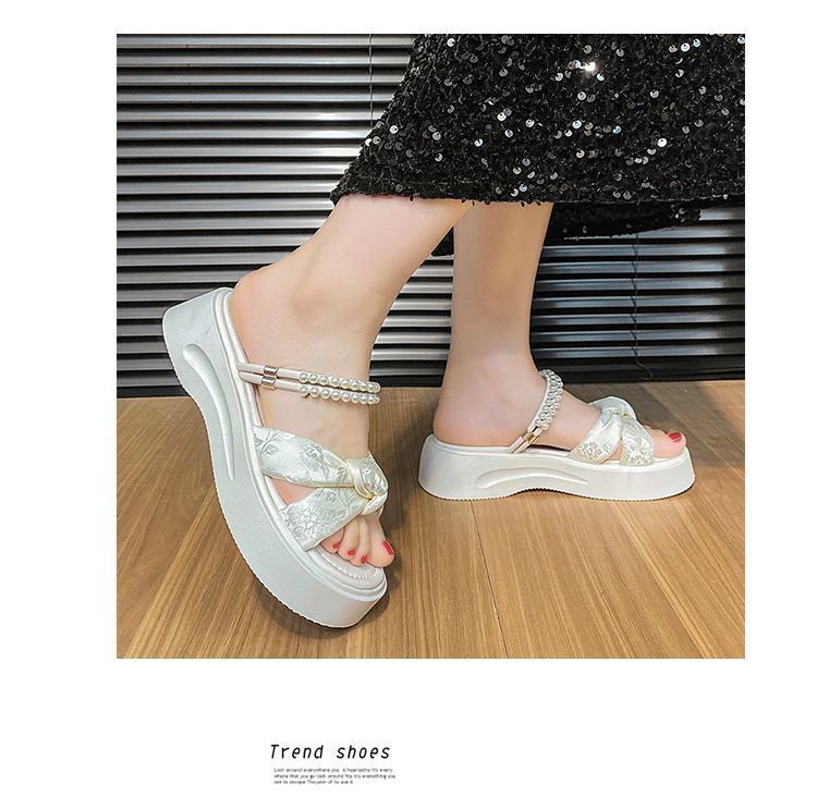 Pantuflas de Suela Gruesa para Mujer para Verano para Exterior, Sandalias y Pantuflas Pequeñas Fragantes de Celebridad de Internet a la Moda, Zapatos de Playa Antideslizantes
