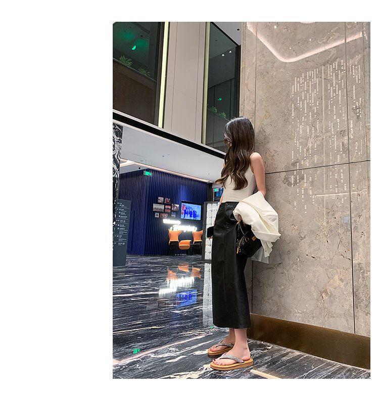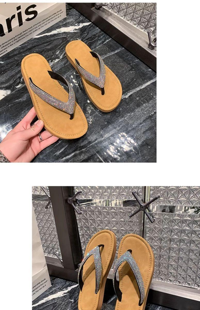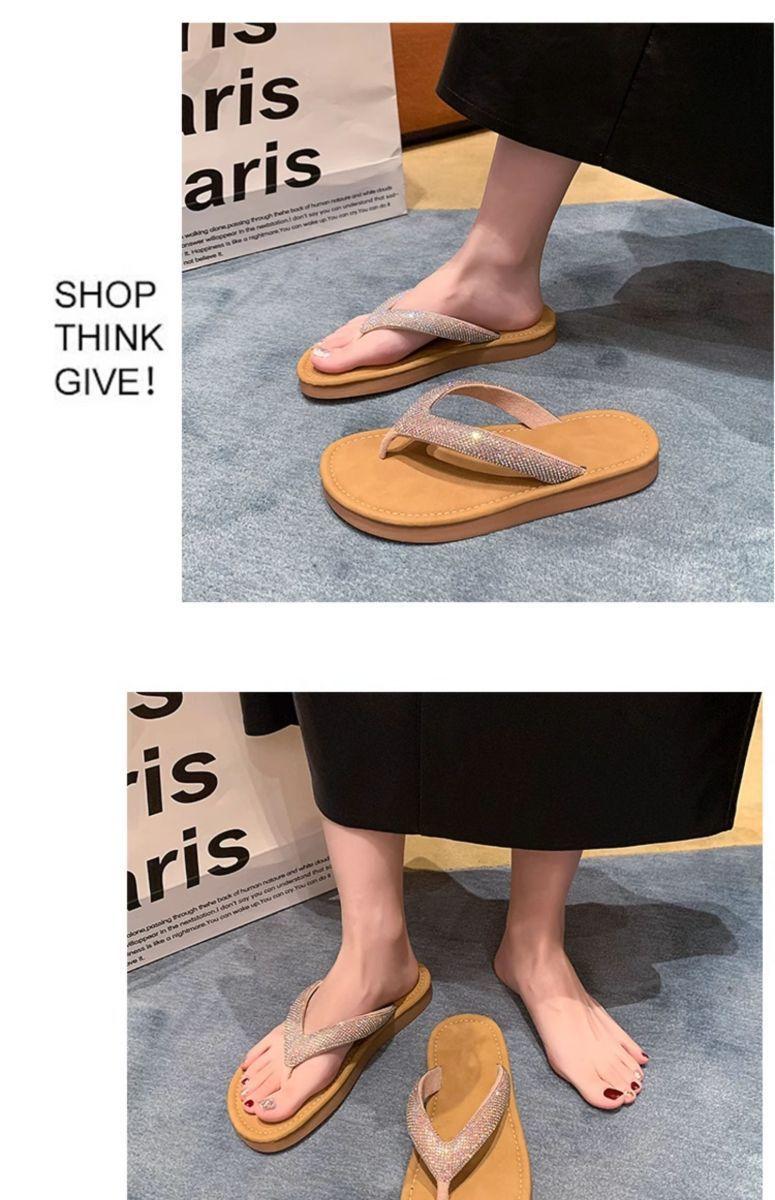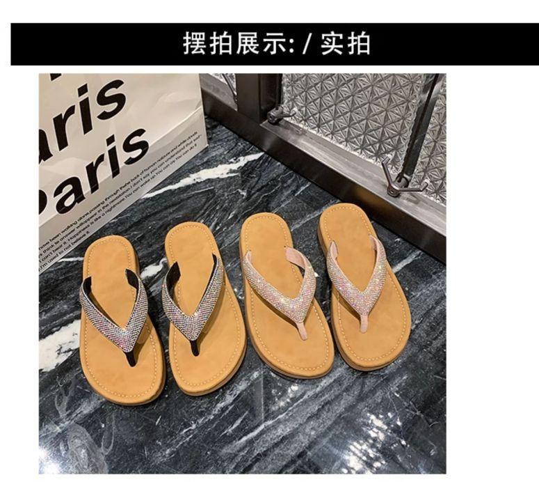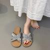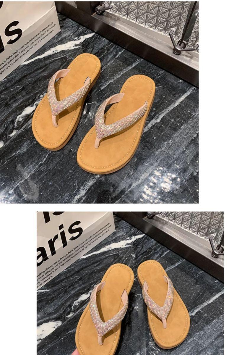 Sandalias para Mujer Verano 2025 Nuevo Calzado Exterior Planas Moda Pedrería Sencillas Versátiles Suela Blanda Chanclas de Playa