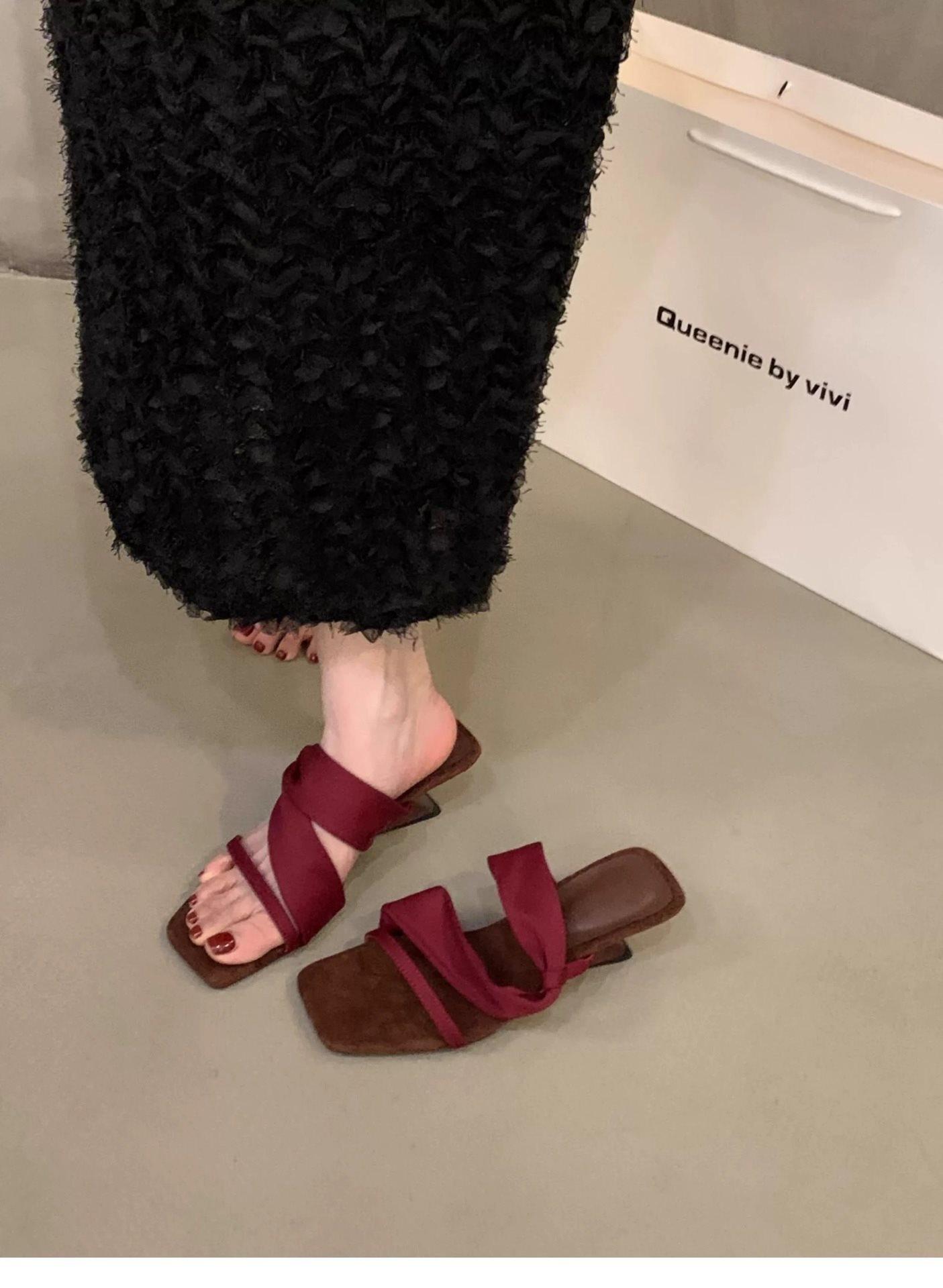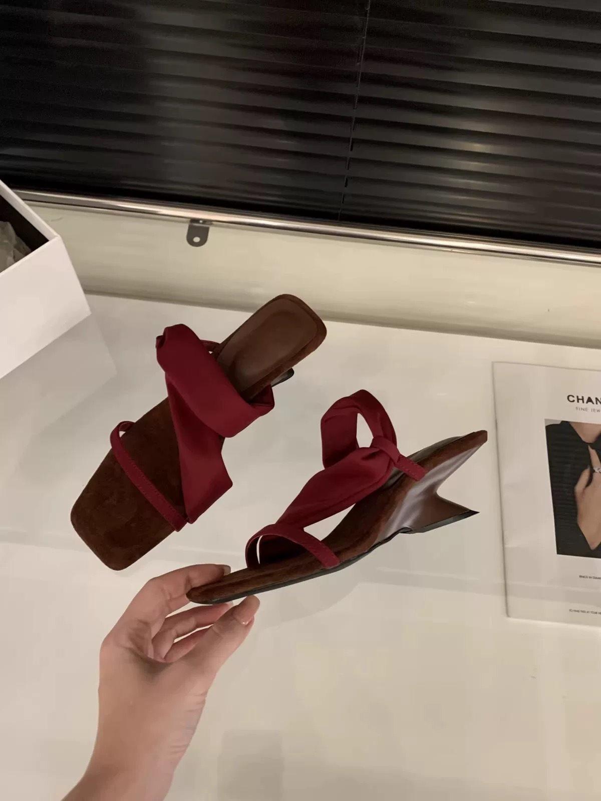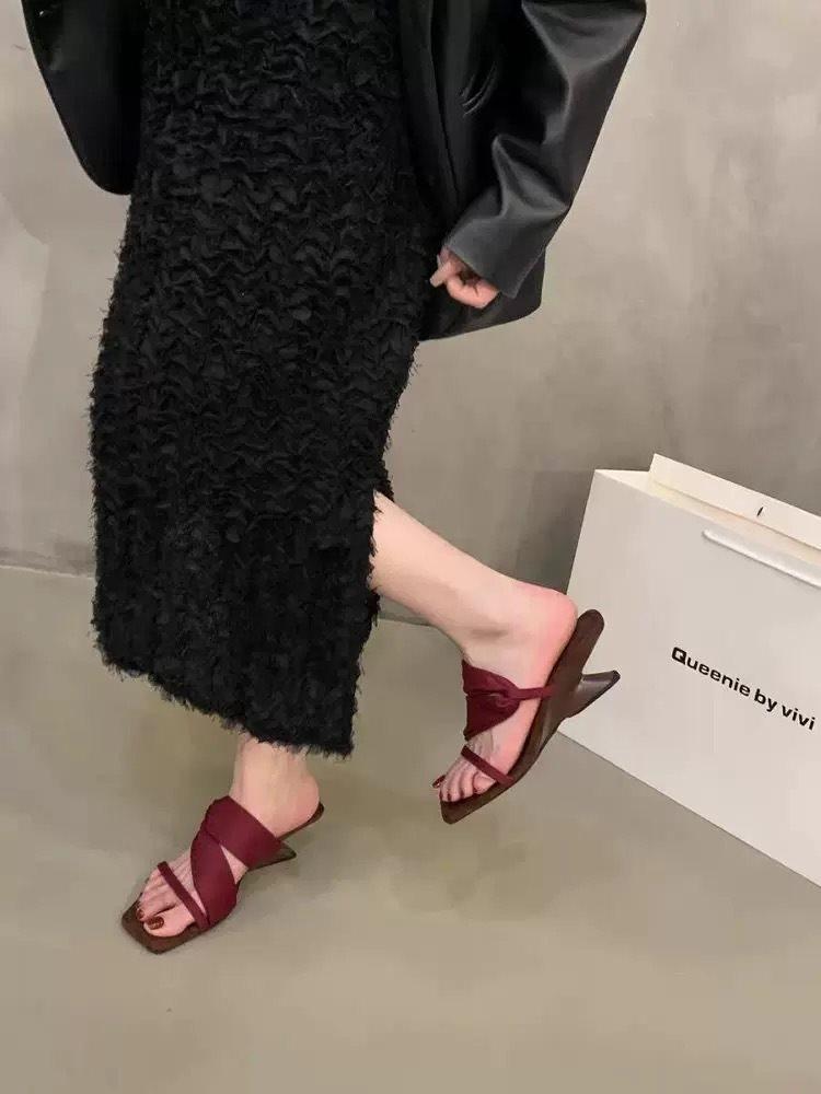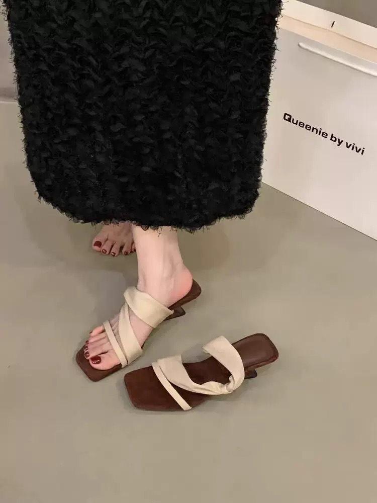 Verano 2025 Nueva Moda Combinable Diseño Nicho Sandalias Retro de Cuña Punta Cuadrada Punta Abierta Sandalias de Tacón Alto