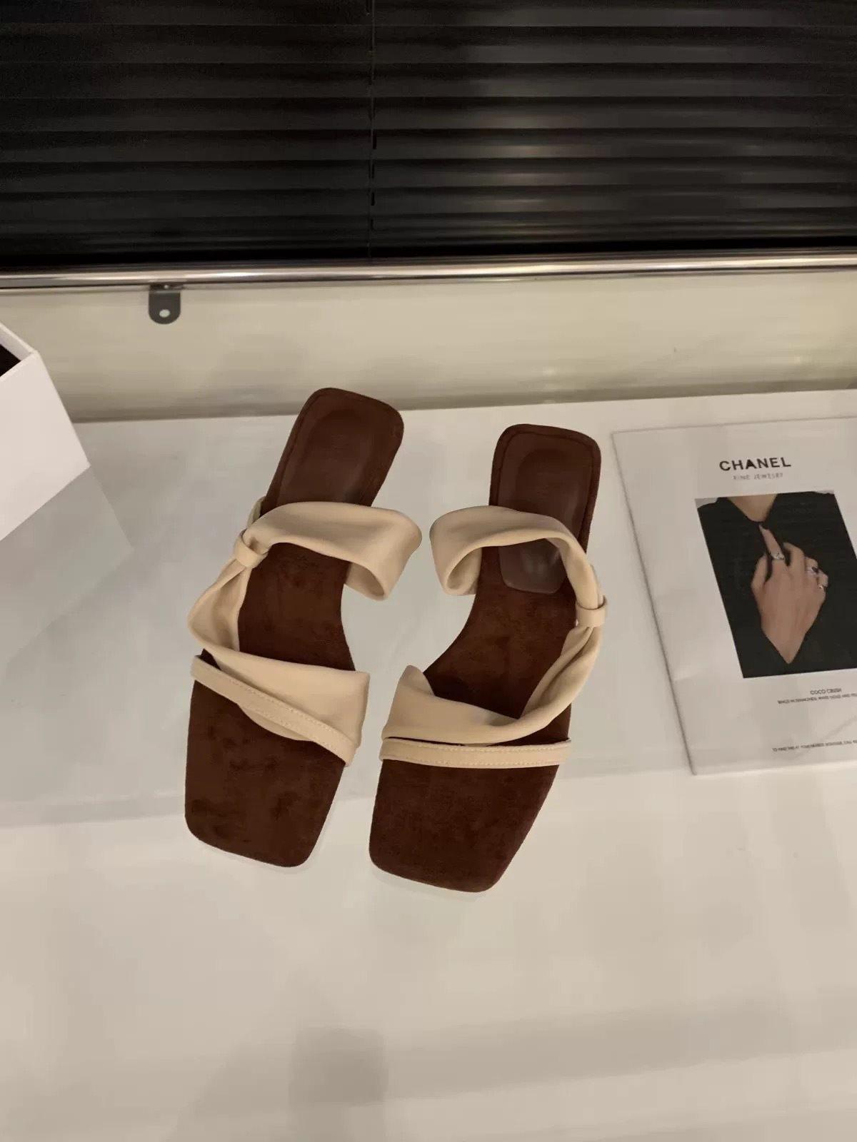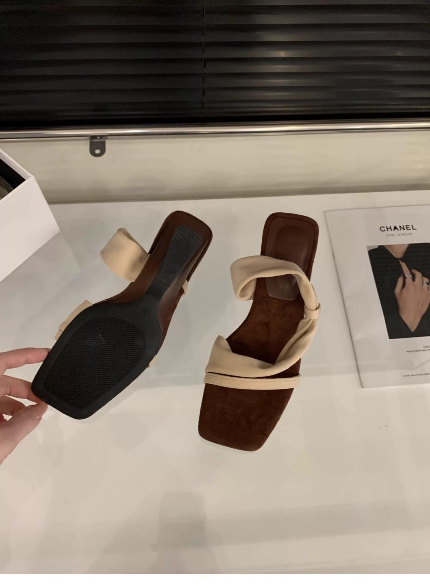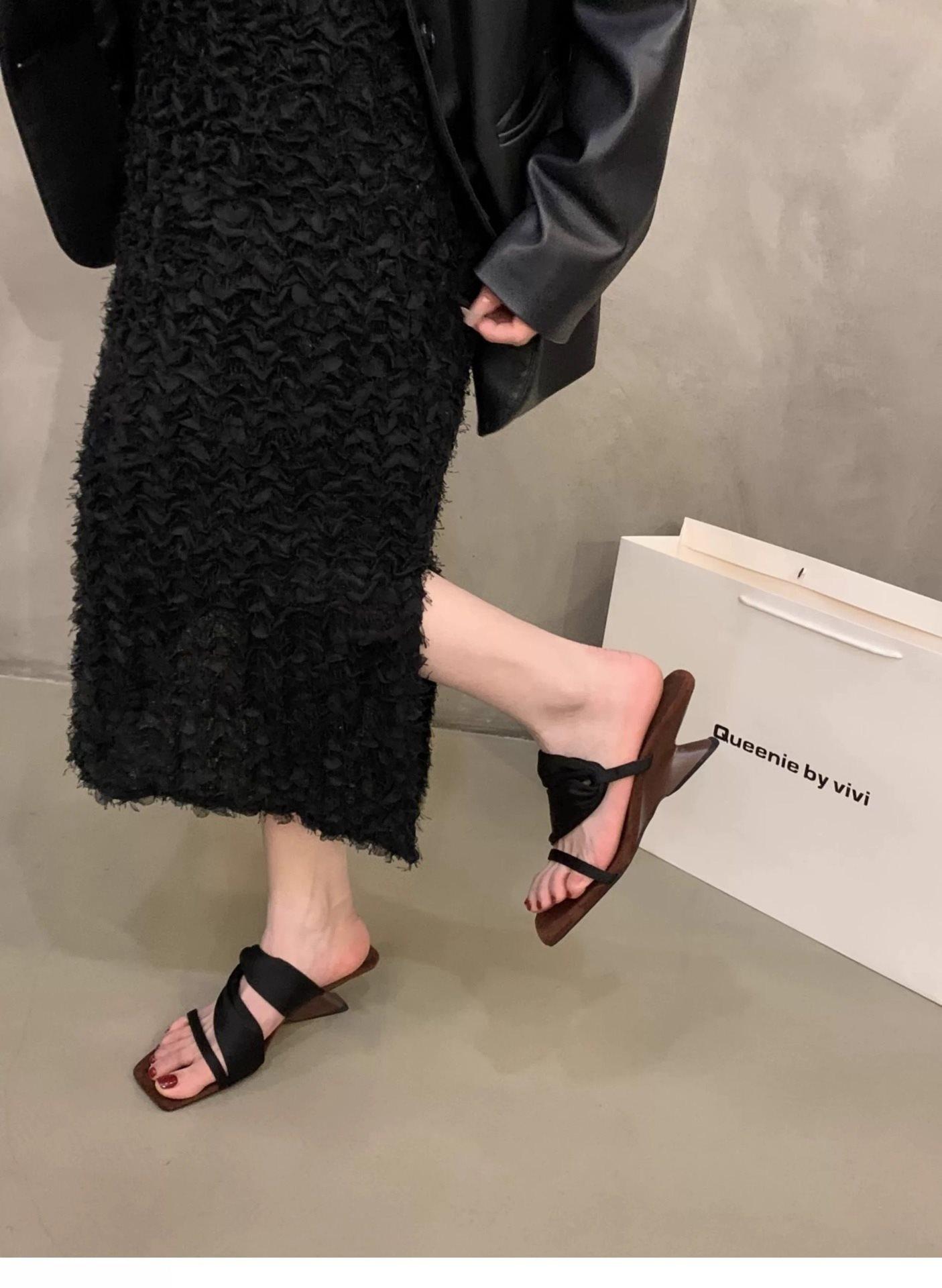 Verano 2025 Nueva Moda Combinable Diseño Nicho Sandalias Retro de Cuña Punta Cuadrada Punta Abierta Sandalias de Tacón Alto