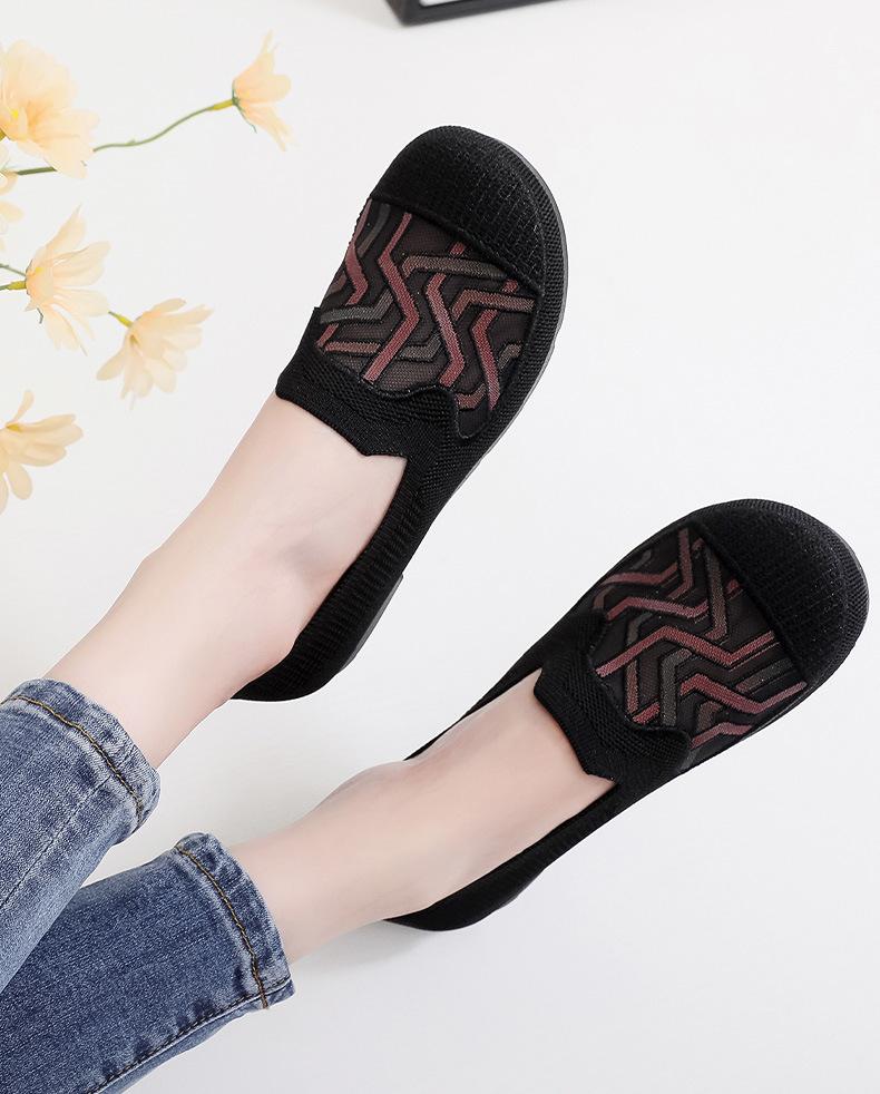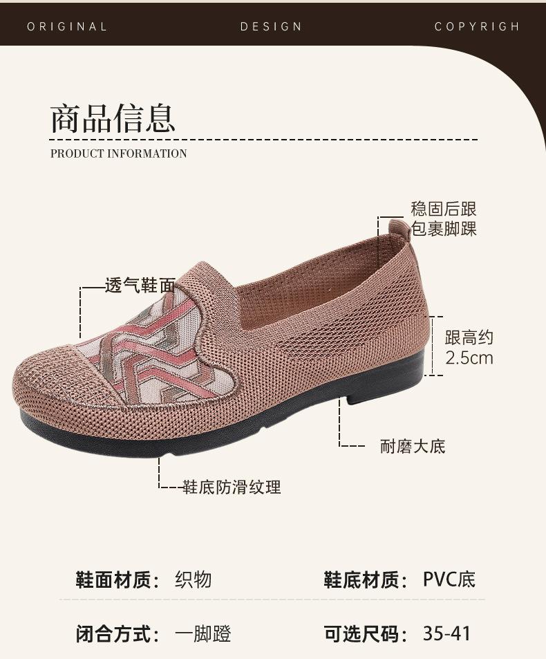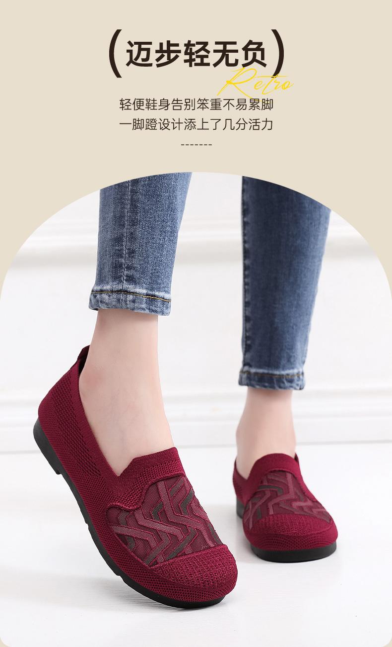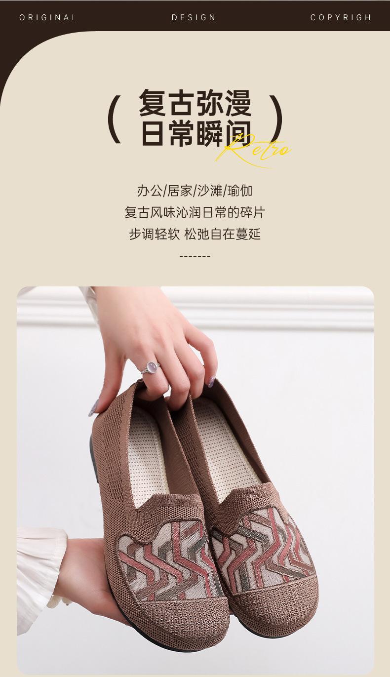 Zapatos de Primavera para Madres para Mujer, Zapatos Bordados de Malla Transpirable de Suela Blanda Ligera, Zapatos de Tela de Pekín Antiguo, Zapatos Slip-On para Mujer