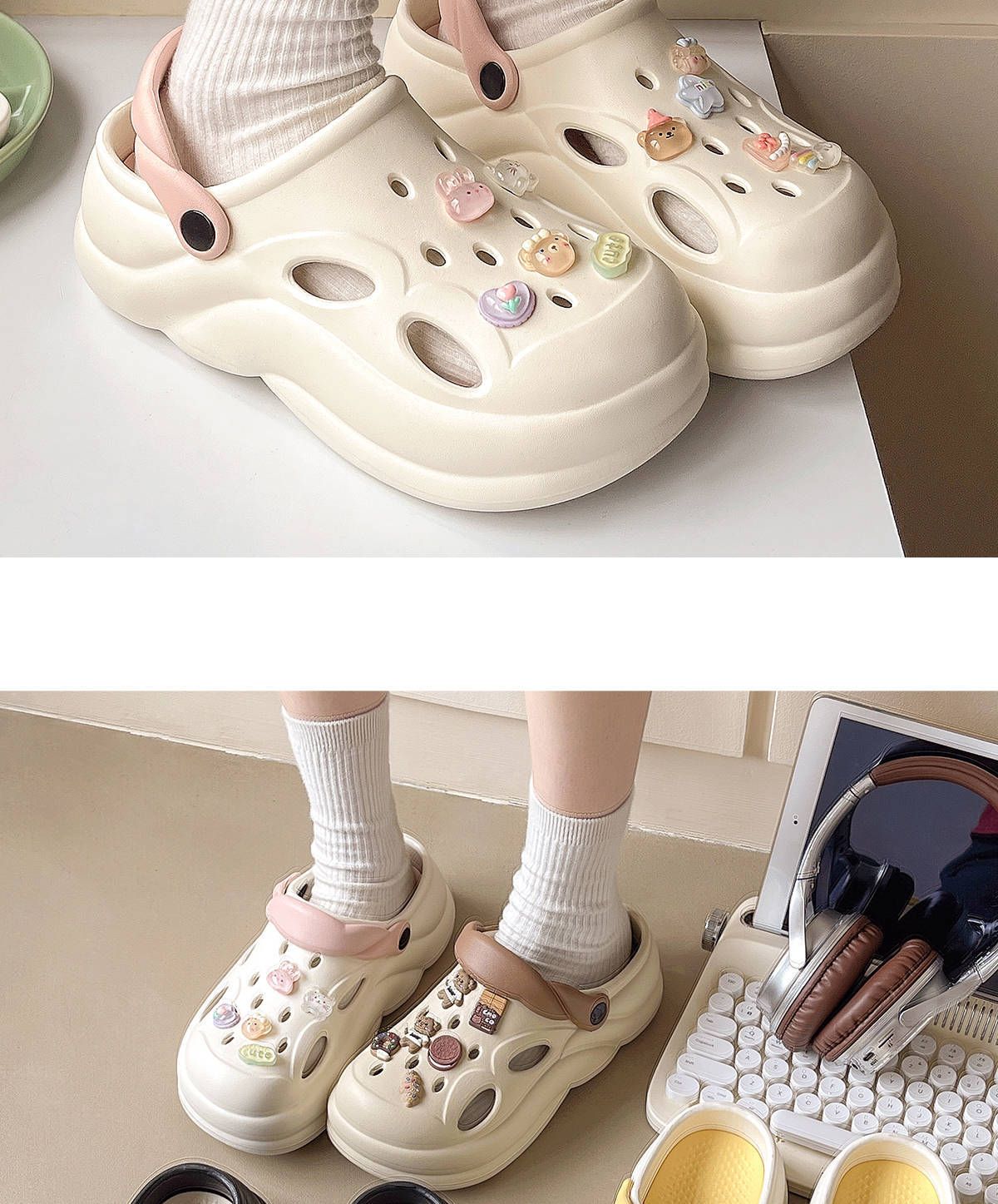 Zapatos Croc de Suela Gruesa para Mujer Antideslizantes Playa Aumento de Altura Eva Sandalias Baotou Zapatillas para Mujer Verano Ropa Exterior Transpirable Tacón