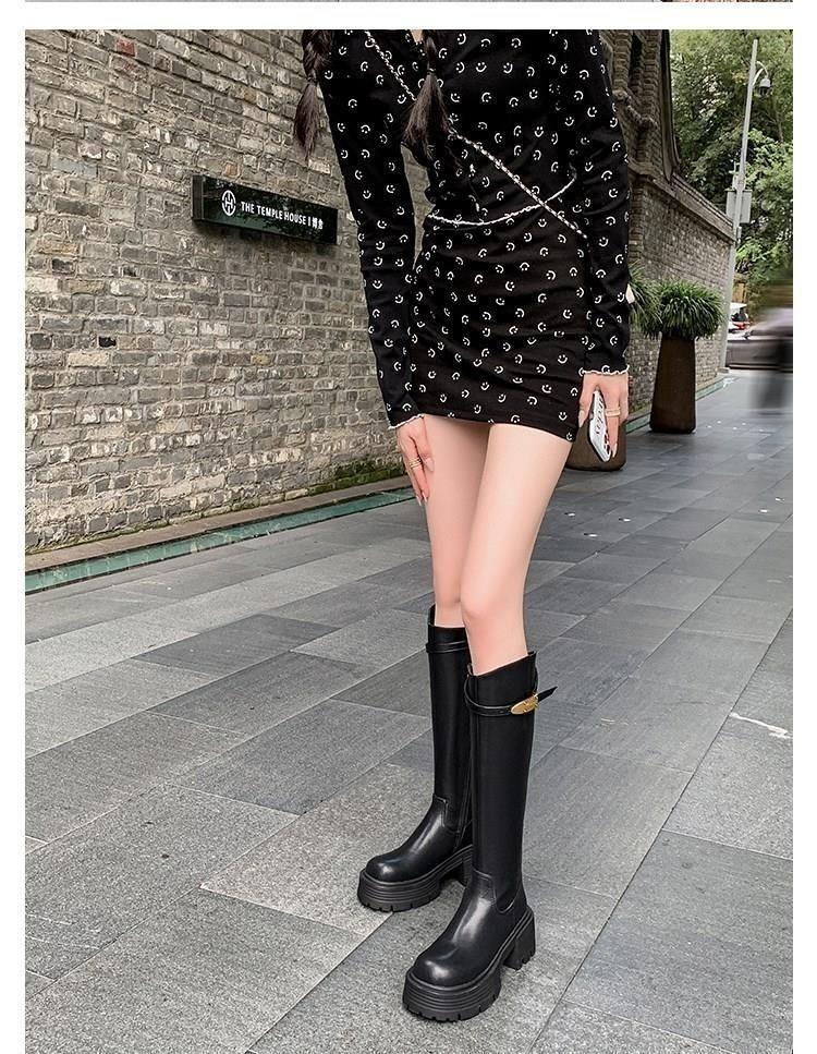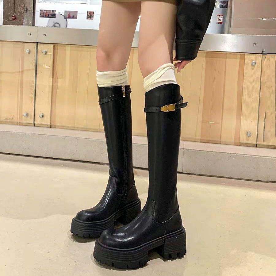 Pero Botas hasta la Rodilla Botas Skinny Elásticas Botas Altas de Caballero Suela Gruesa Aumentadas Botas Pequeñas Spice Girl para Mujer 2024