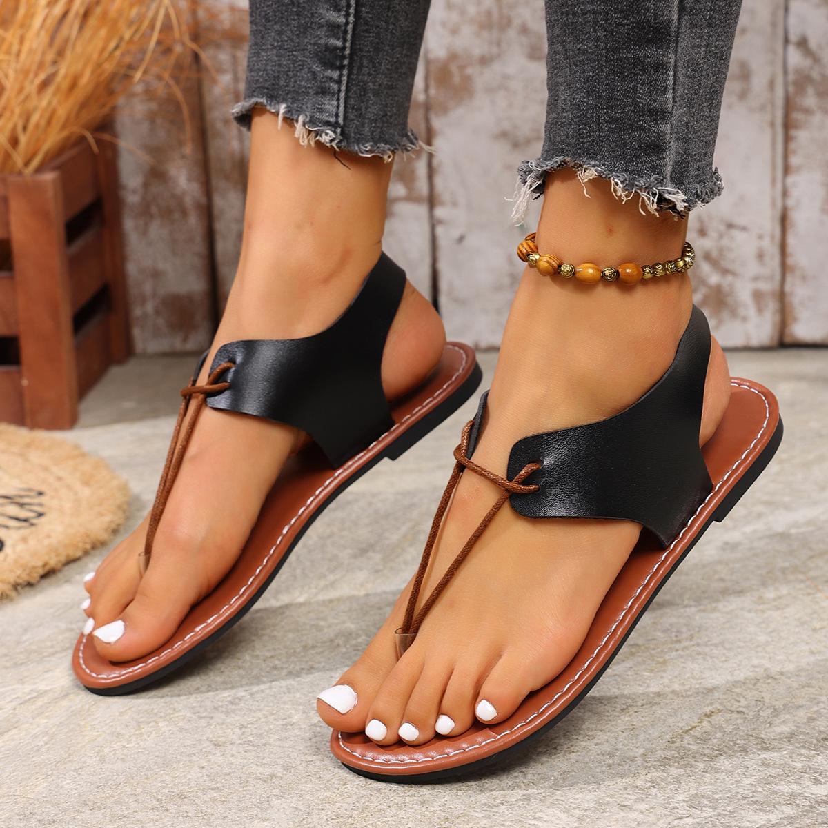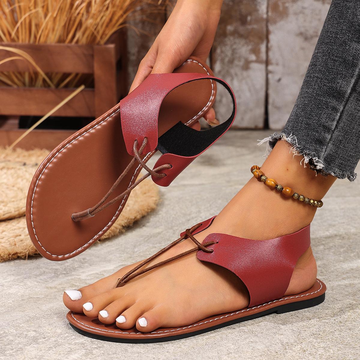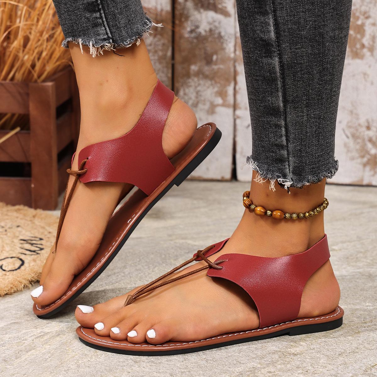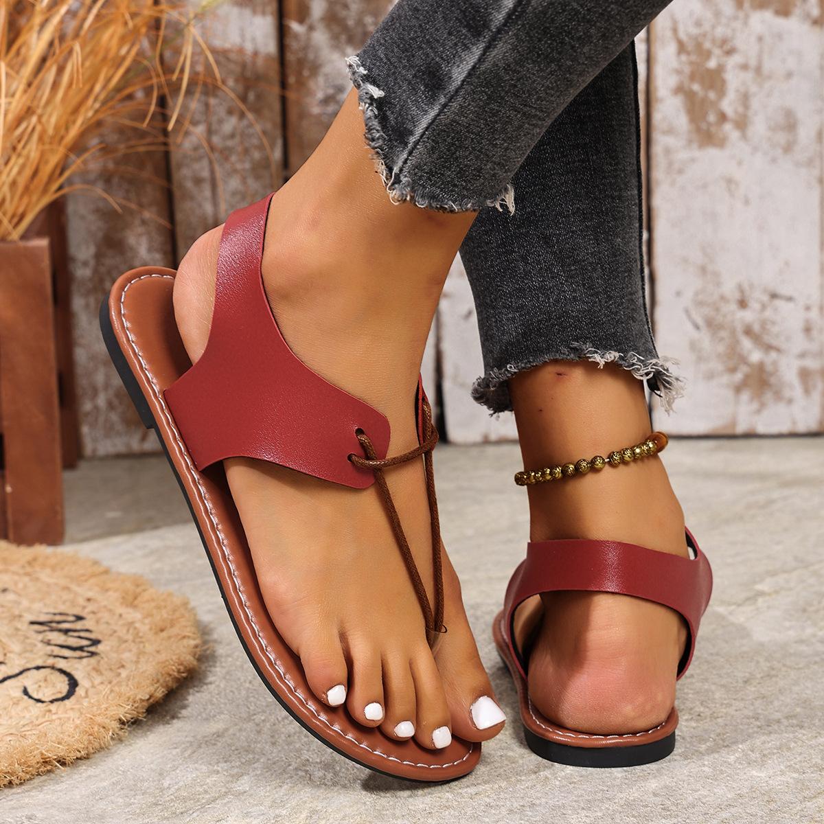 Sandalias planas de tiras finas tipo tanga de talla grande para exportación europea y americana para mujer, para uso transfronterizo, ligeras, para playa, Wishxian