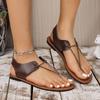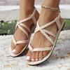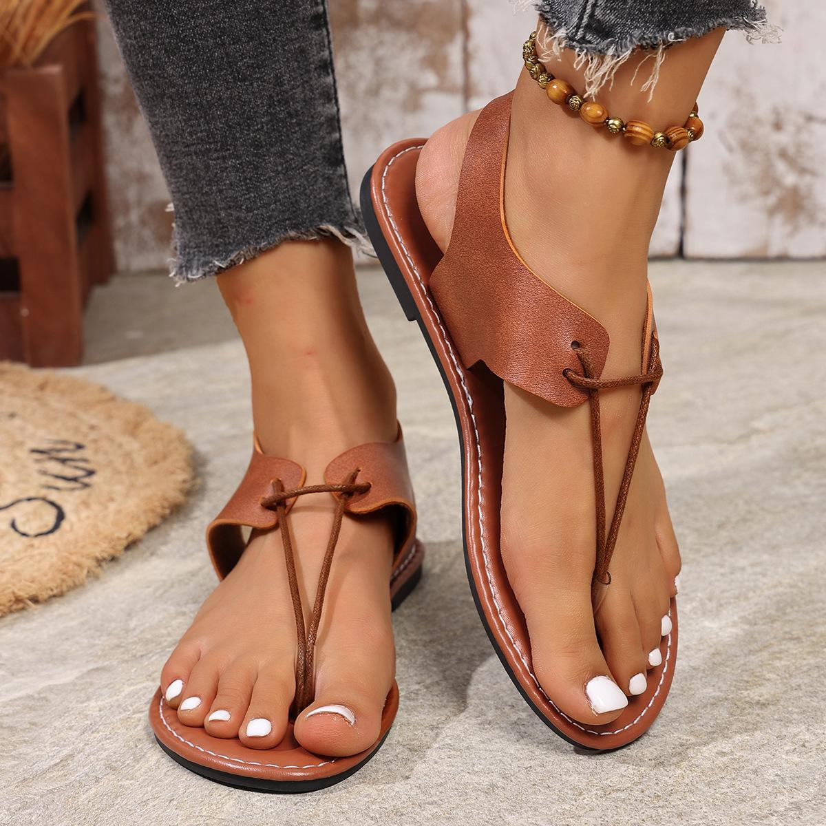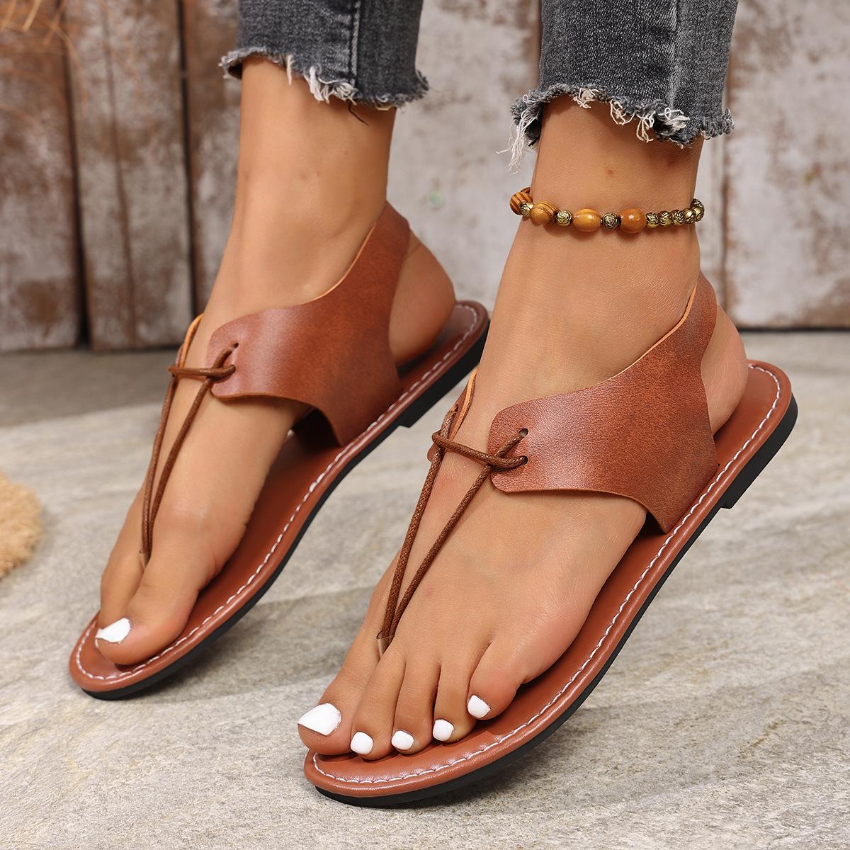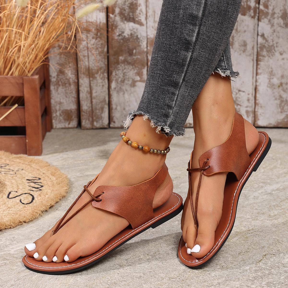 Sandalias planas de tiras finas tipo tanga de talla grande para exportación europea y americana para mujer, para uso transfronterizo, ligeras, para playa, Wishxian