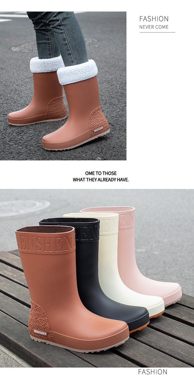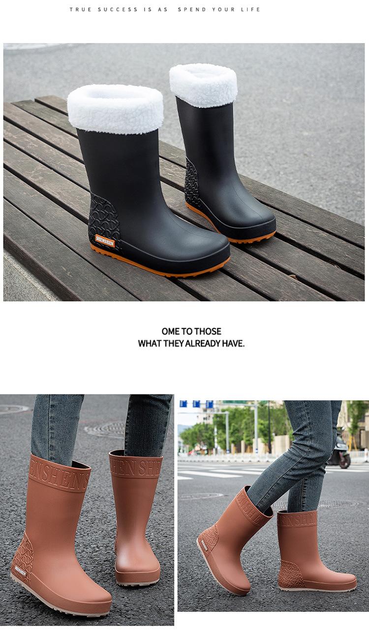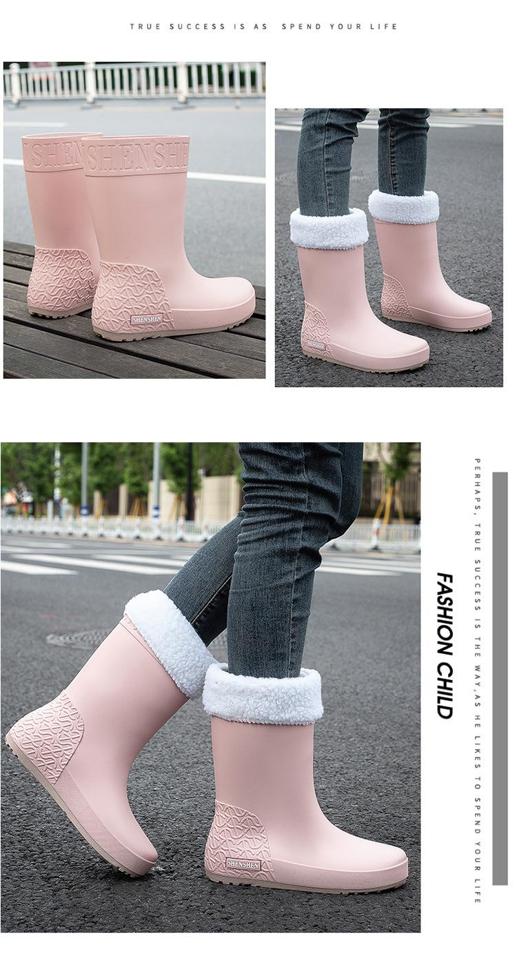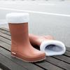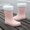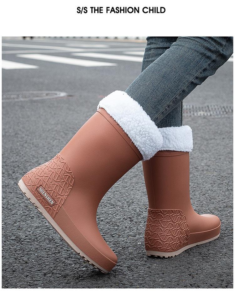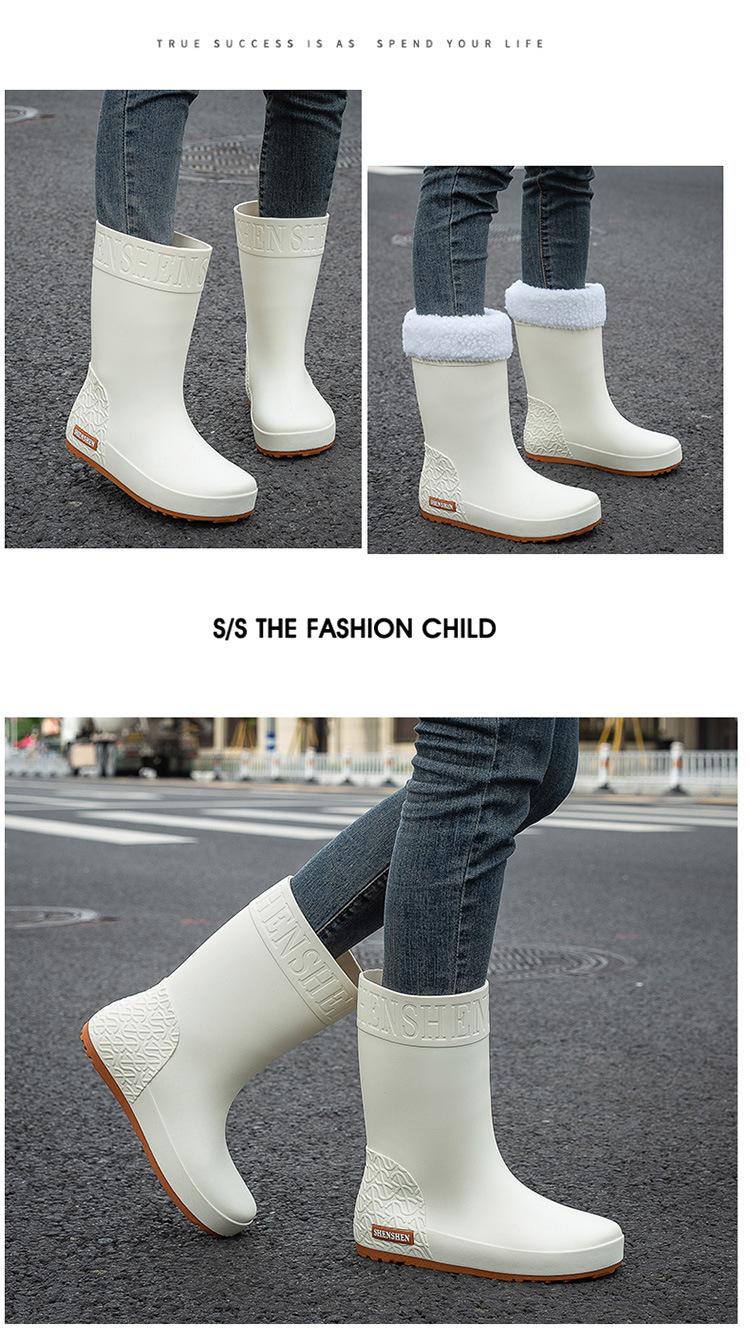 Botas de Lluvia de Moda para Mujer de Estilo Japonés con Forro Polar, Botas de Goma Integradas Impermeables Antideslizantes de Caña Alta