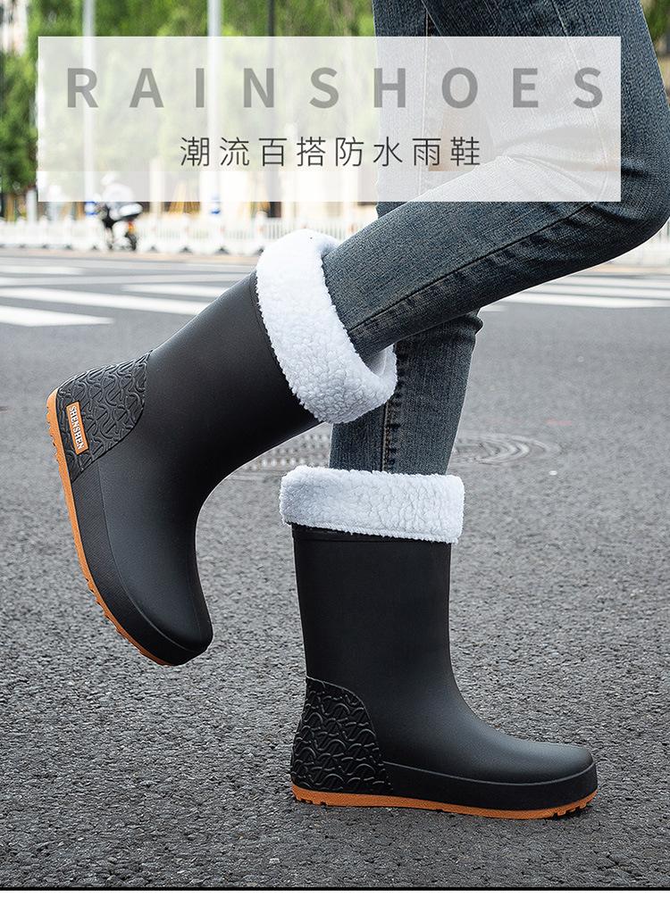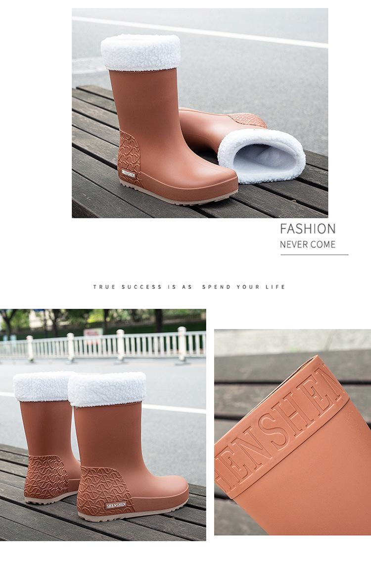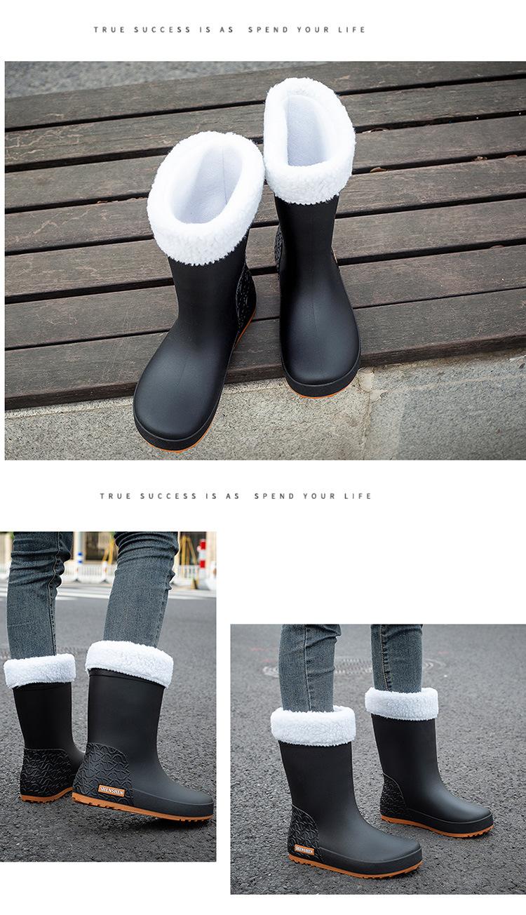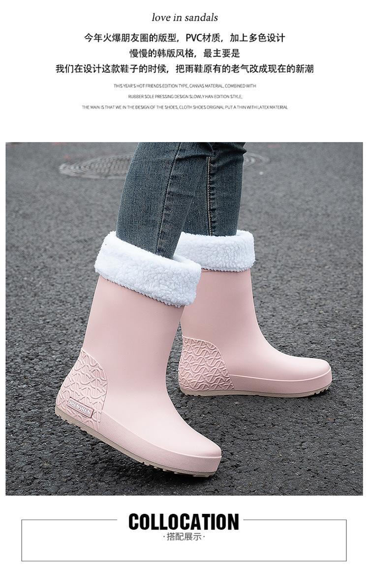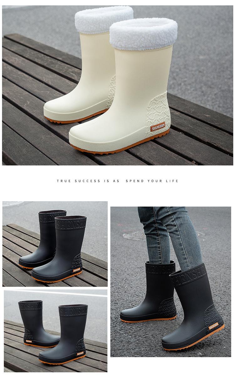 Botas de Lluvia de Moda para Mujer de Estilo Japonés con Forro Polar, Botas de Goma Integradas Impermeables Antideslizantes de Caña Alta