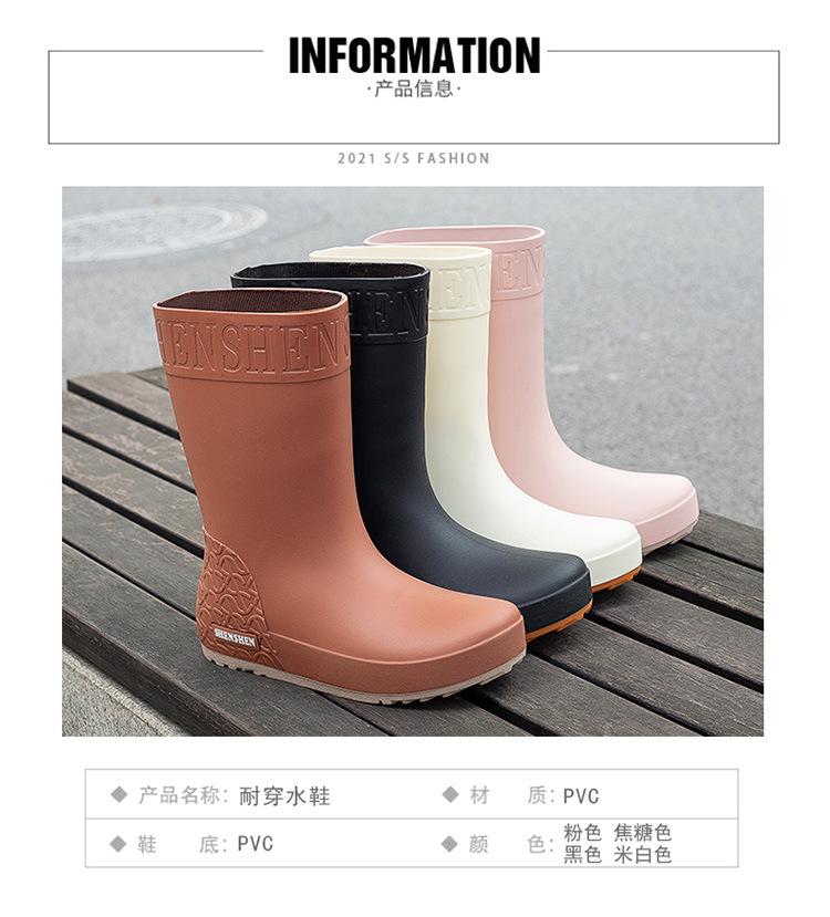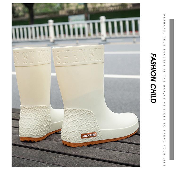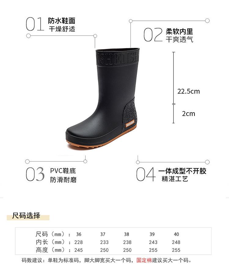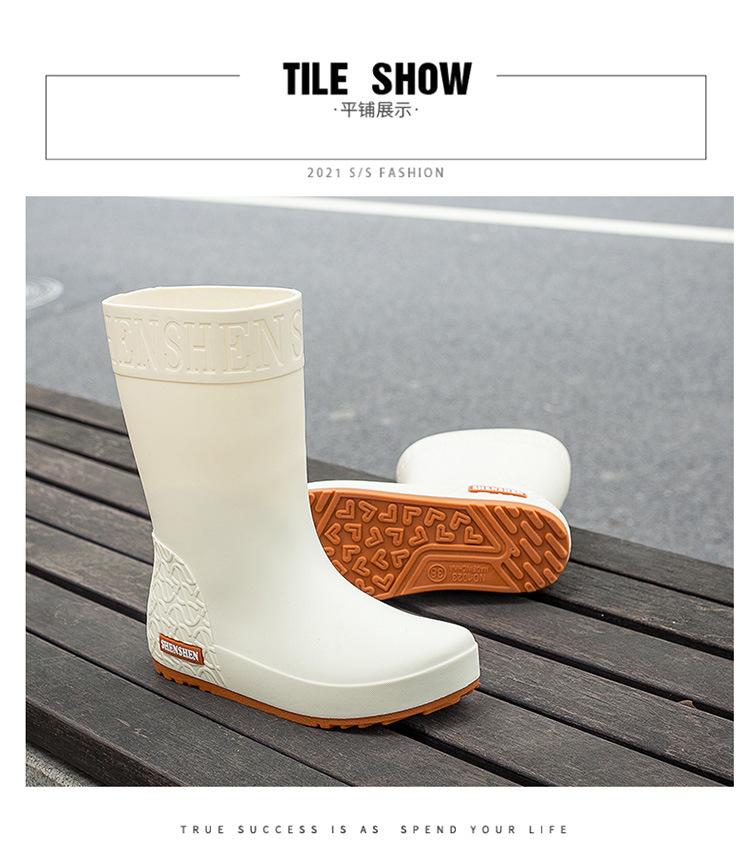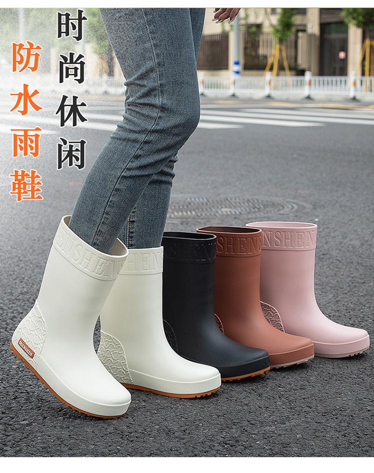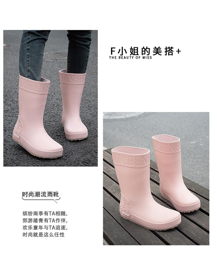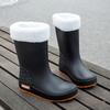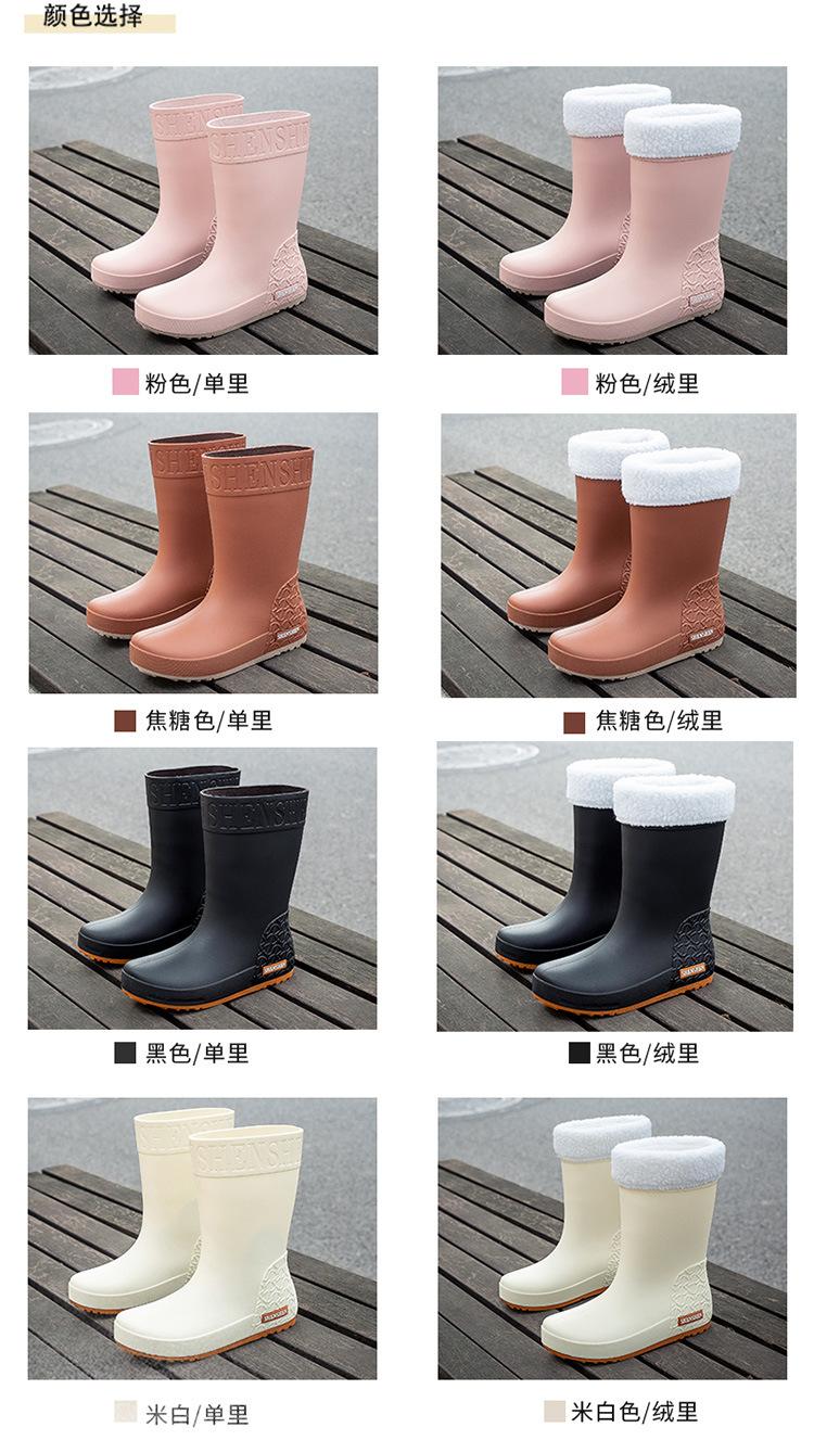 Botas de Lluvia de Moda para Mujer de Estilo Japonés con Forro Polar, Botas de Goma Integradas Impermeables Antideslizantes de Caña Alta