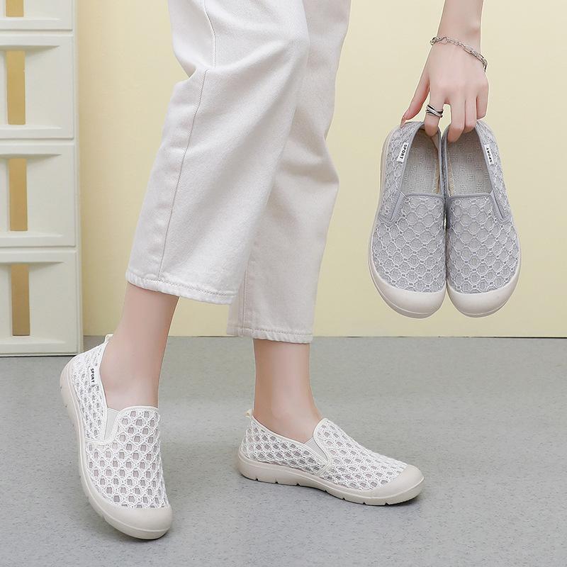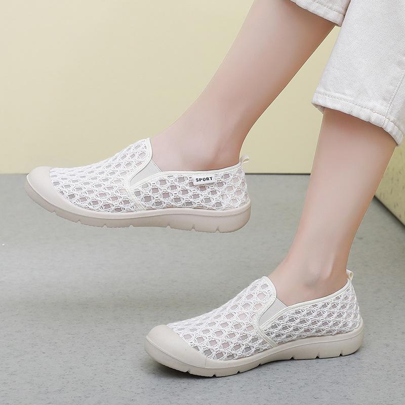 Zapatos de Pescador para Mujer 2025 Verano Nuevo Zapatos de Malla Slip-On Perezosos de Suela Gruesa Calados Transpirables Ligeros Zapatos Planos Casuales