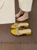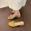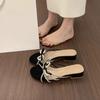 Pantuflas de Punta Descubierta con Lazo de Perlas Estilo Hada y Pedrería para Mujer, Sandalias de Verano de Tacón Bajo