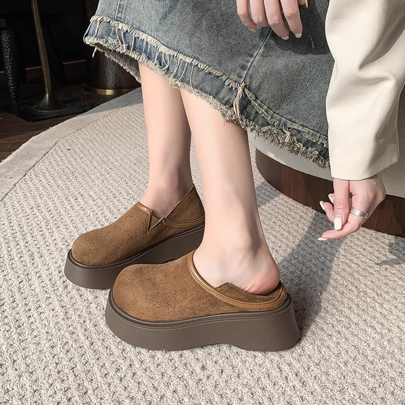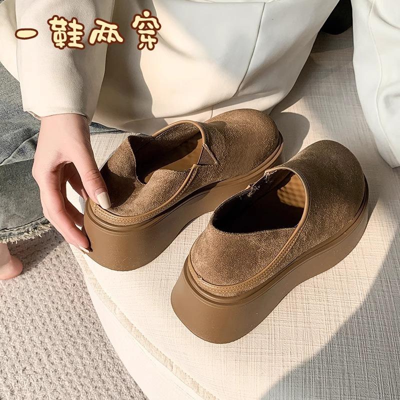 Zapatos Birkenstock de Estilo Popular para Mujer 2025 Primavera y Verano Nuevos Mocasines Retro de Suela Gruesa para Aumentar la Altura Plataforma Zapatos de Dos Usos