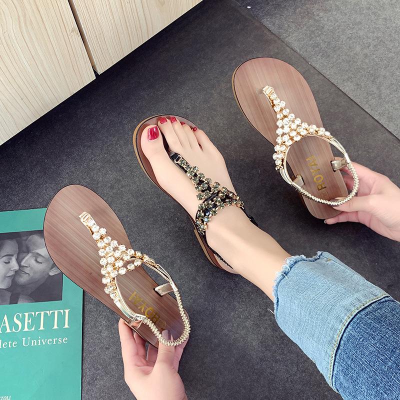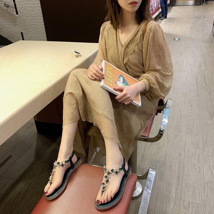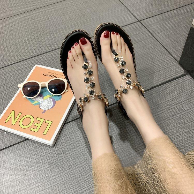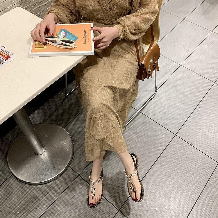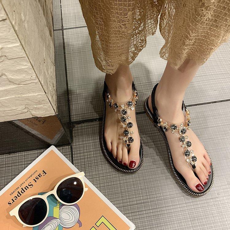 Sandalias de celebridad de internet para mujer Verano Nuevo estilo de hadas Versátil Fondo plano Estudiante Chancla Zapatos de mujer Orilla del mar Antideslizante Zapatos de playa