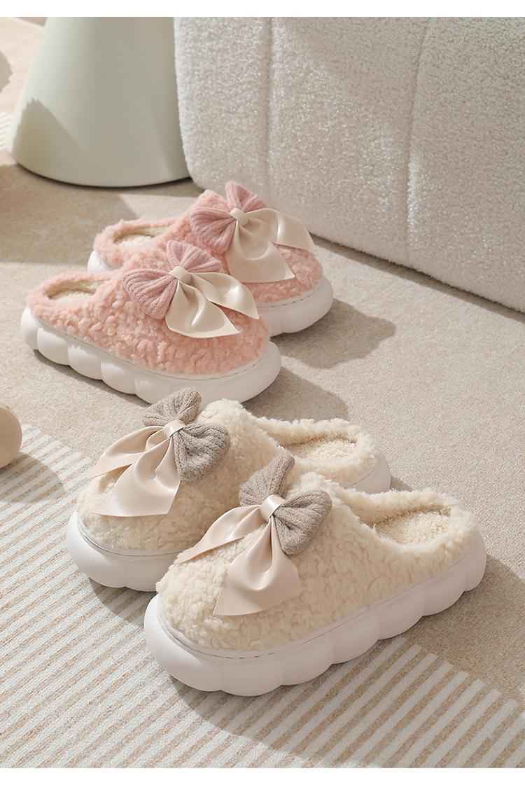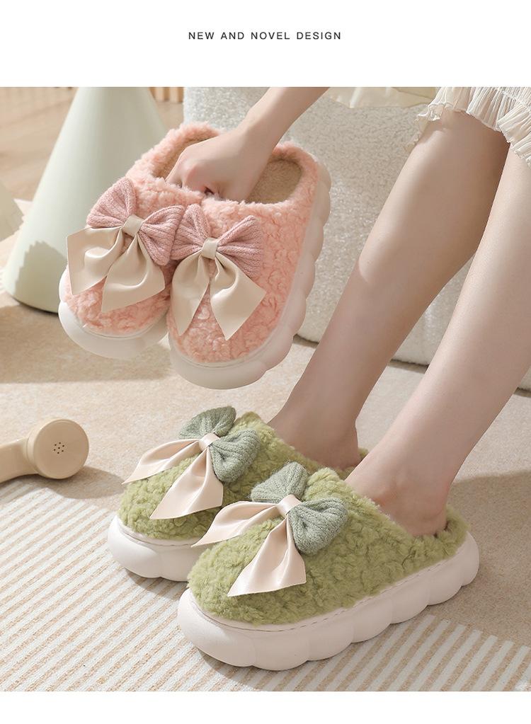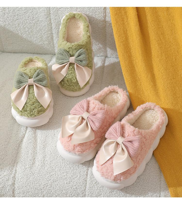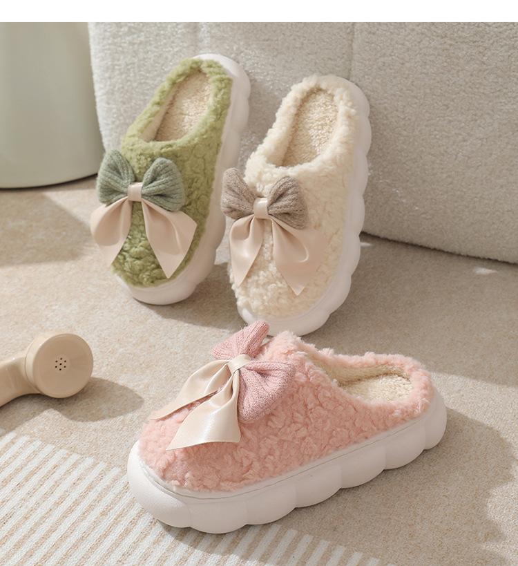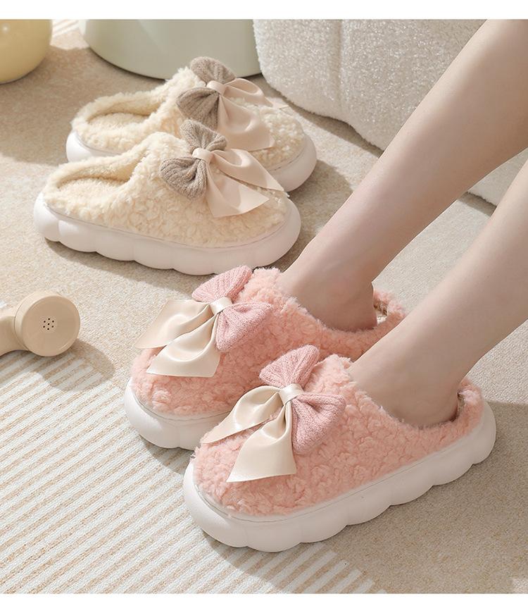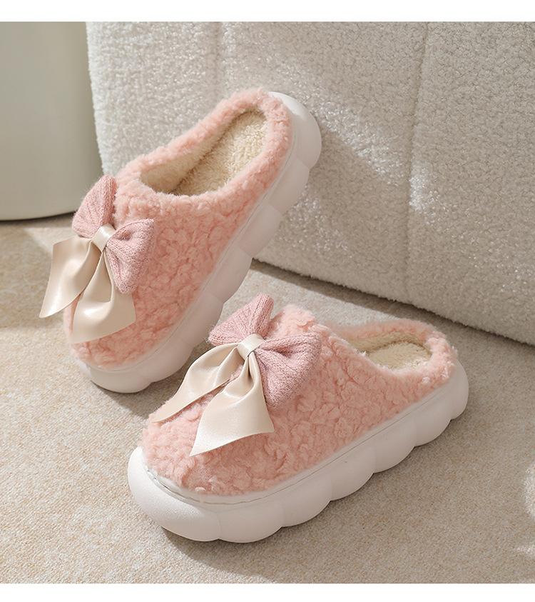 Zapatillas de Algodón con Lazo de Princesa para Escapar Corazón de Niña Antideslizantes Engrosadas para Pareja Impermeables para Casa Suela Gruesa Felpa Cálidas