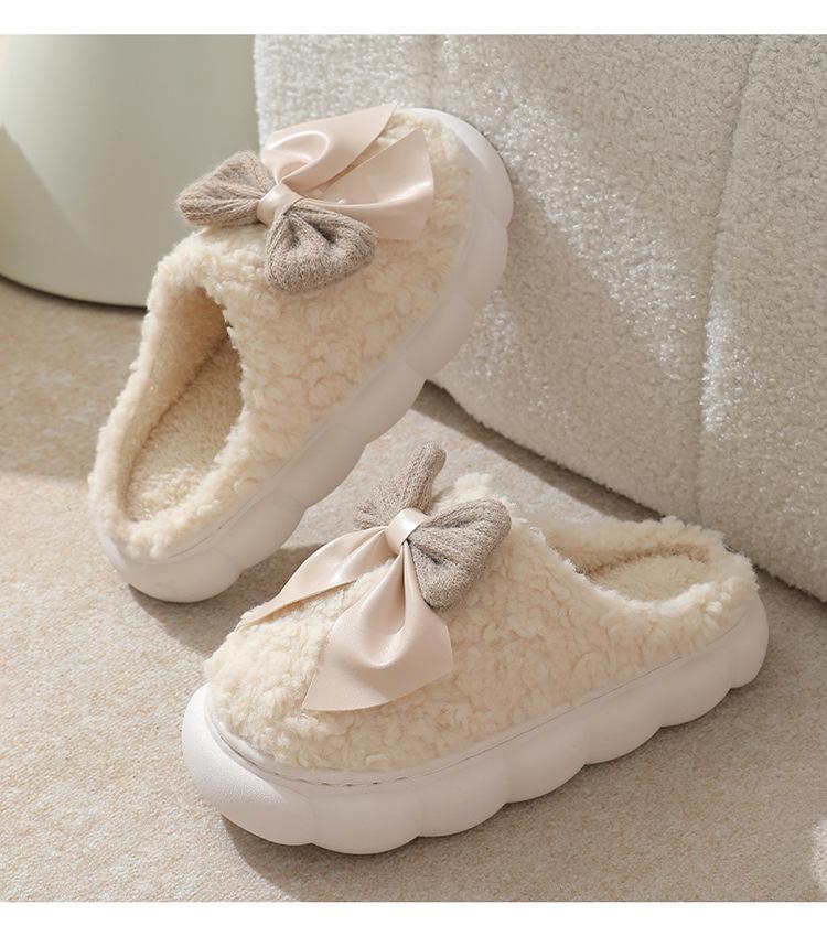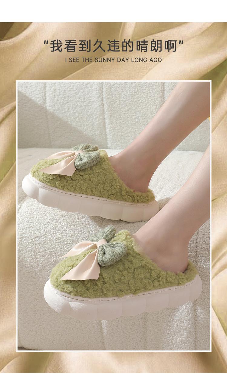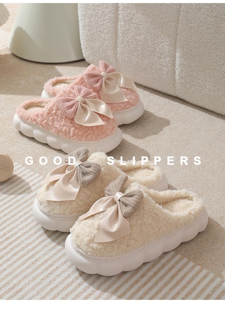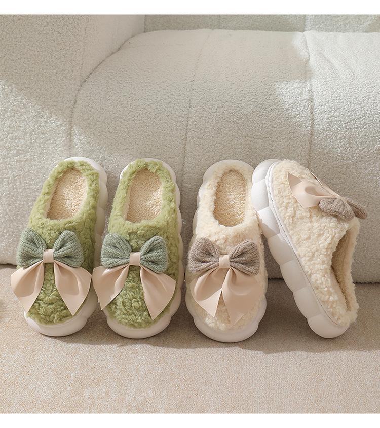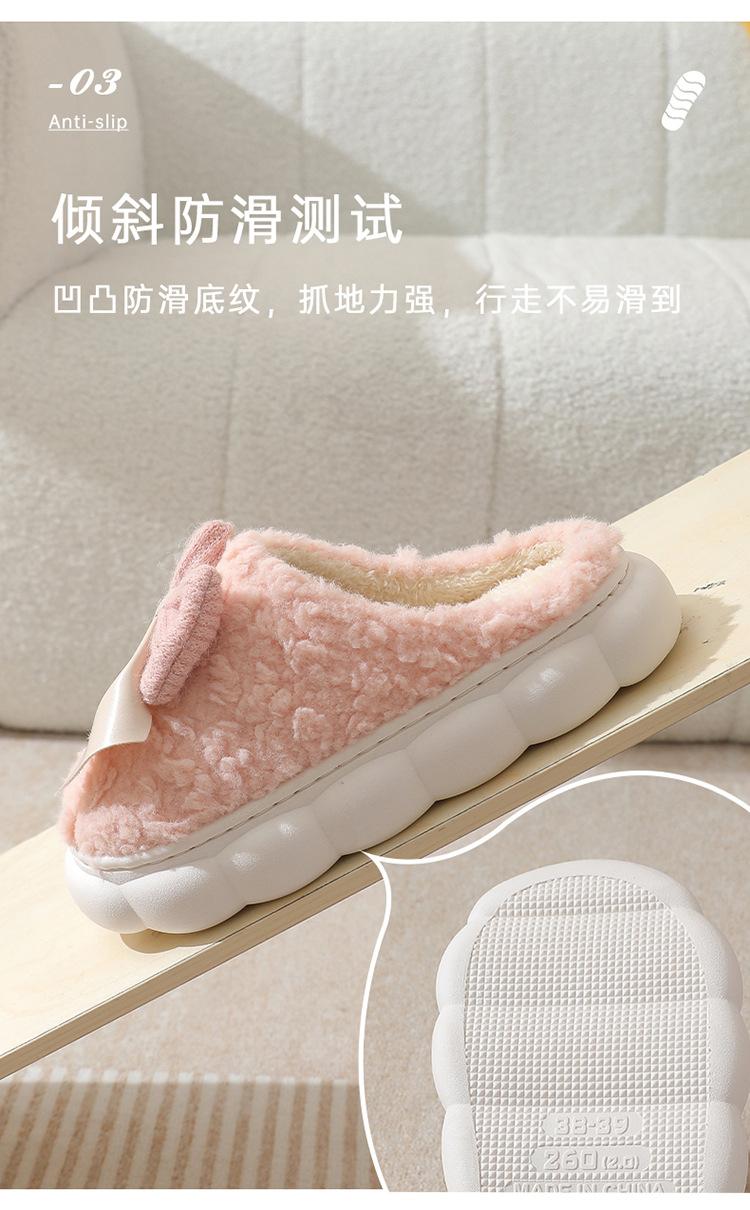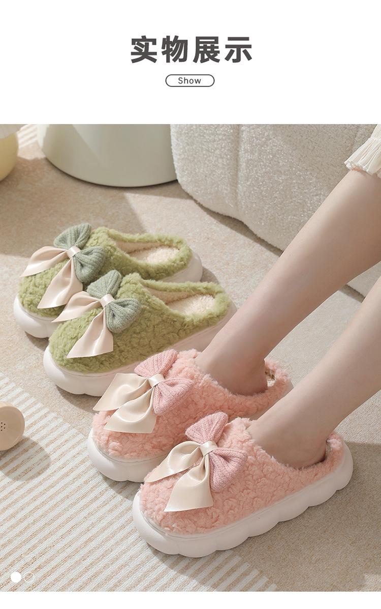 Zapatillas de Algodón con Lazo de Princesa para Escapar Corazón de Niña Antideslizantes Engrosadas para Pareja Impermeables para Casa Suela Gruesa Felpa Cálidas