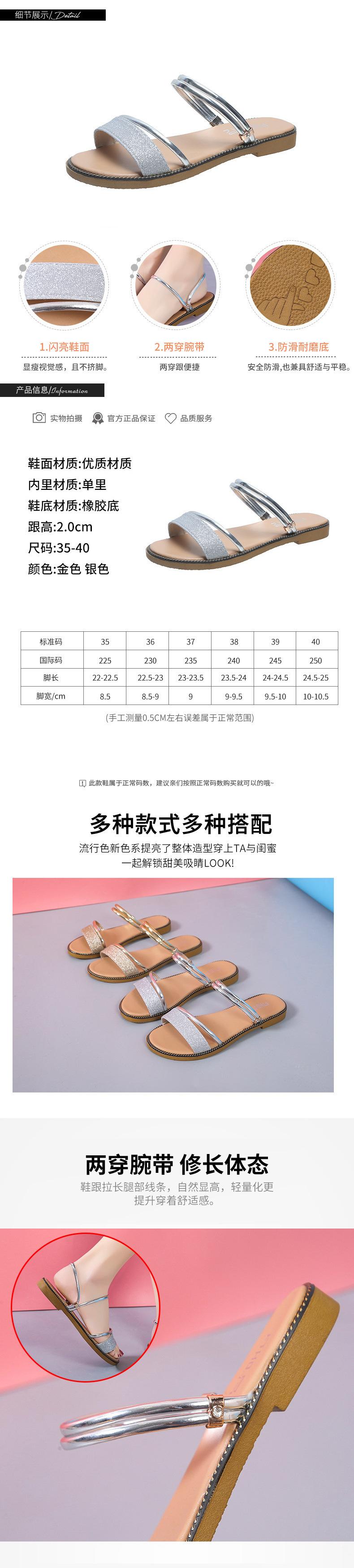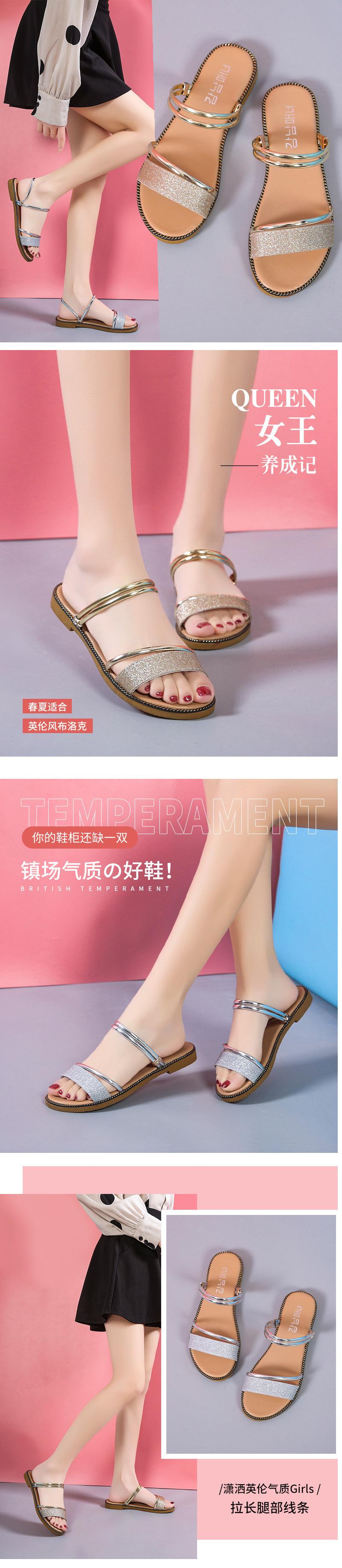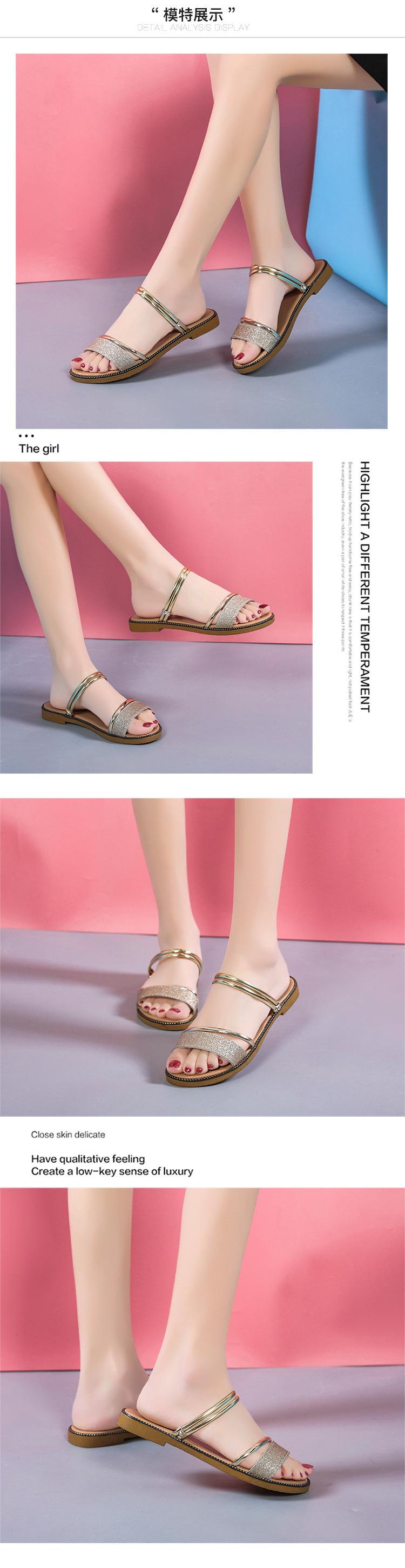 Sandalias de Moda de Dos Vías Nuevo Verano Celebridad de Internet Versátil Pedrería Elegante Plano Exterior Zapatos de Mujer Antideslizantes Estilo Coreano Playa