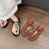 Sandalias Casuales de Estilo Casual con Tanga para Mujer Verano 2025 Nueva Moda Retro para Exterior Chanclas Zapatillas de Tacón Bajo