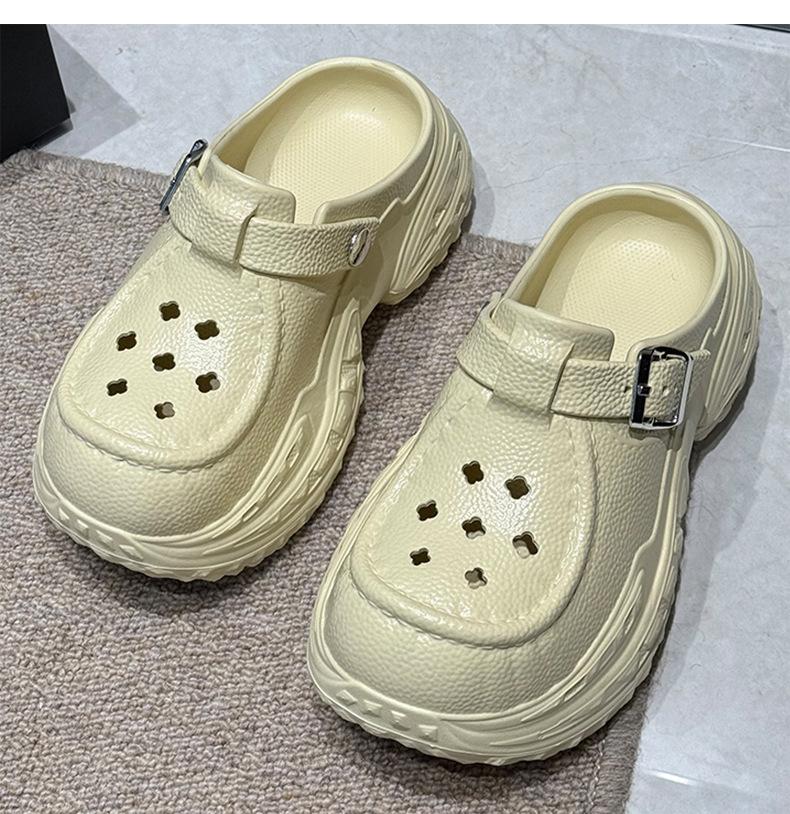 Zapatos Croc para Mujer Verano Ropa Exterior Antideslizante 2025 Nuevo Eva Desodorante Pantuflas de Suela Gruesa Baotou Playa Sandalias Transpirables