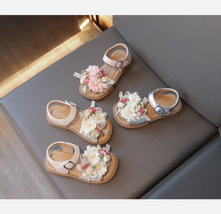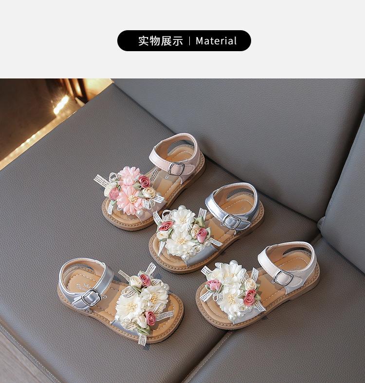 Sandalias para Niñas 2025 Verano Nueva Moda Flor Suela Suave Sandalias para Niños Niñitas Versátiles Zapatos de Playa para Niños Medianos