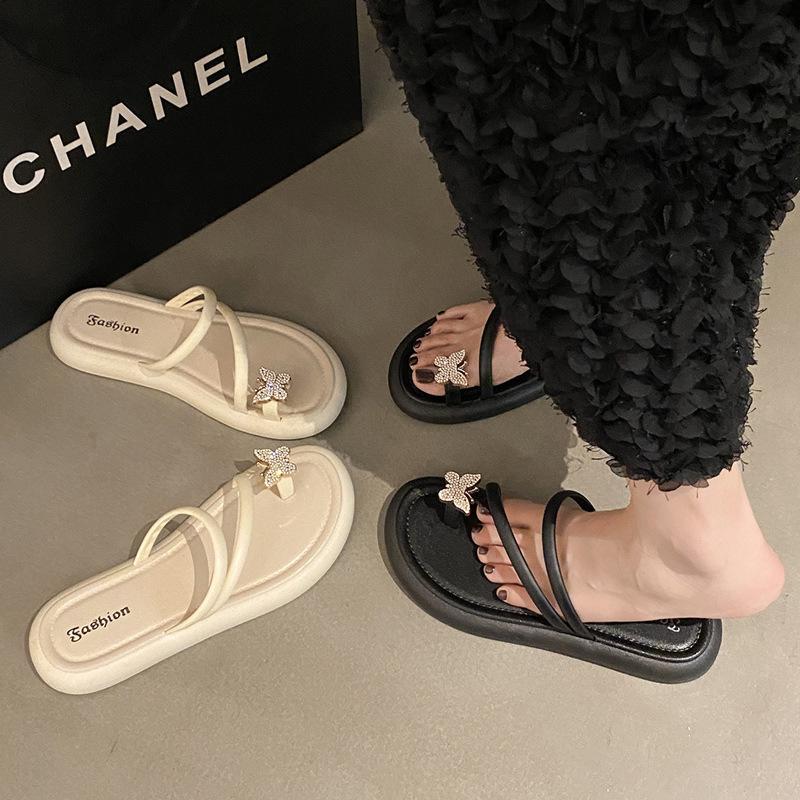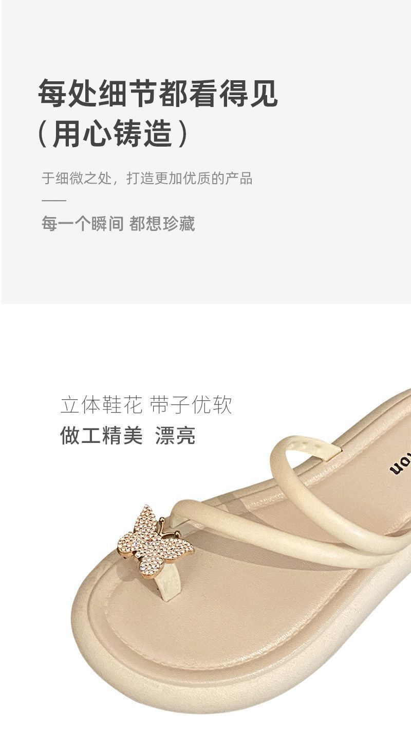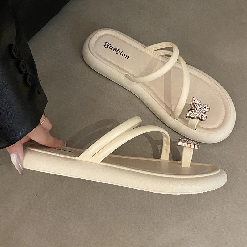 Sandalias Slip-On de Mariposa para Ropa Exterior de Mujer 2024 Nuevo Verano Versátiles Planas Vacacionales Casual Playa Chanclas