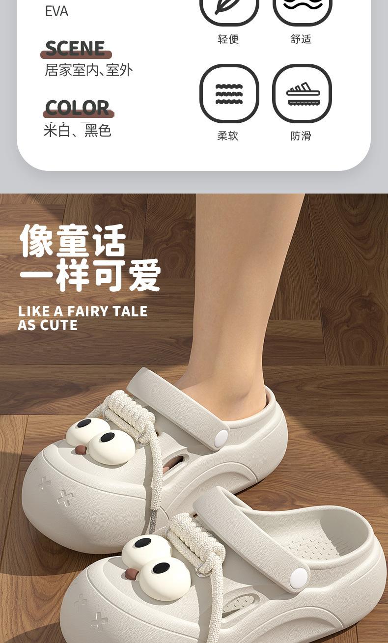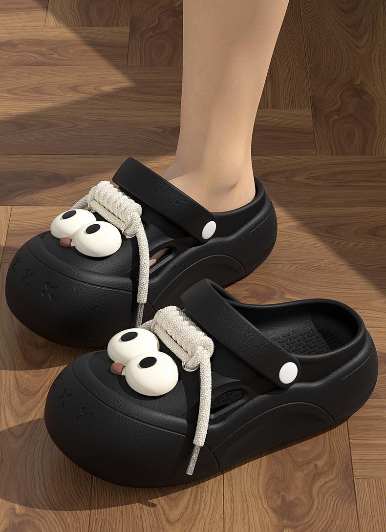 Zapatos Croc para Mujer Verano Ropa Exterior Antideslizante Lindo Ojos Grandes Suela Gruesa Puntera Playa Sandalias y Zapatillas de Dos Usos