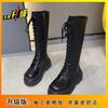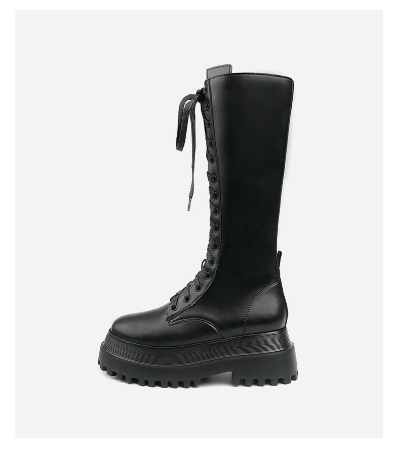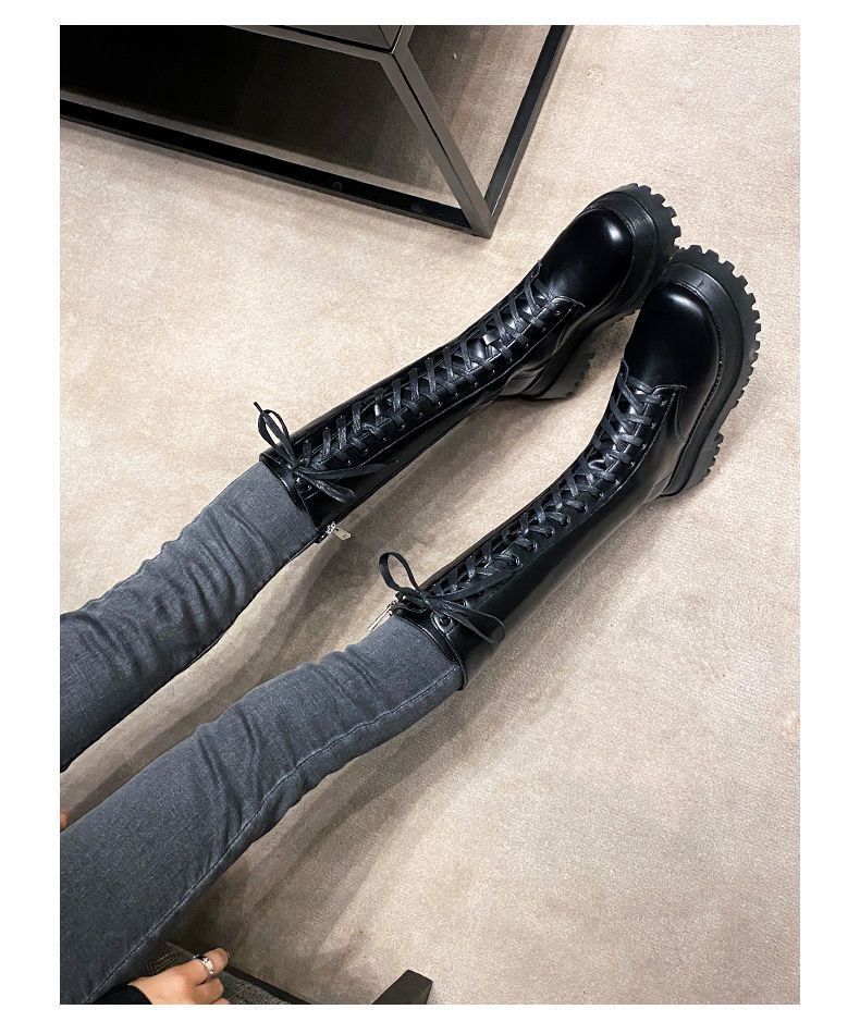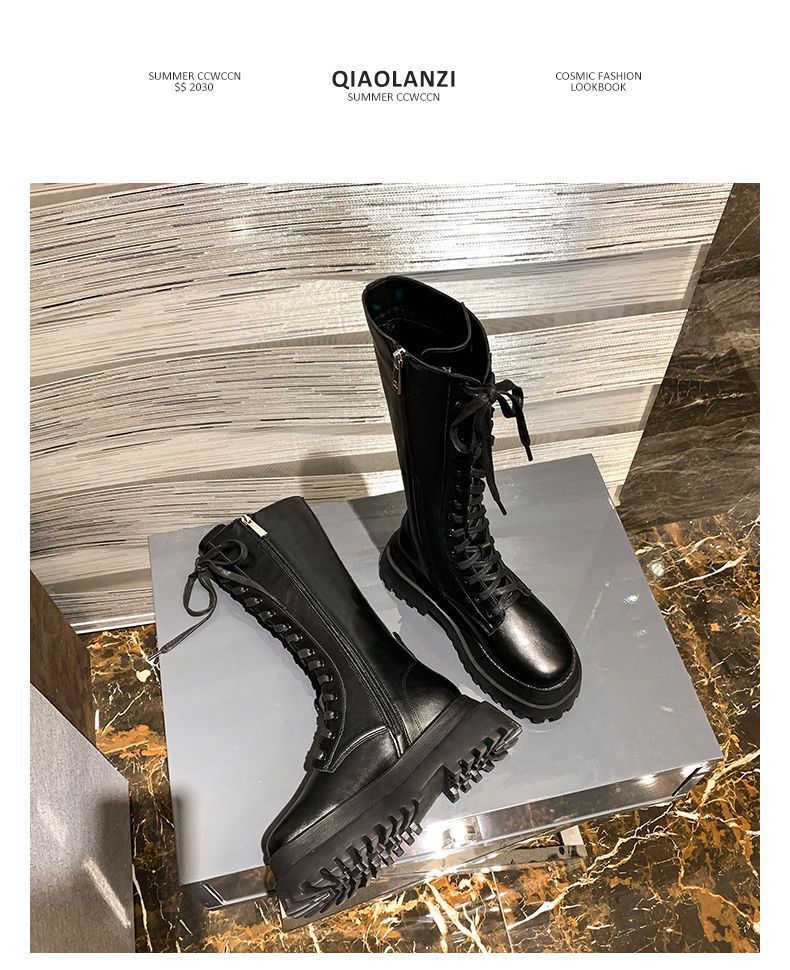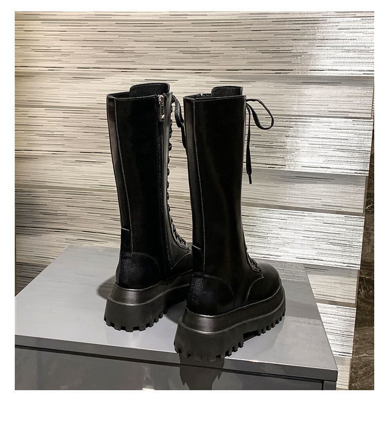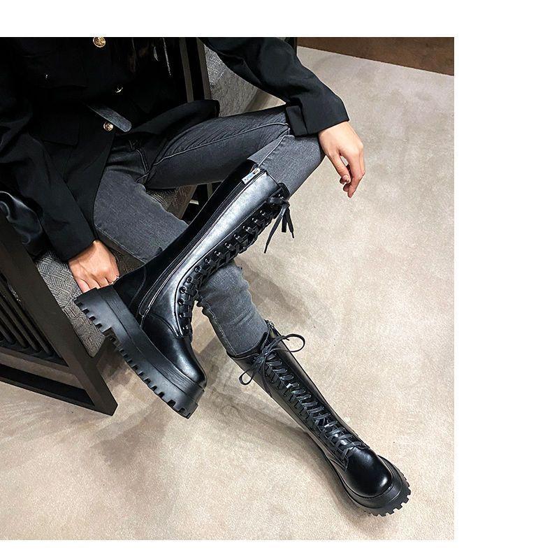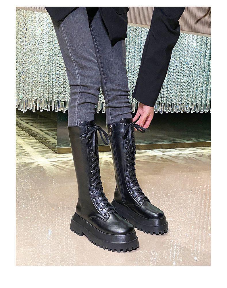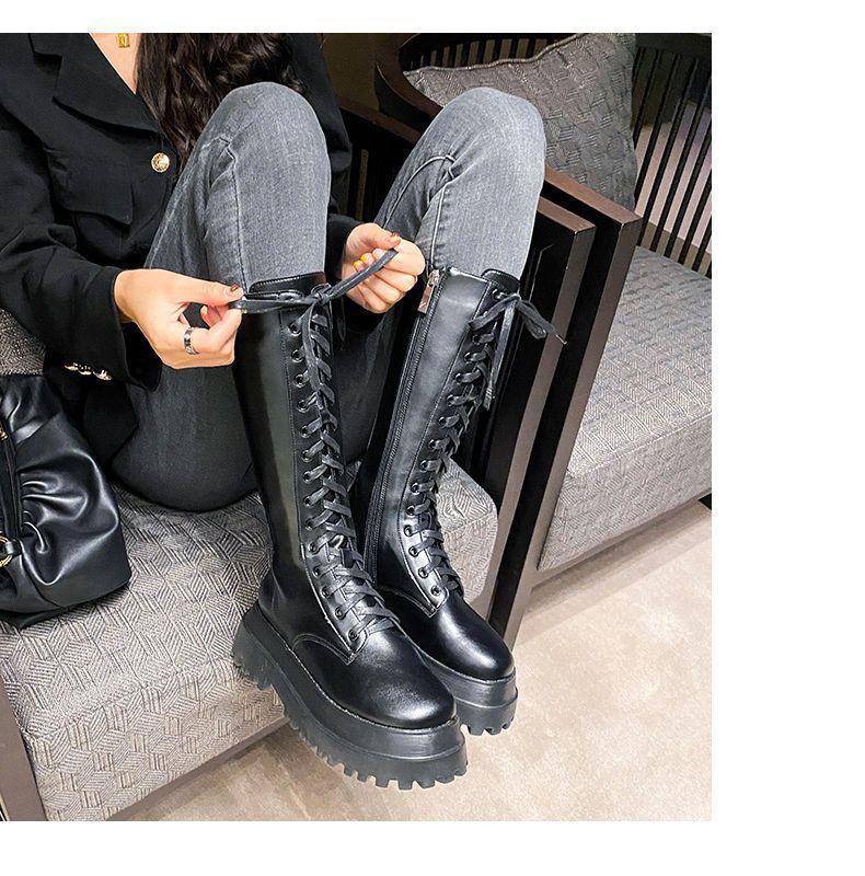 Botas Martin de suela gruesa para mujer, nuevas botas de plataforma hasta la rodilla con forro polar y cordones de caña alta para invierno de 2023.