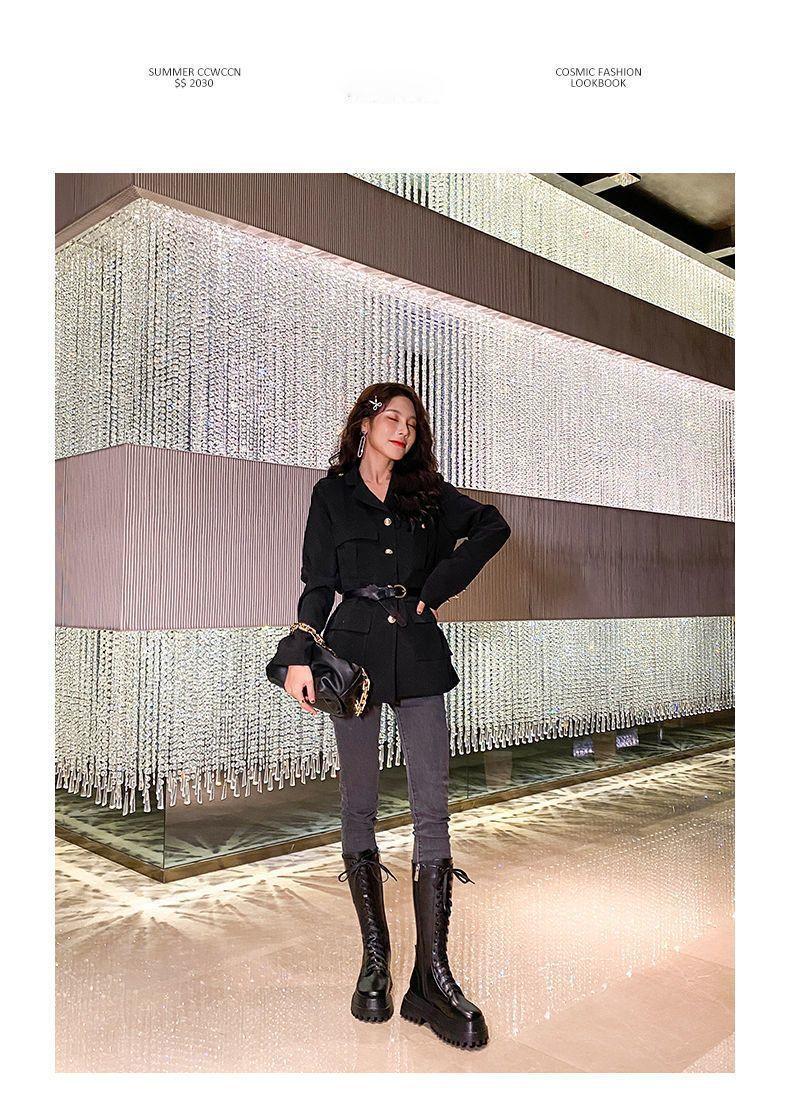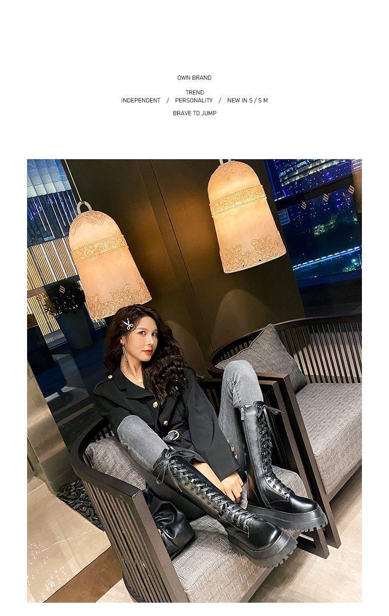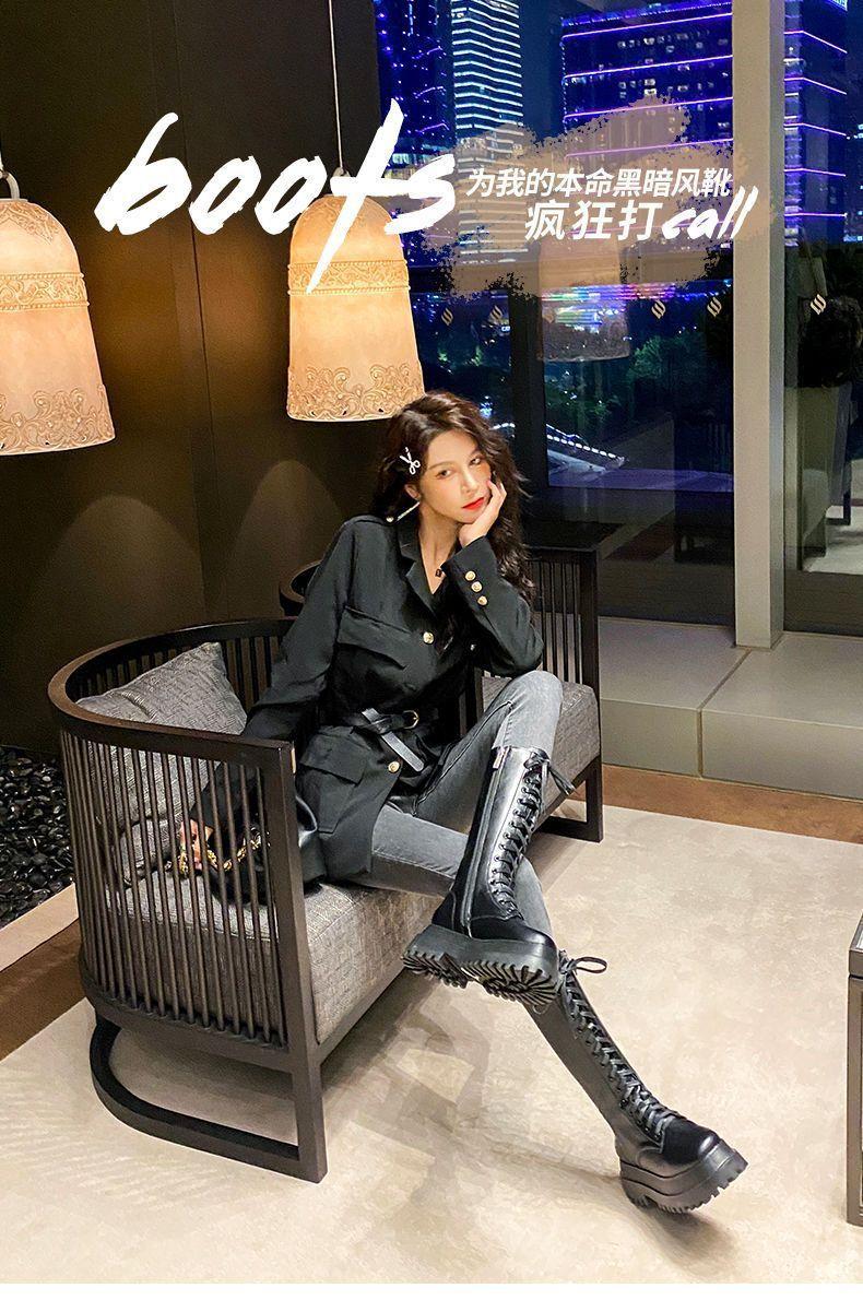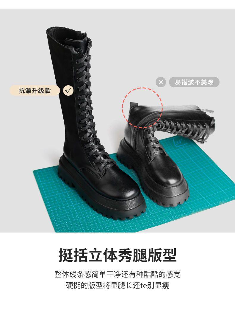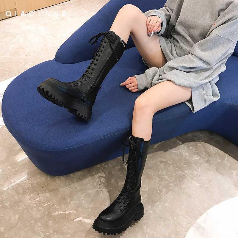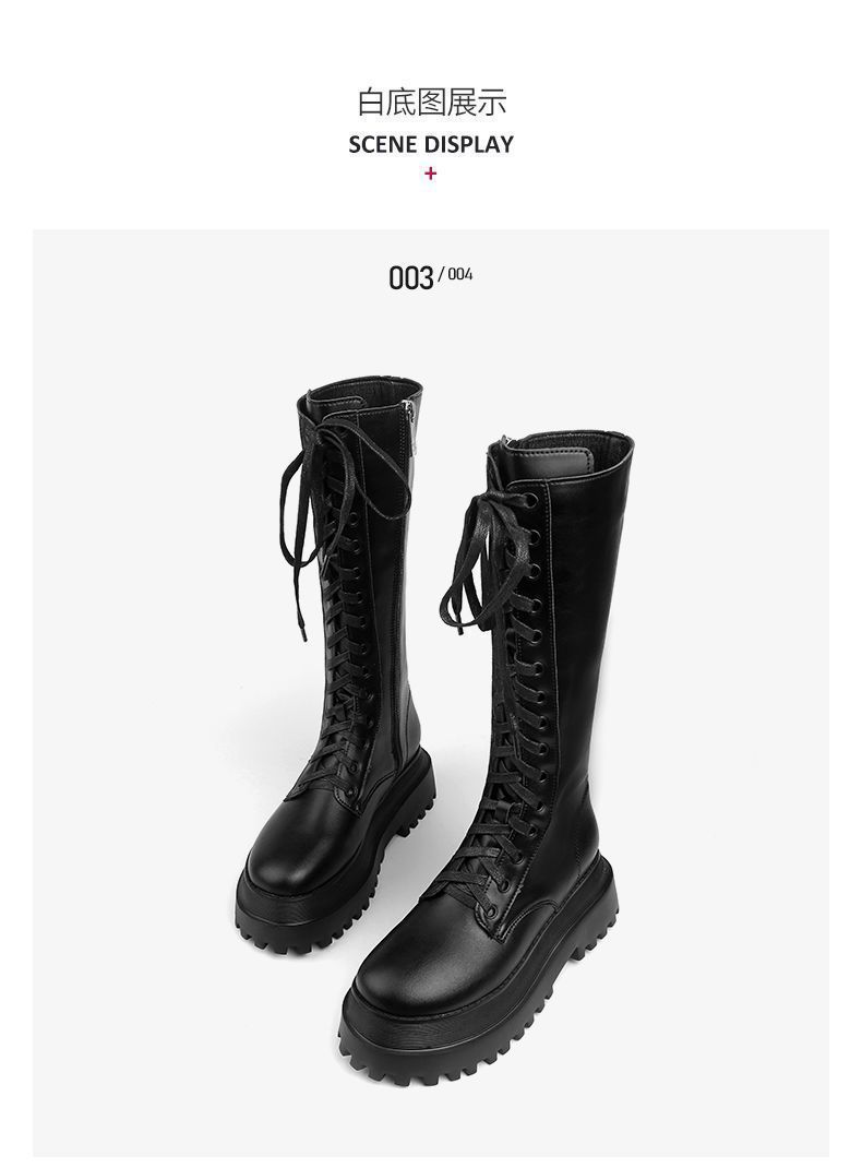 Botas Martin de suela gruesa para mujer, nuevas botas de plataforma hasta la rodilla con forro polar y cordones de caña alta para invierno de 2023.