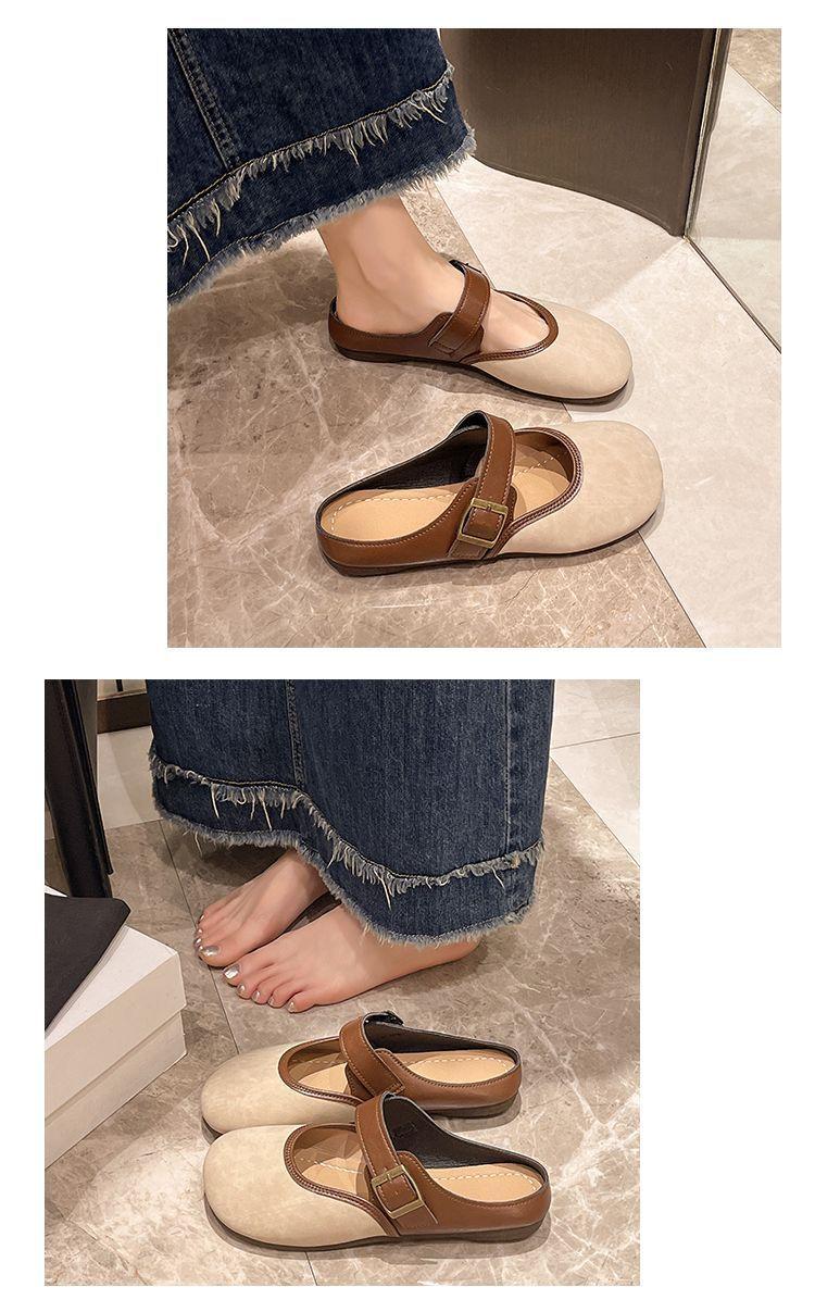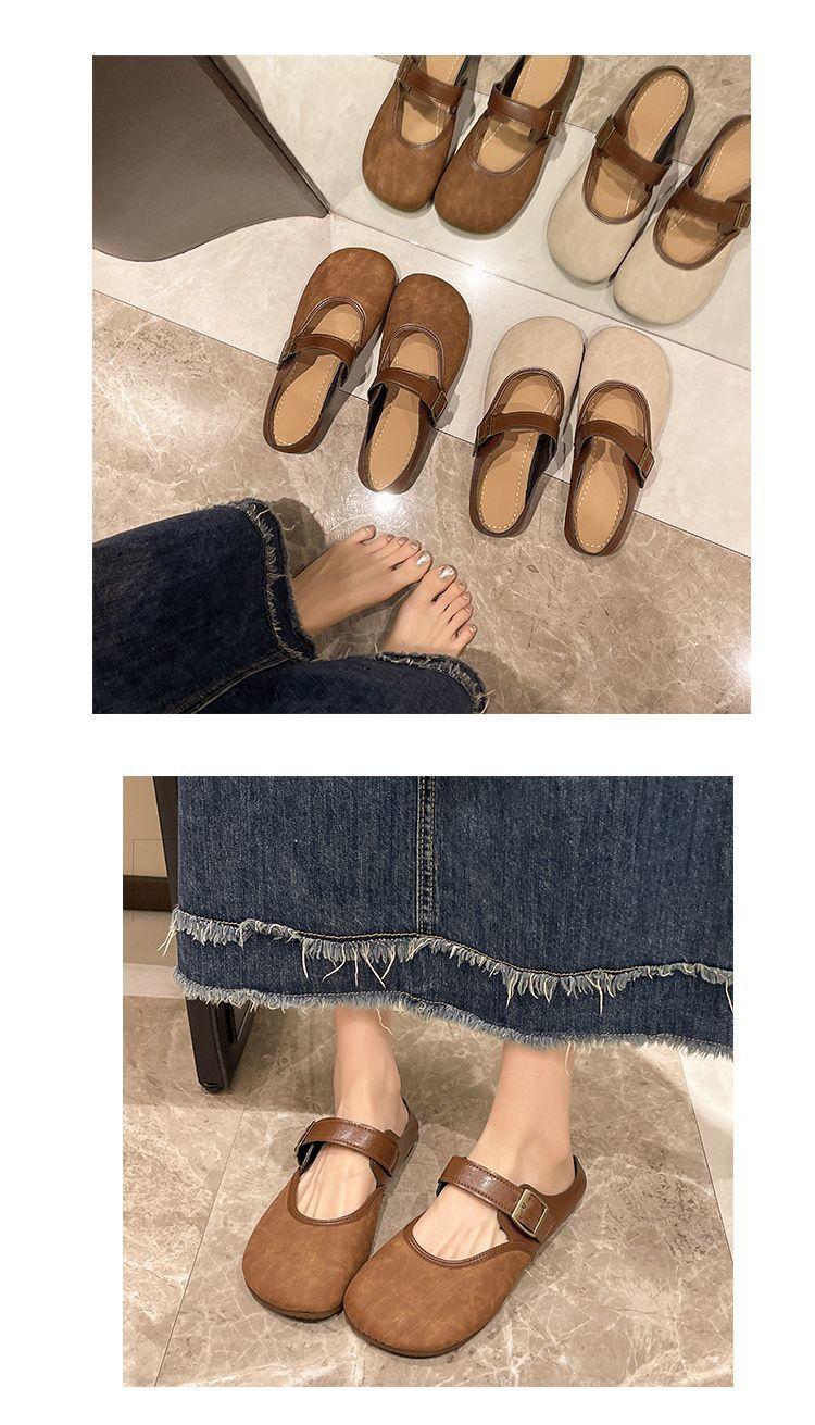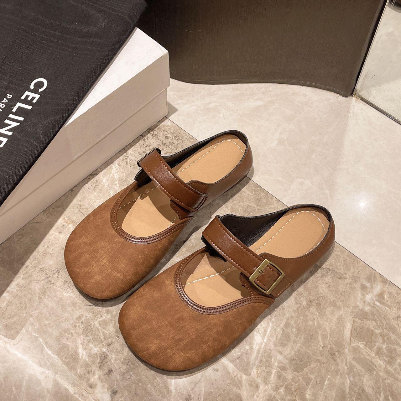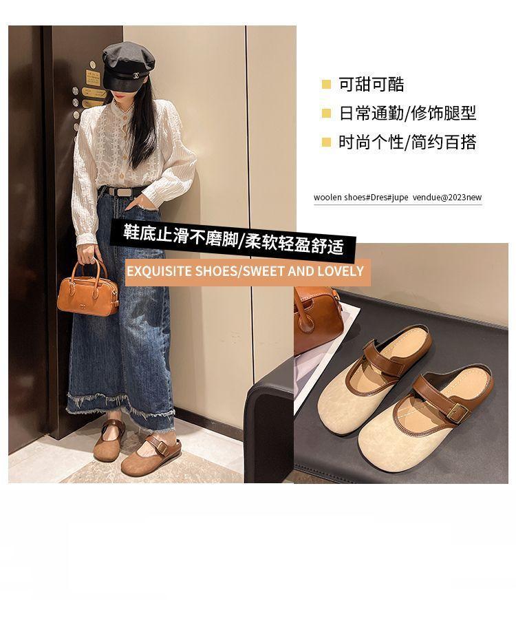 Pantuflas Retro Francesas Ligeras de Estilo Simple 2025 Verano Nuevo Baotou para Uso Exterior Zapatos Perezosos para Mujer
