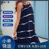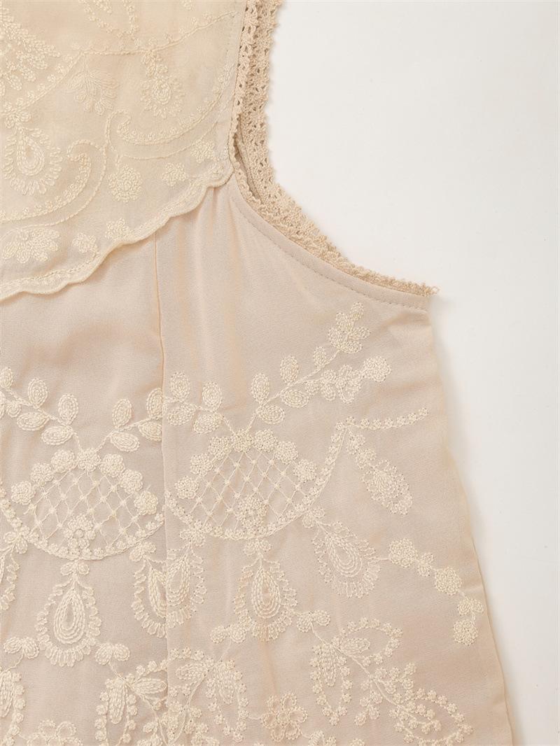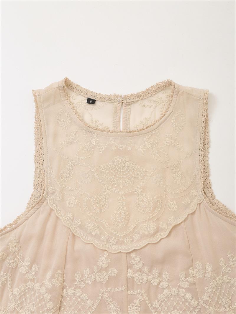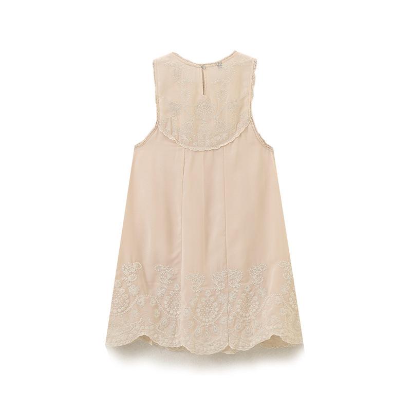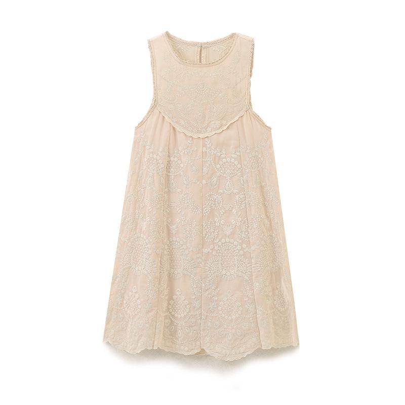 Vestido Casual de Verano sin Mangas con Cuello Redondo Bordado Drapeado para Mujer Estilo Europeo y Americano Personalidad Transfronteriza Falda Simple de Color Sólido