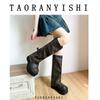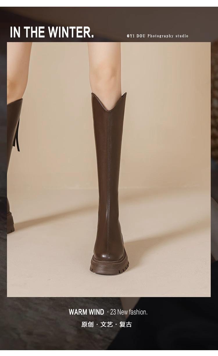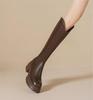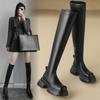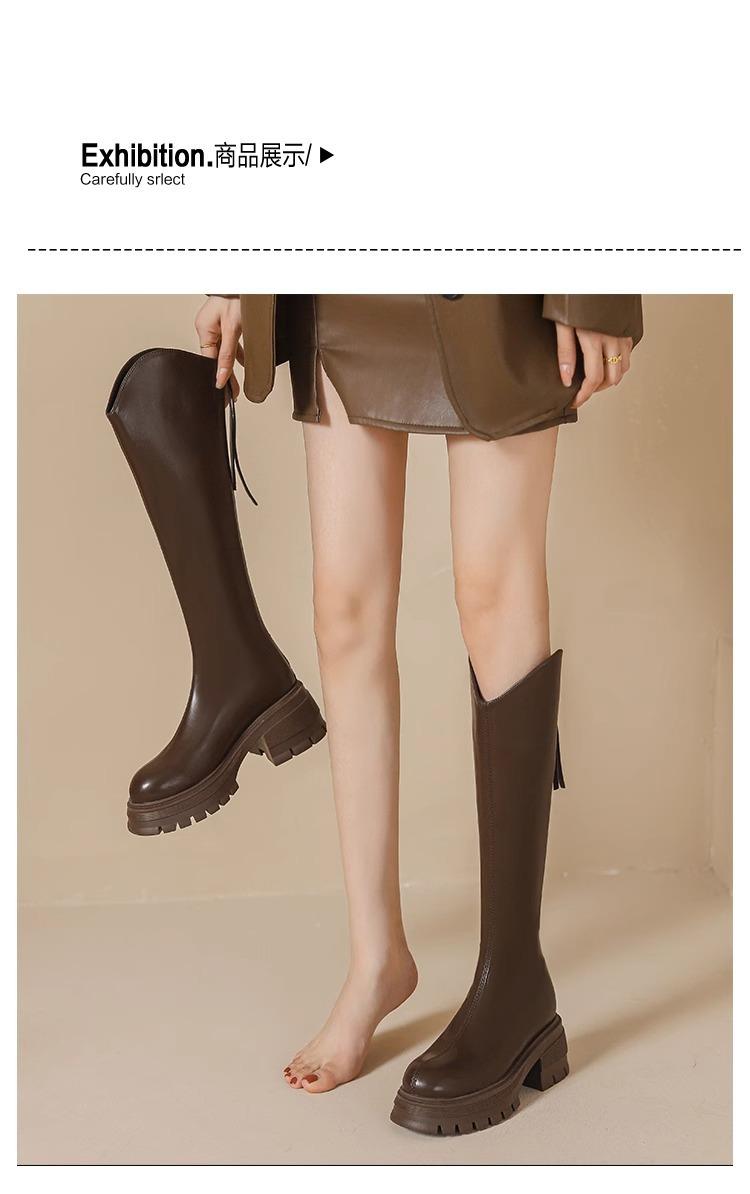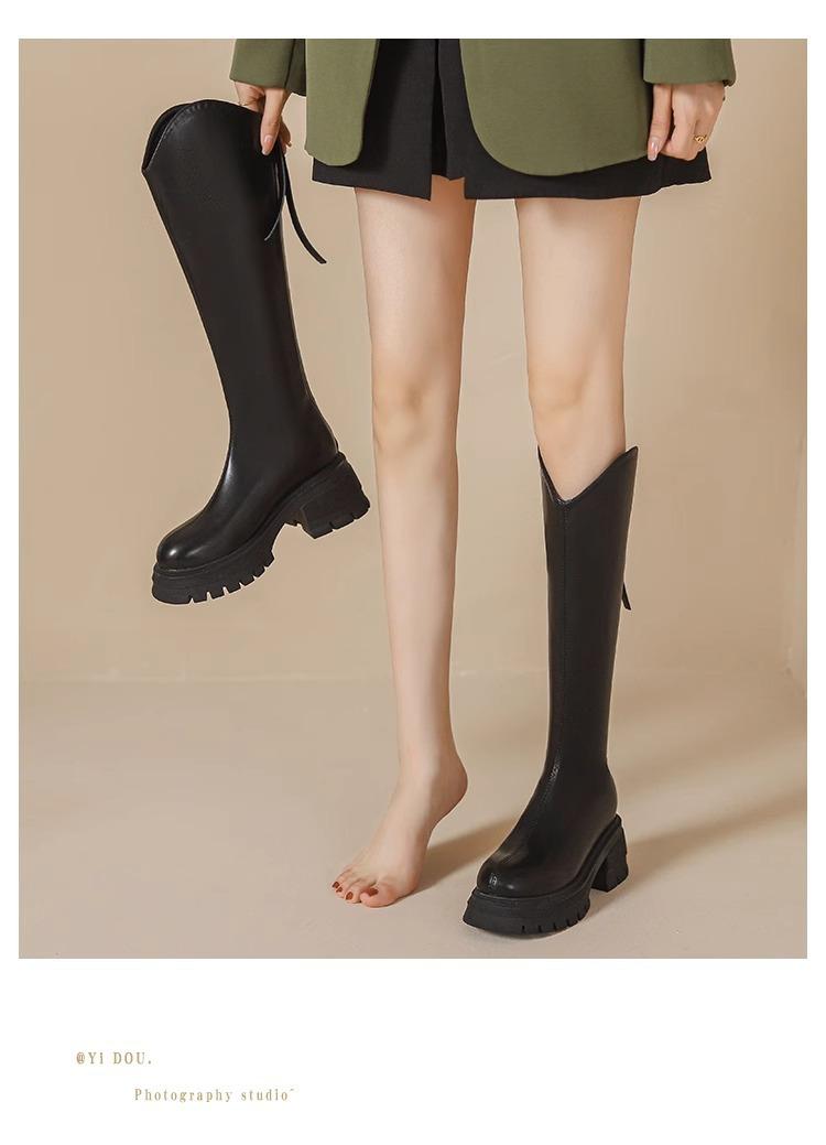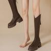 Botas Slim para Mujer Otoño e Invierno 2024 Ropa Exterior Forradas con Felpa Tacón Grueso Slim Suela Gruesa No Más Arriba de la Rodilla Diseño Simple Botas de Caballero de Moda