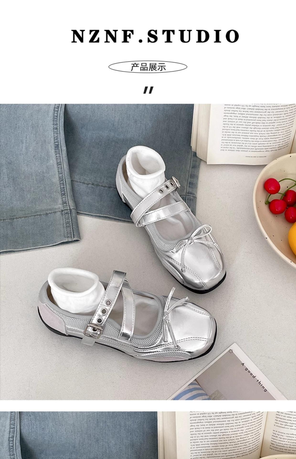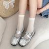 Zapatos de Salón Retro Plateados Franceses de Punta Redonda y Suela Gruesa para Mujer Verano 2025 Nuevo Estilo con Falda Versátiles Zapatos Mary Jane para Mujer