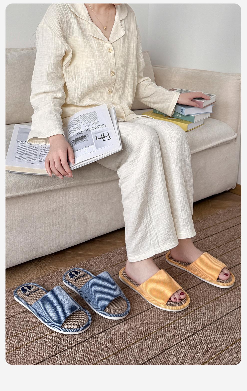 Pantuflas de Lino Transpirables para Mujer, para las Cuatro Estaciones, para el Hogar, Interiores, Absorbentes del Sudor, Silenciosas, de Suela Blanda, para el Hogar, Antideslizantes, para Hombre, Venta al por Mayor