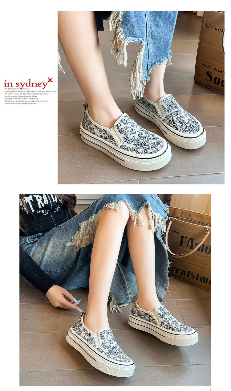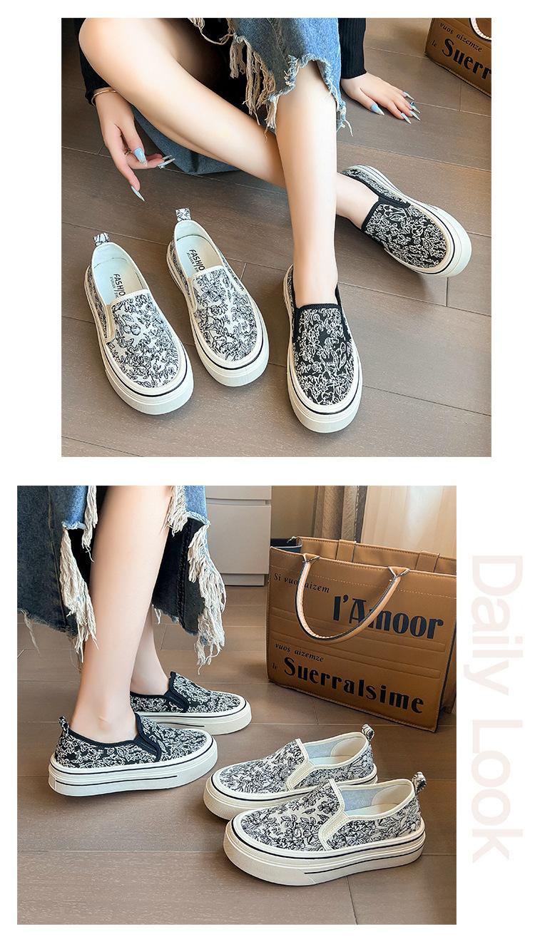 Zapatos Planos para Mujer 2025 Primavera y Otoño Nuevos Zapatos Casuales para Mujer Slip-On Slip-Ons Ligeros a la Moda Zapatos de Lona de Suela Gruesa