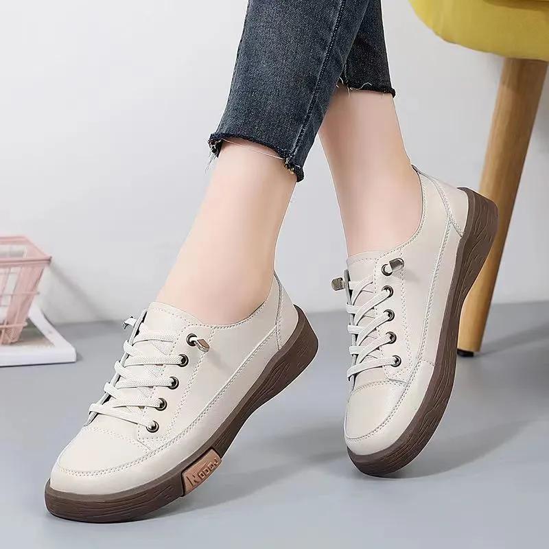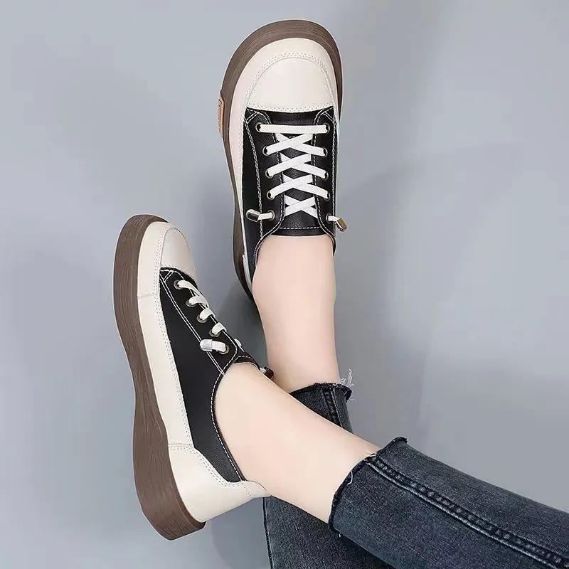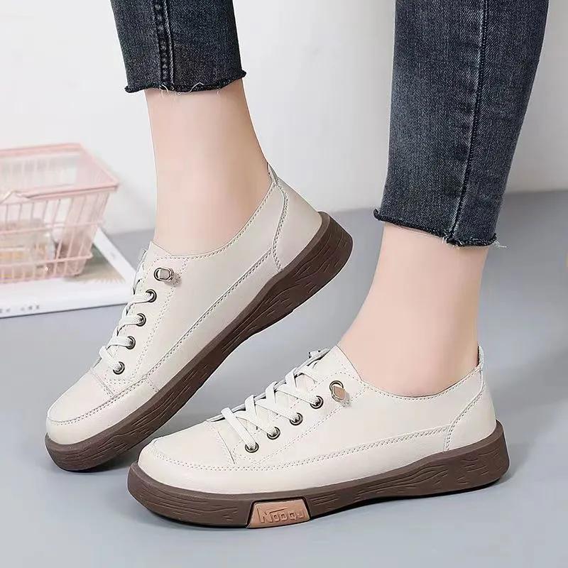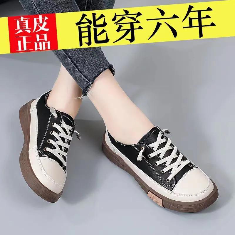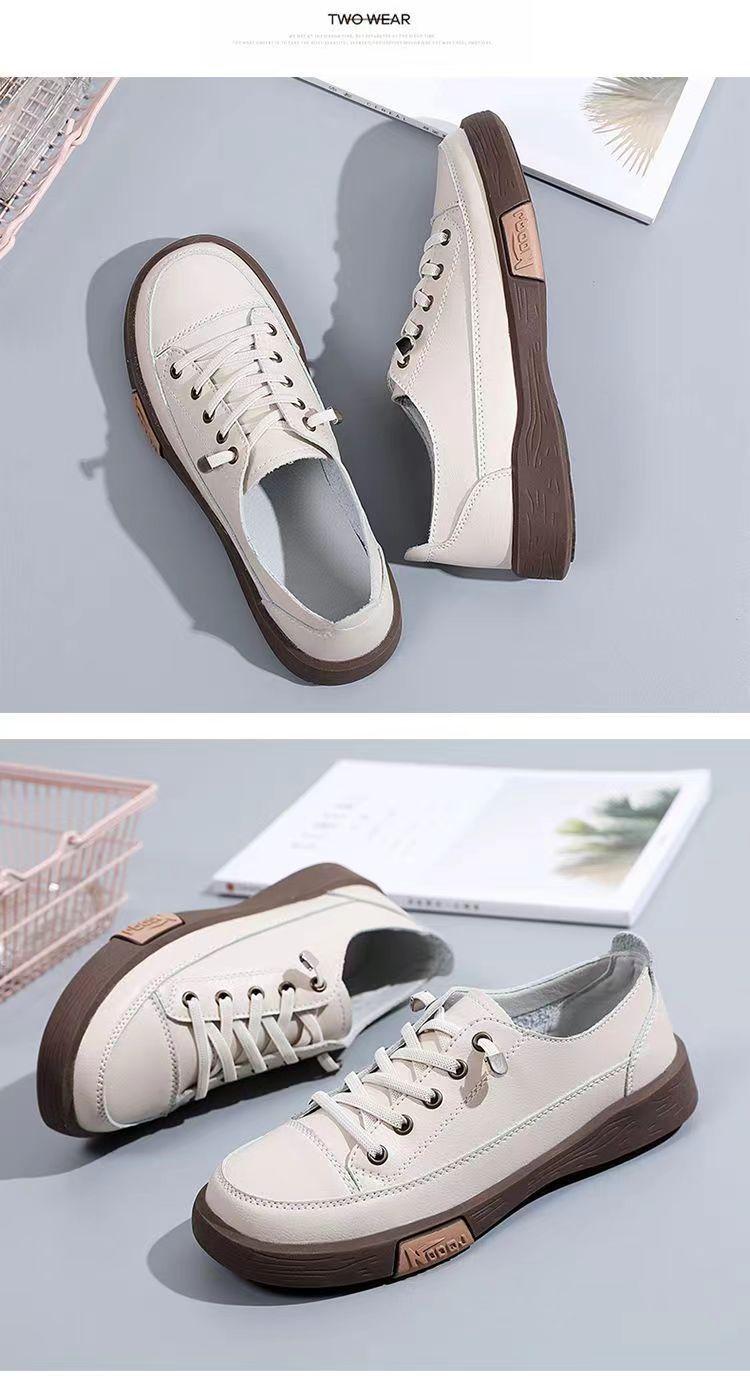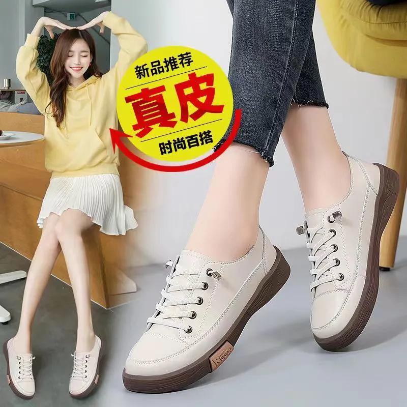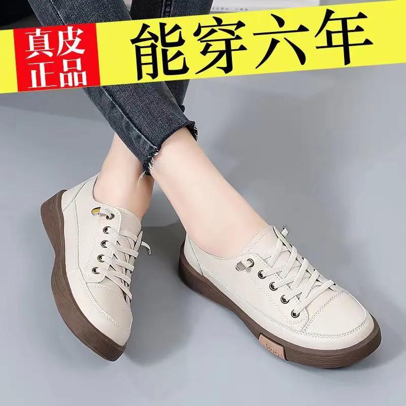 Primavera 2025 Nuevos Zapatos Retro Blancos de Cuero Genuino Zapatos de Suela Baja Suave para Mujer Zapatos Casuales de Boca Baja Talla Grande Zapatos de Mujer