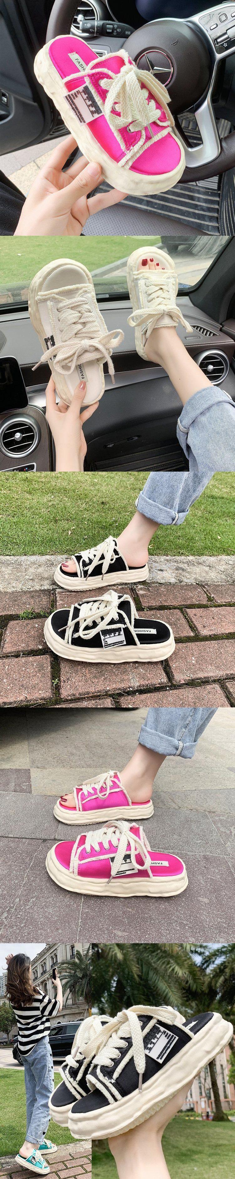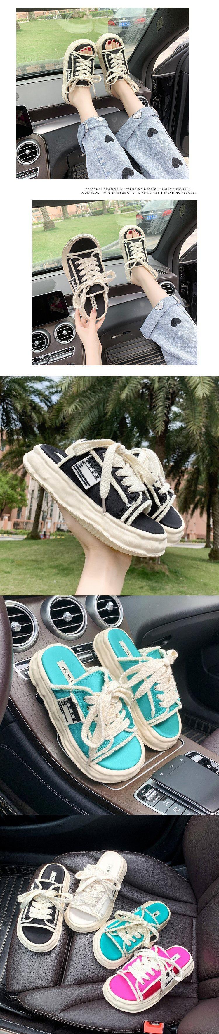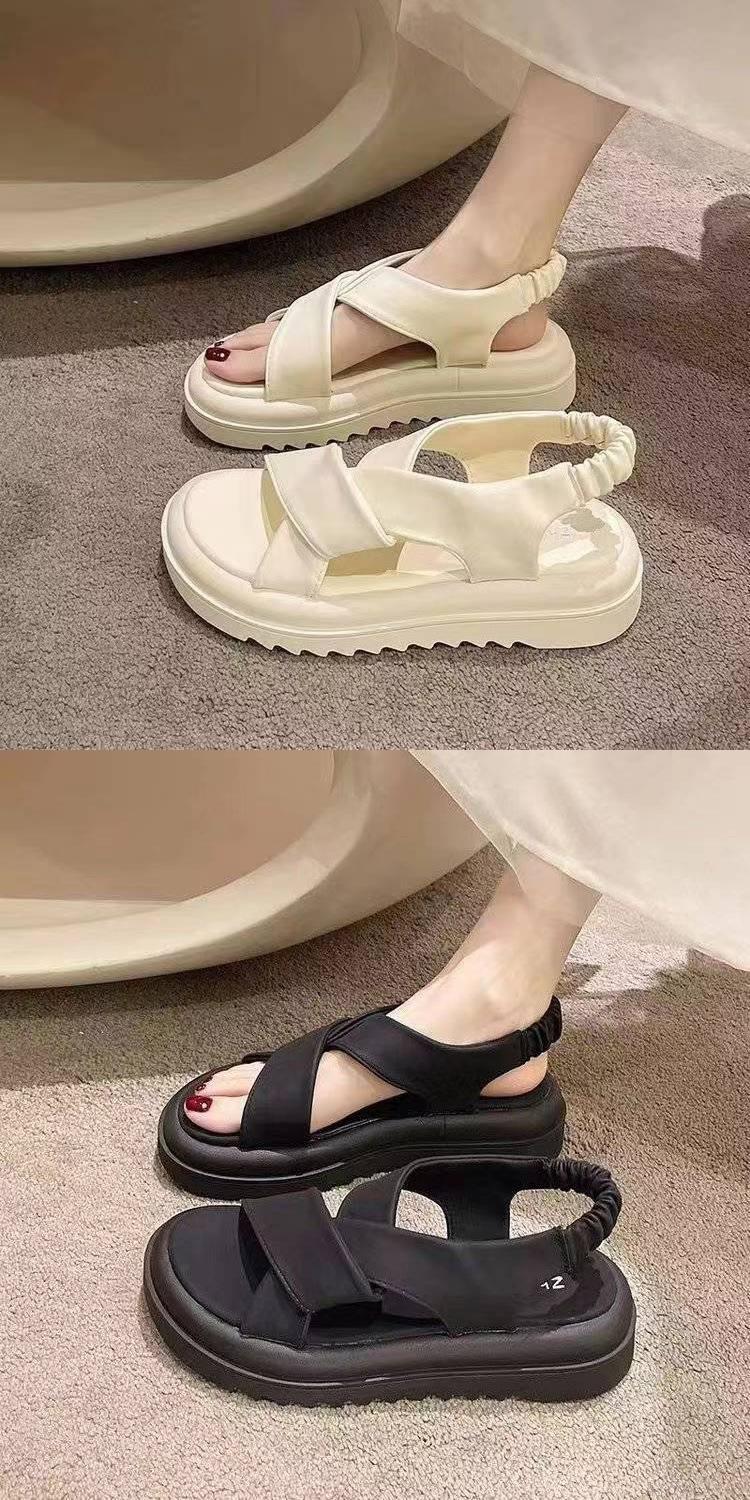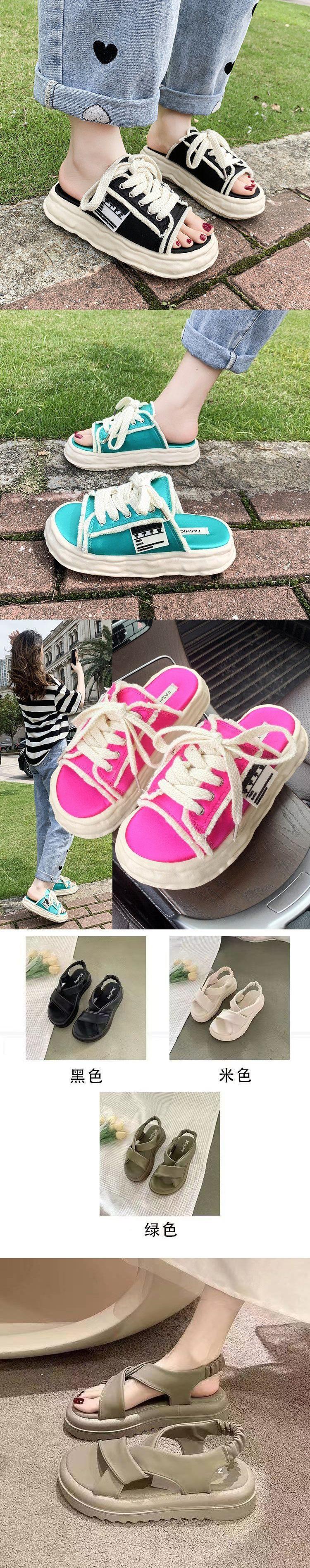 Sandalias de Plataforma Gruesa de Moda para Mujer Verano 2024 Nuevo Estilo Francés Hada Lona Sandalias de Playa